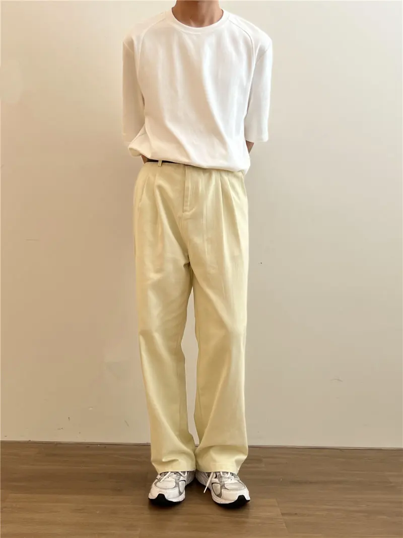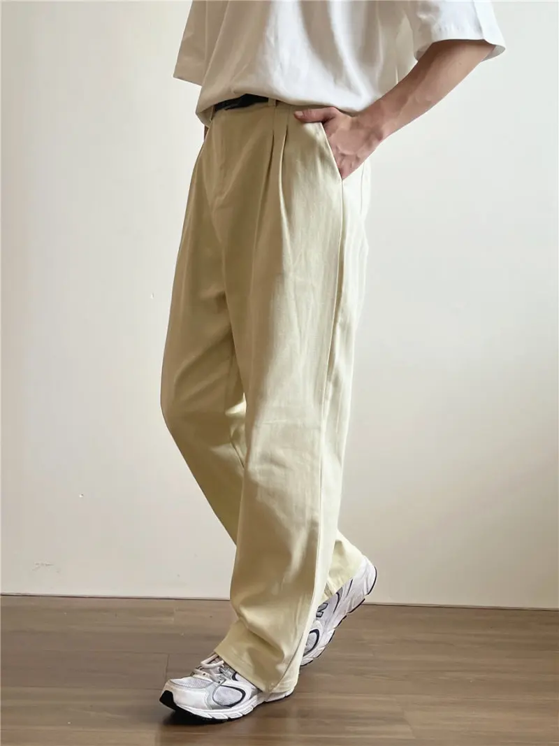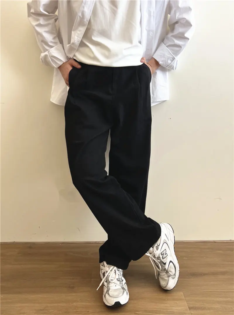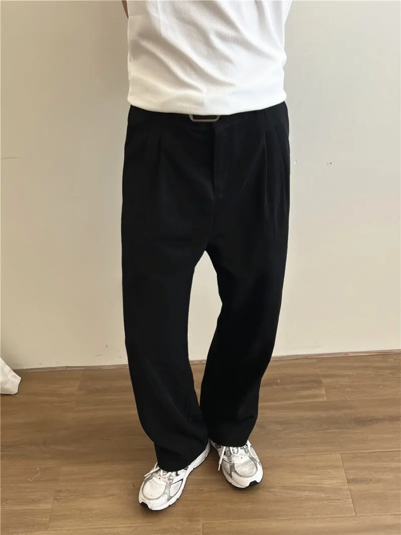 Wiaofellas  -  Black Beige Casual Pants Men Fashion Straight Pants Men Streetwear Korean Clothing Loose Wide Leg Pants Mens Trousers M-2XL