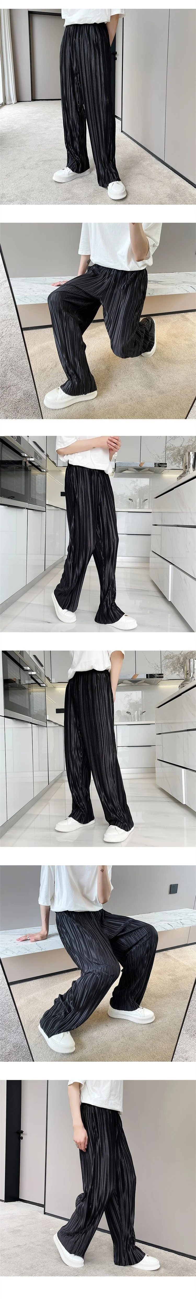 Wiaofellas - Black Men's Pleated Men's Summer New Korean Loose Casual Straight Wide Leg Pants Elastic Waist New 2Y8522