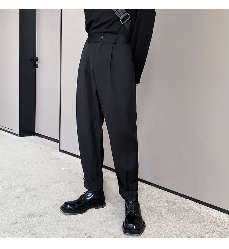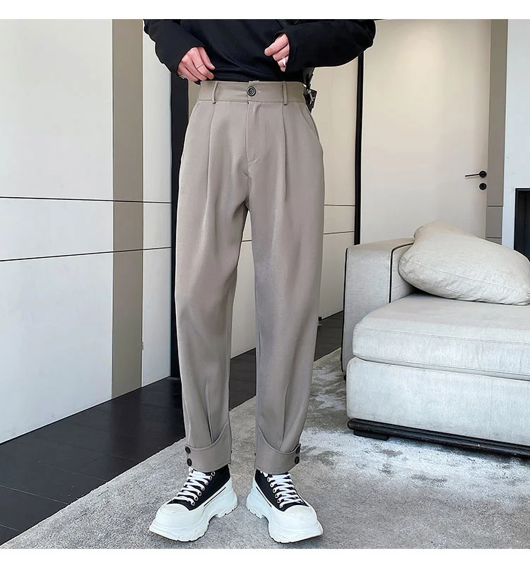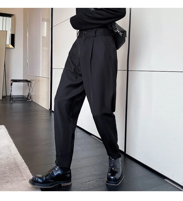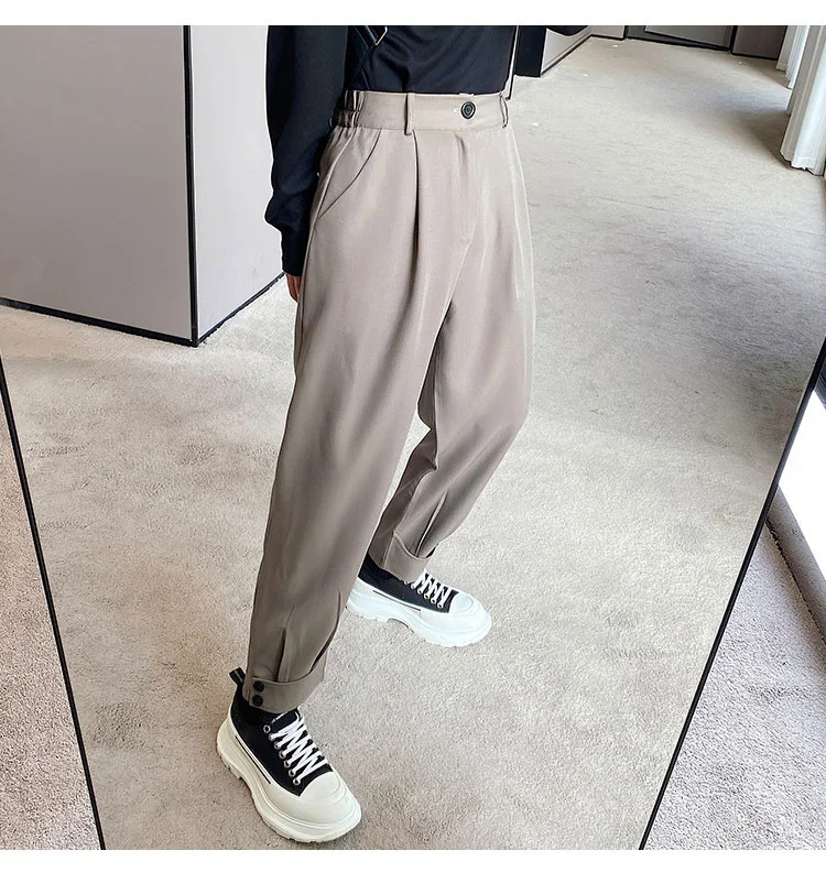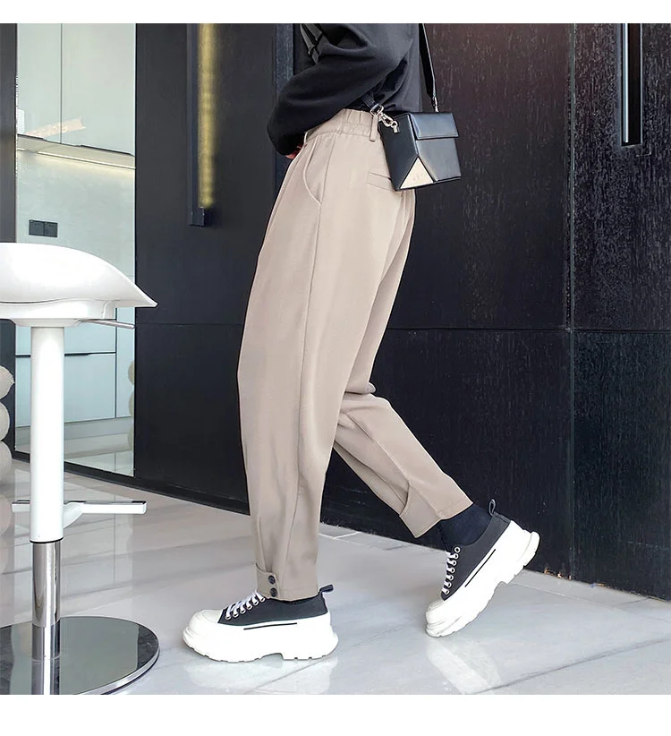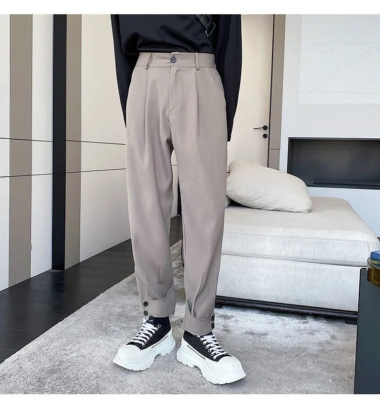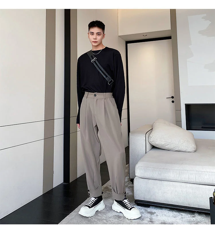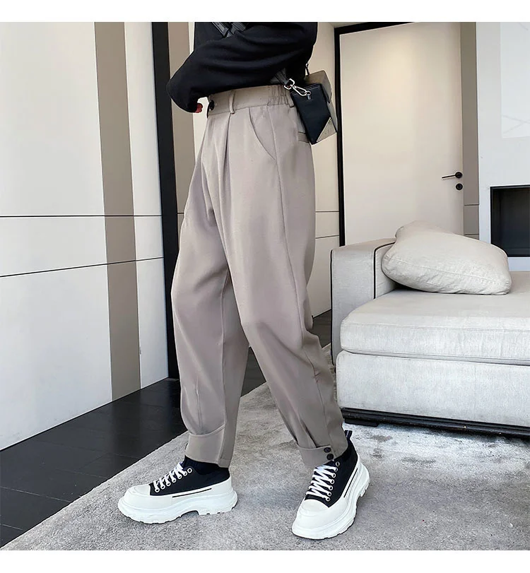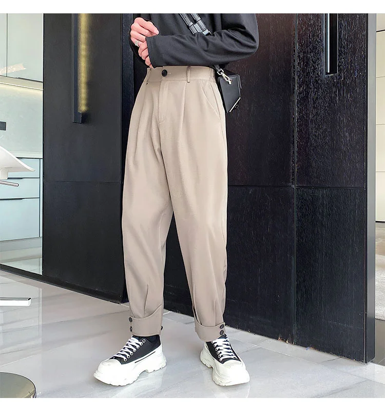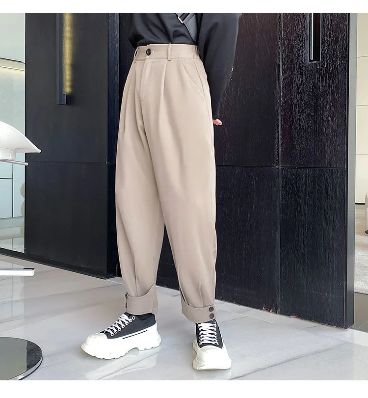 Wiaofellas - Casual Men's Pants Khaki Korean Streetwear Loose Trousers Spring New Harem Turnup Pants Black Trousers Male Chic A0222