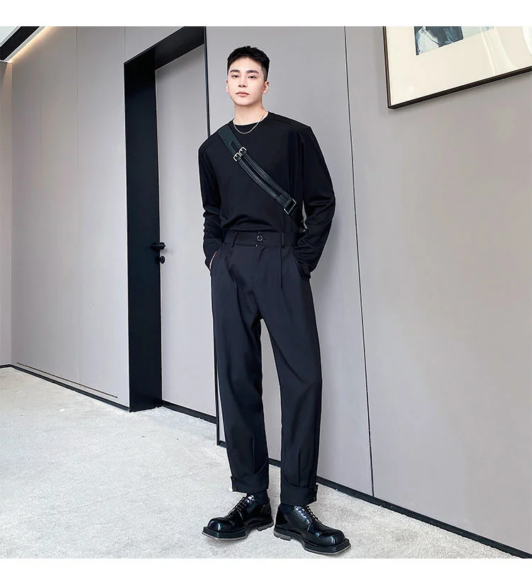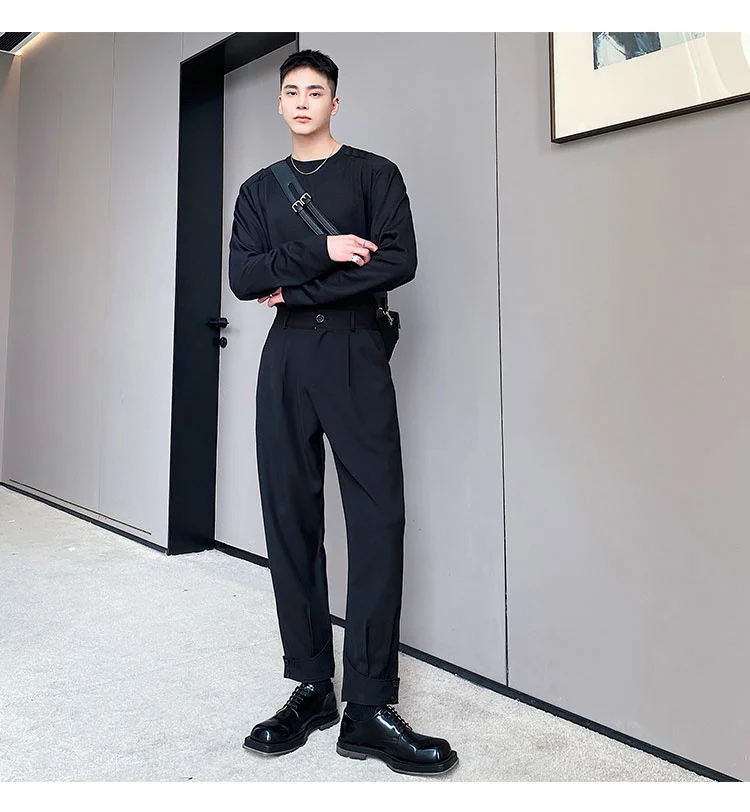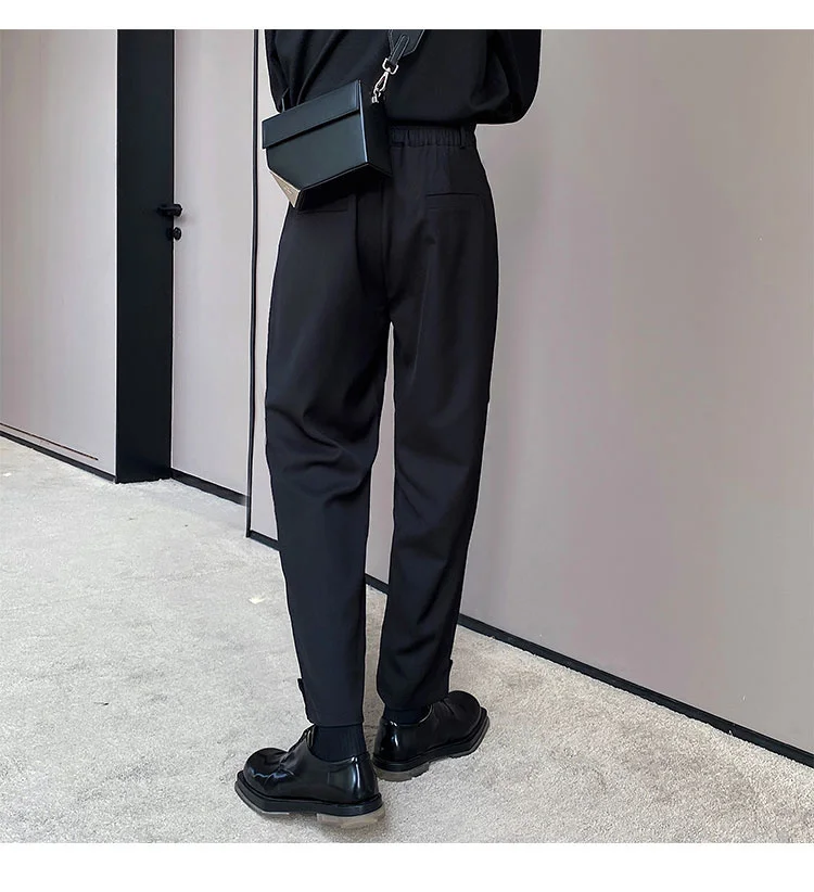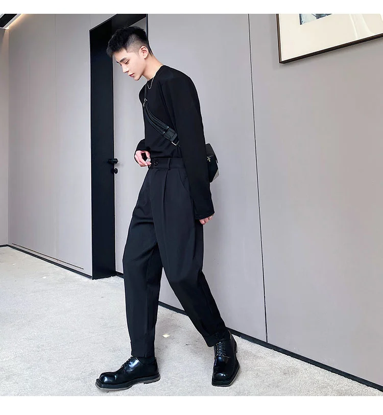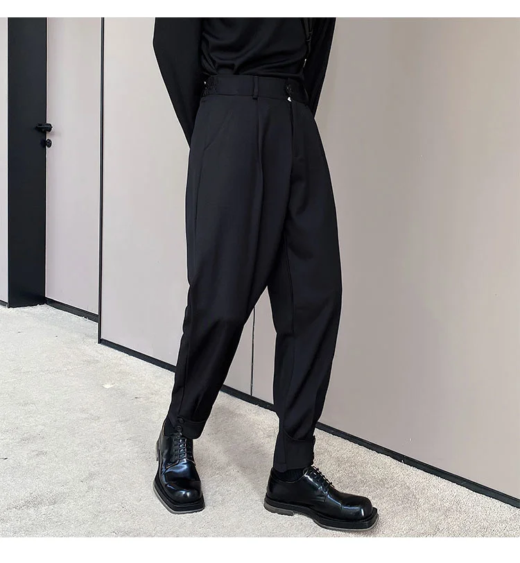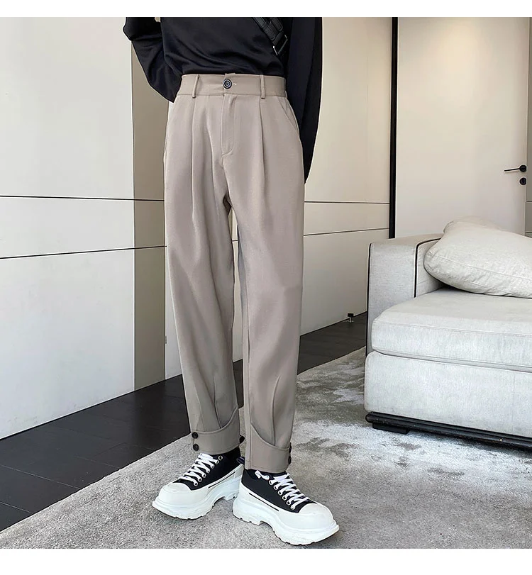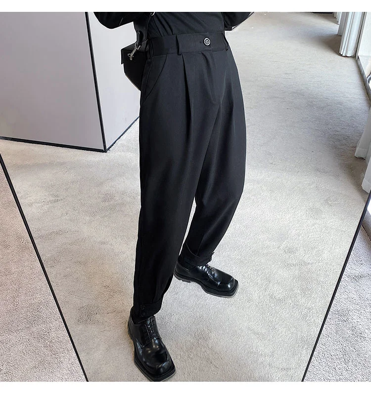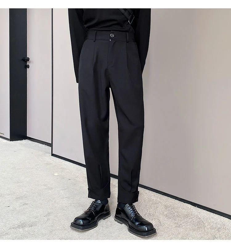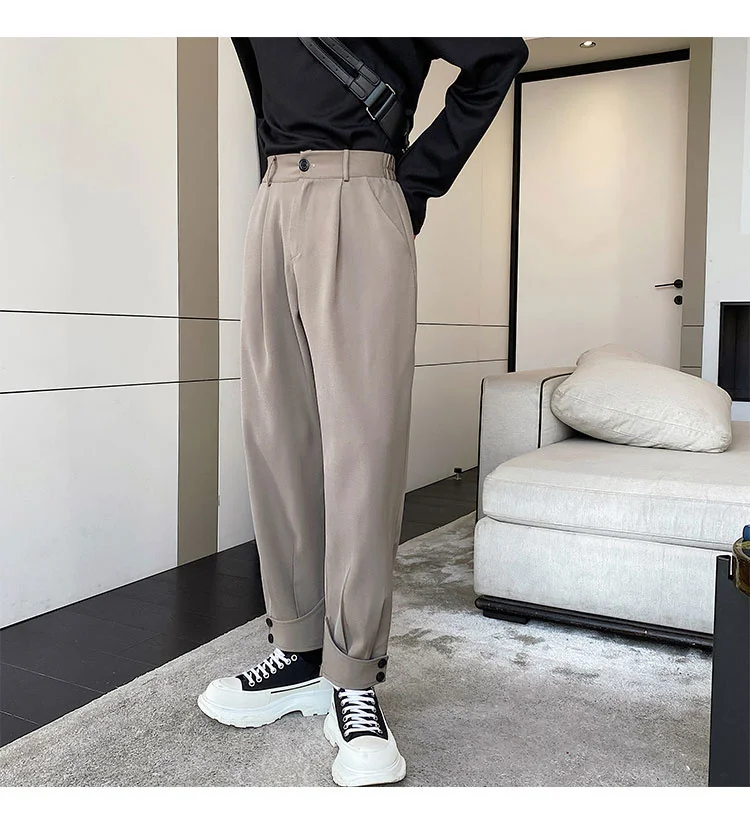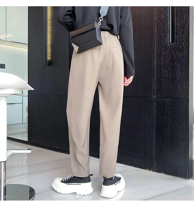 Wiaofellas - Casual Men's Pants Khaki Korean Streetwear Loose Trousers Spring New Harem Turnup Pants Black Trousers Male Chic A0222