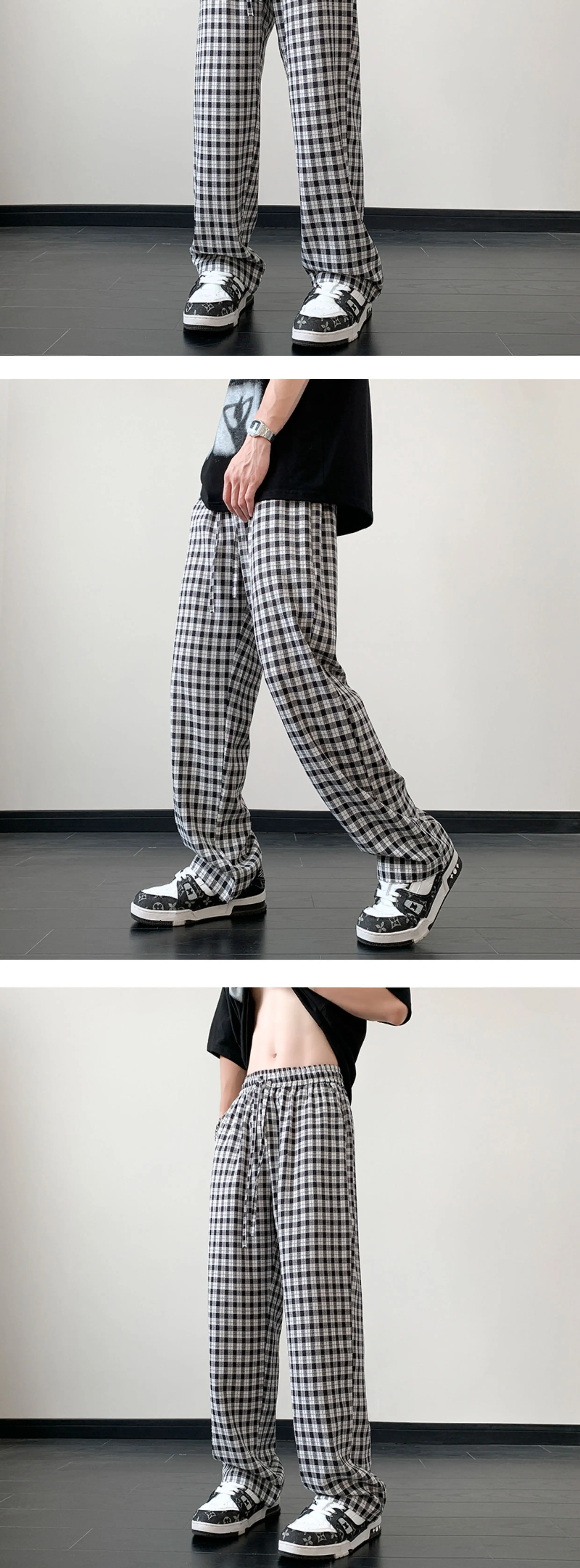 Wiaofellas - Classic Plaid Unisex Pants Men's Loose Casual Pants Korean Style Straight Loose Wide Leg Pants Plus Size Men's BrClothes 5XL