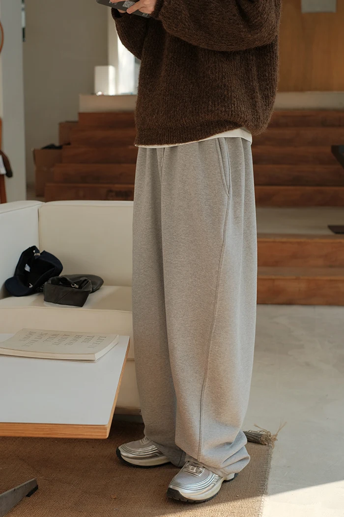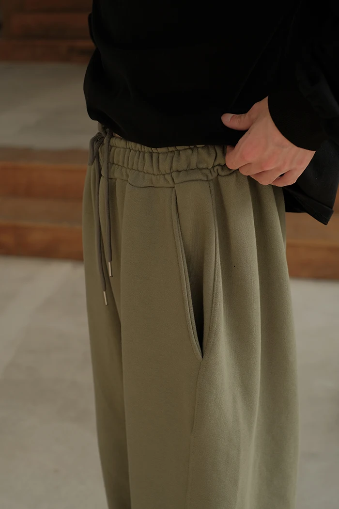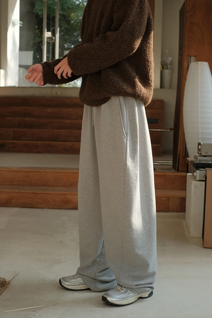 Wiaofellas  -   Spring Summer Curved Knife Cutting 380G Japan fashion Loose Knitted Sweatpants Drawstring Sweat pants Men ...