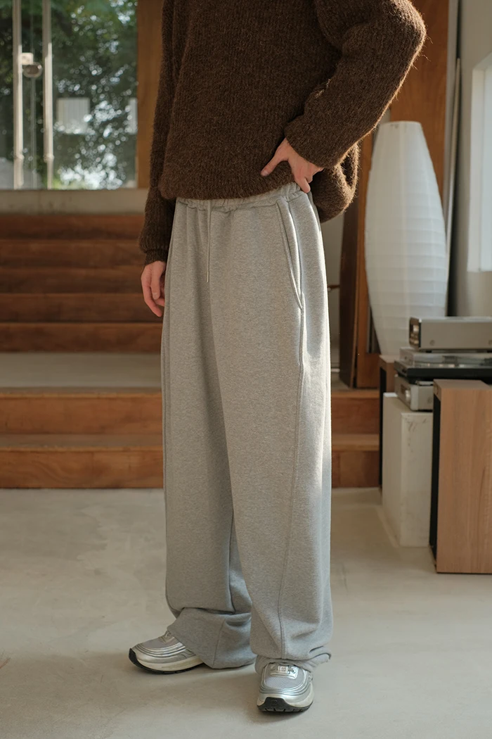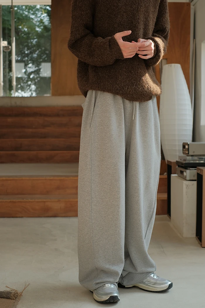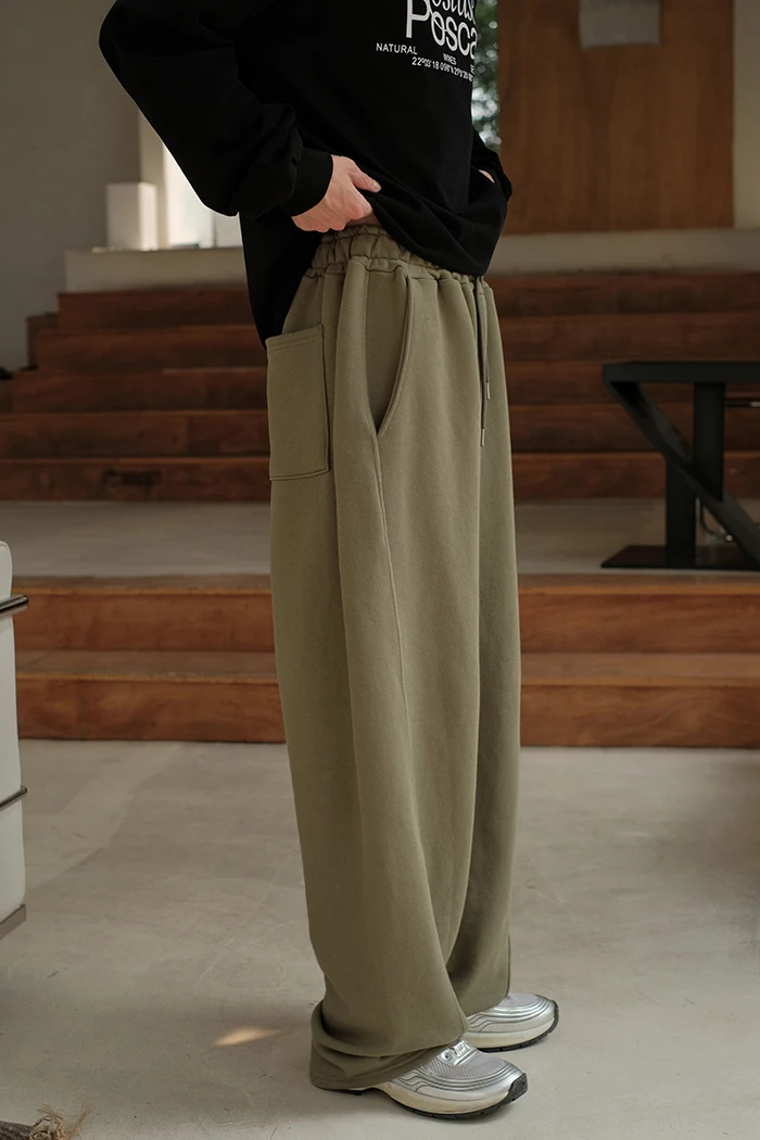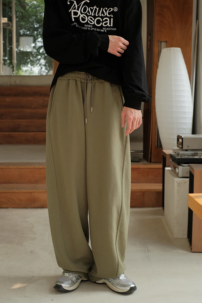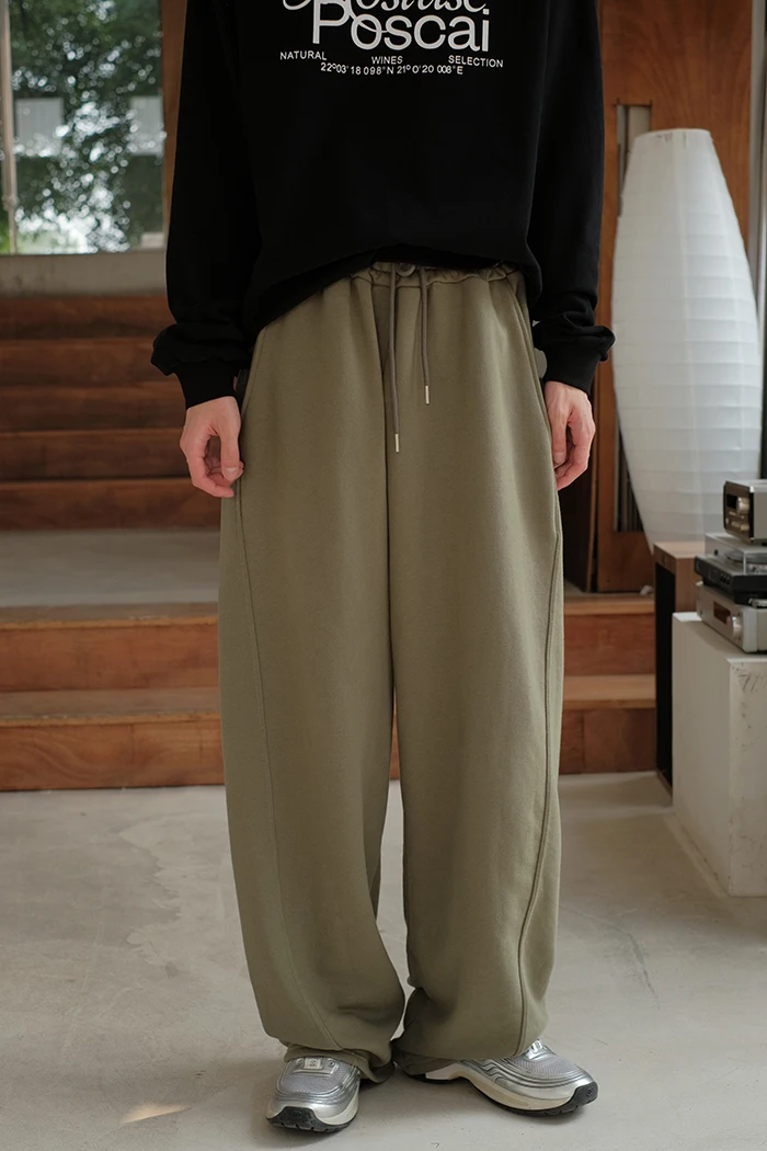 Wiaofellas - Spring Summer Curved Knife Cutting 380G Japan fashion Loose Knitted Sweatpants Drawstring Sweat pants Men ...
