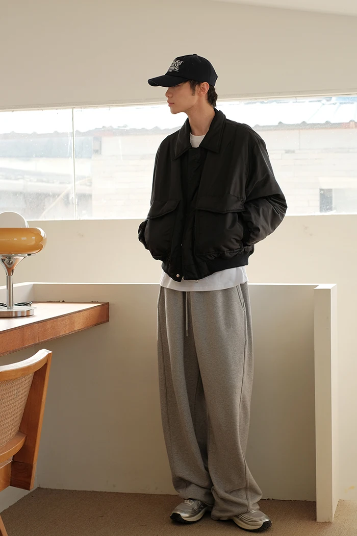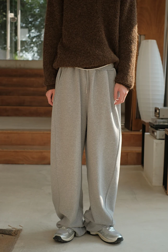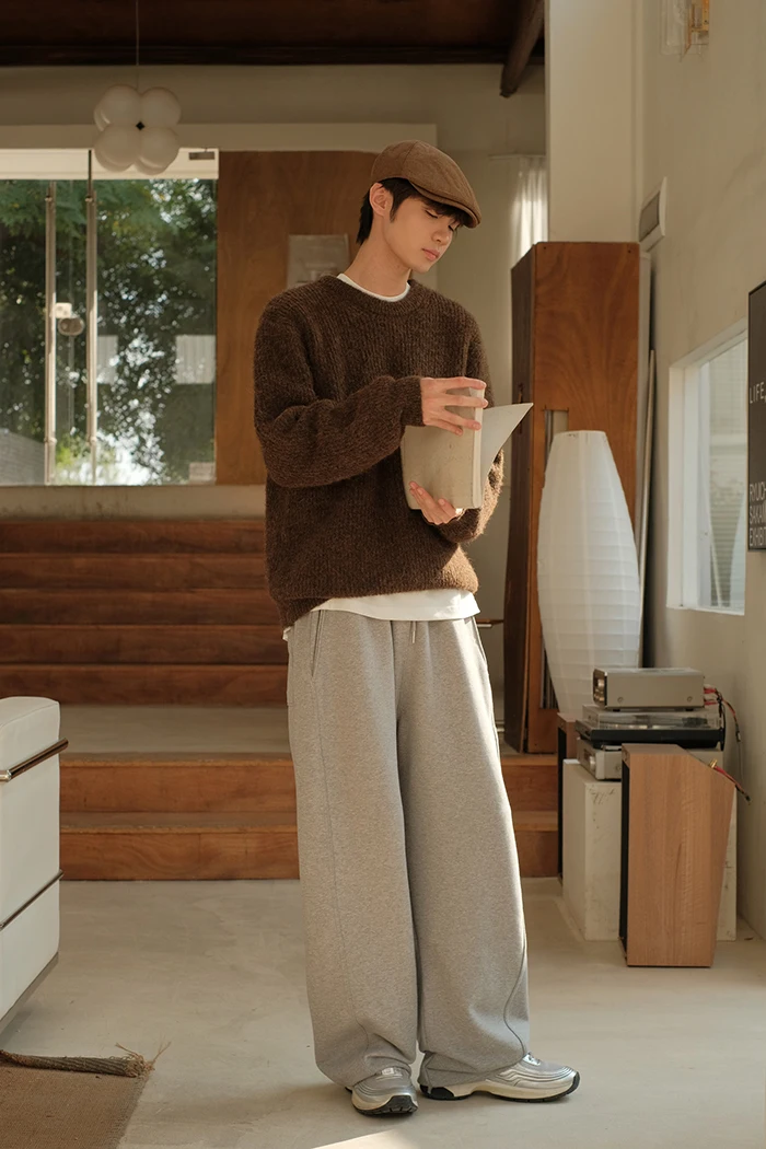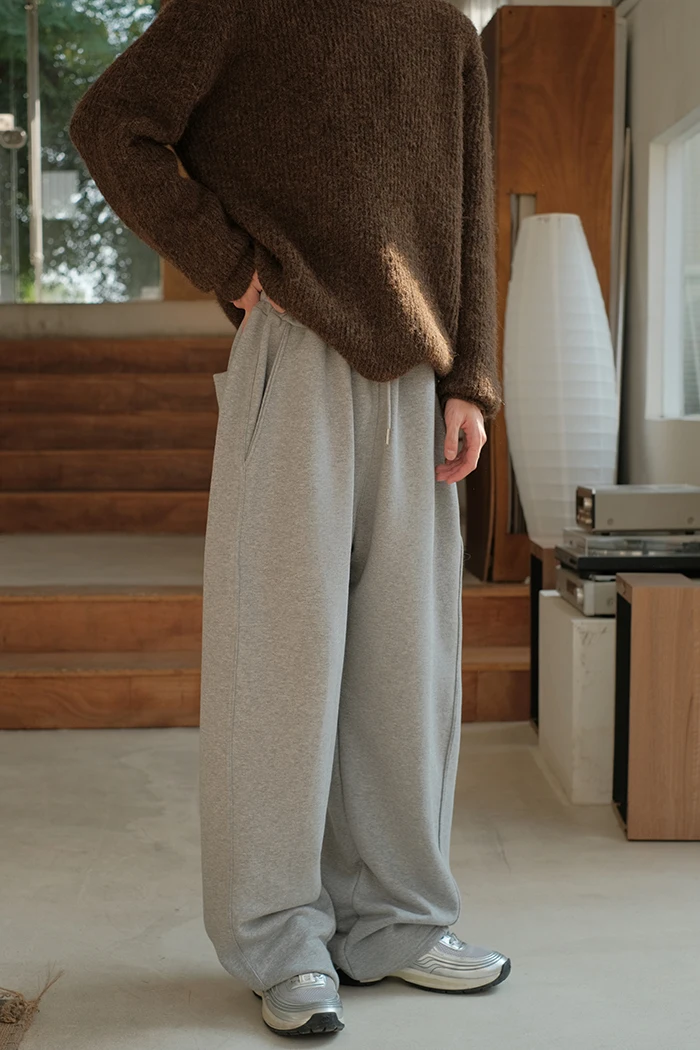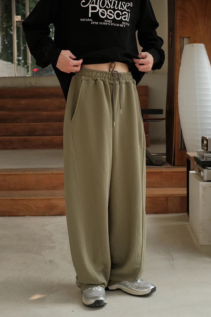 Wiaofellas - Spring Summer Curved Knife Cutting 380G Japan fashion Loose Knitted Sweatpants Drawstring Sweat pants Men ...