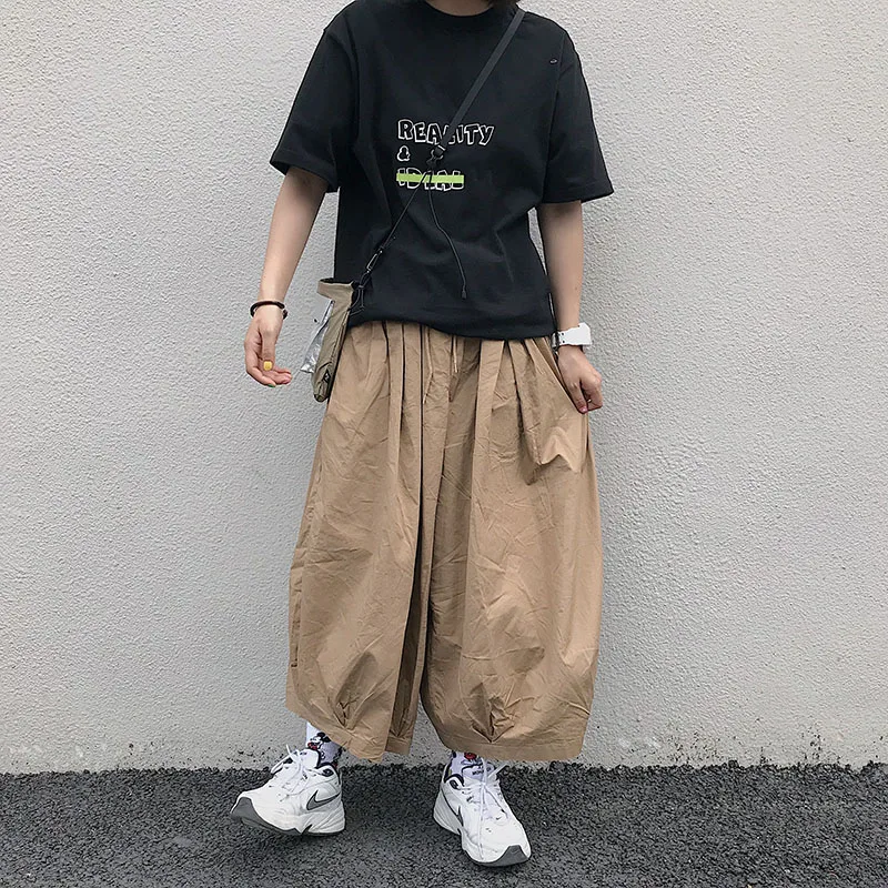 Wiaofellas - Cotton Linen Harem Pants Punk Men Baggy Japanese Darm Style Joggers Mens Ins Hip Hop Crotch Wide Leg Pants Long Loose Trousers