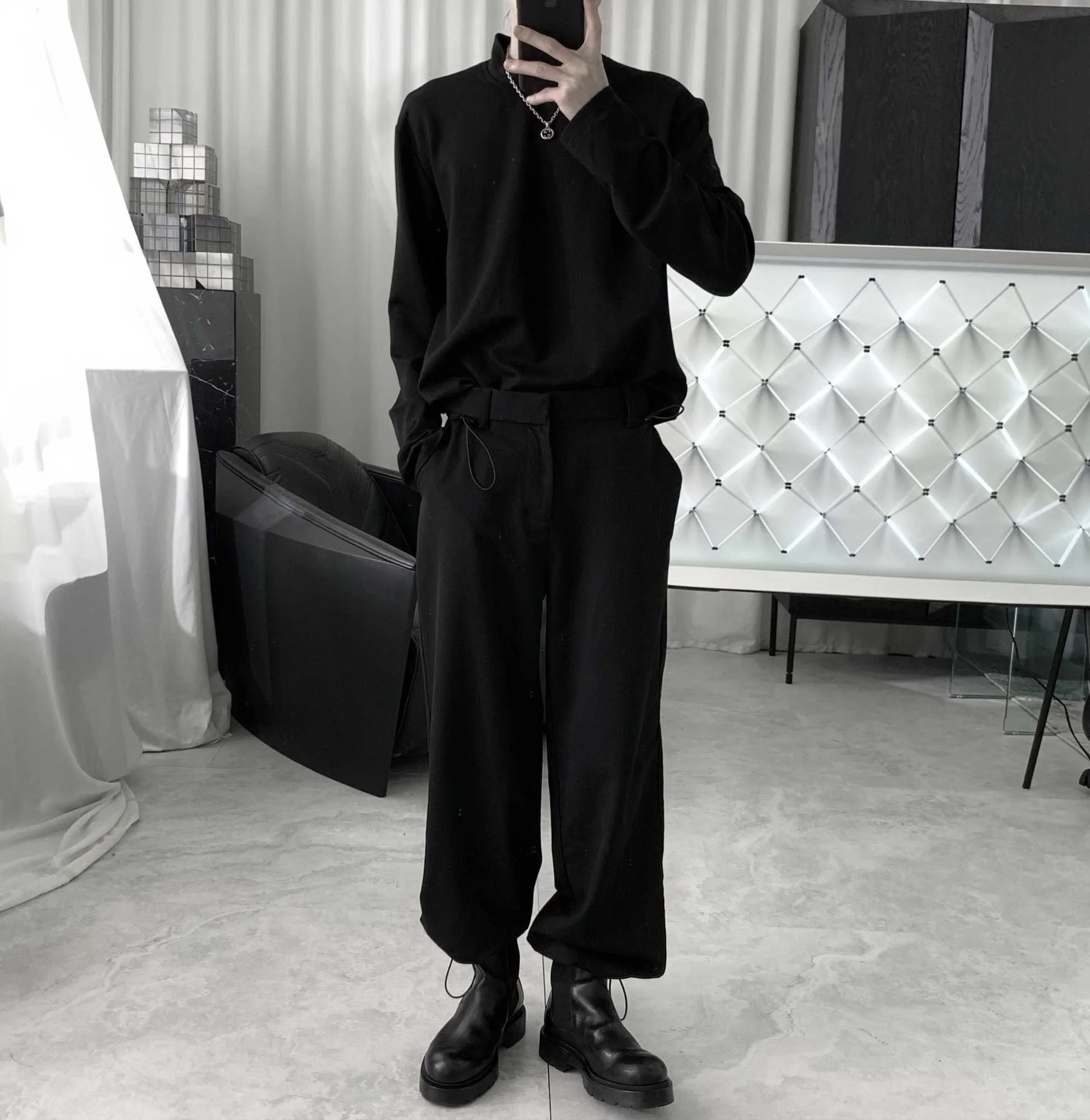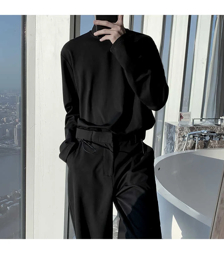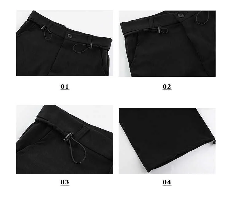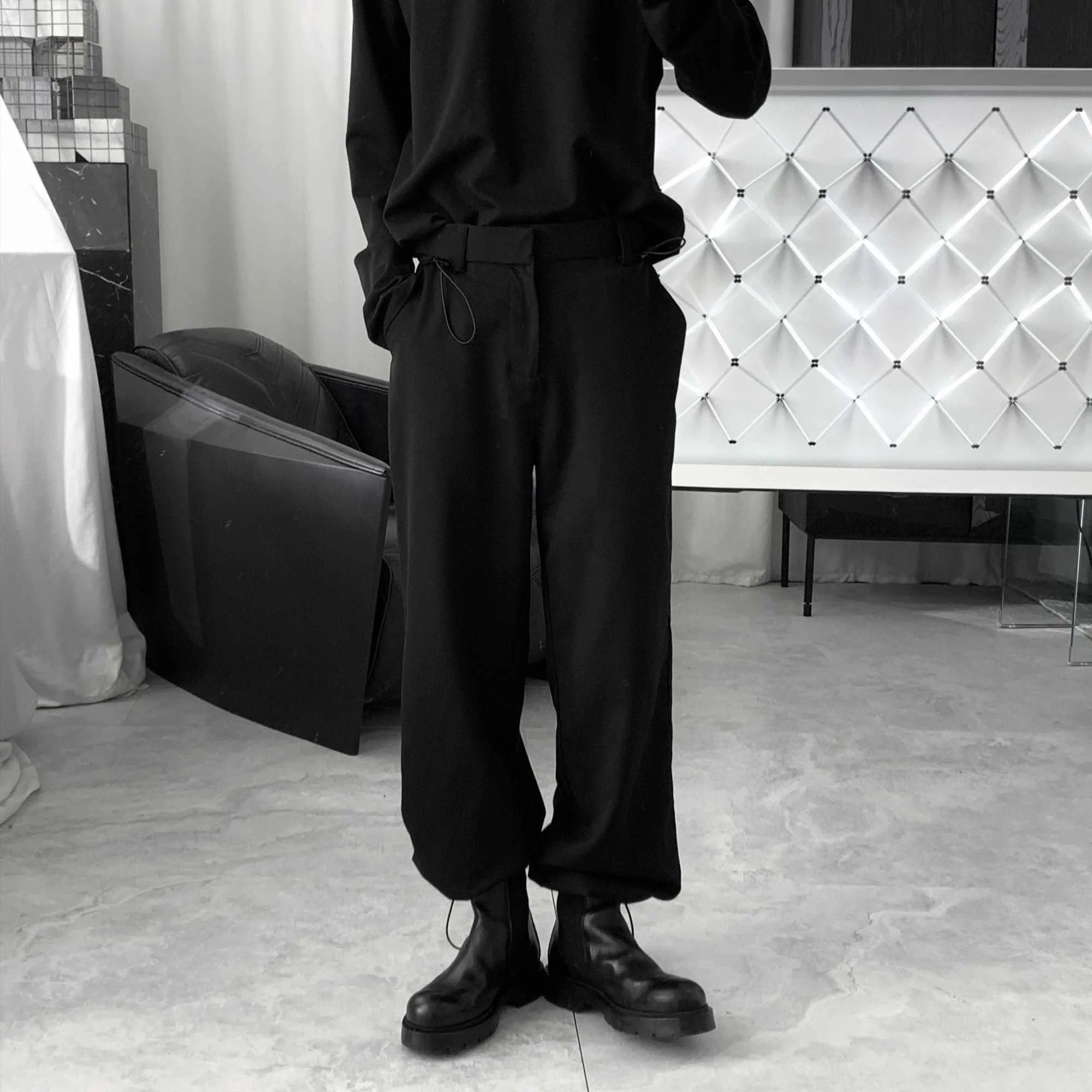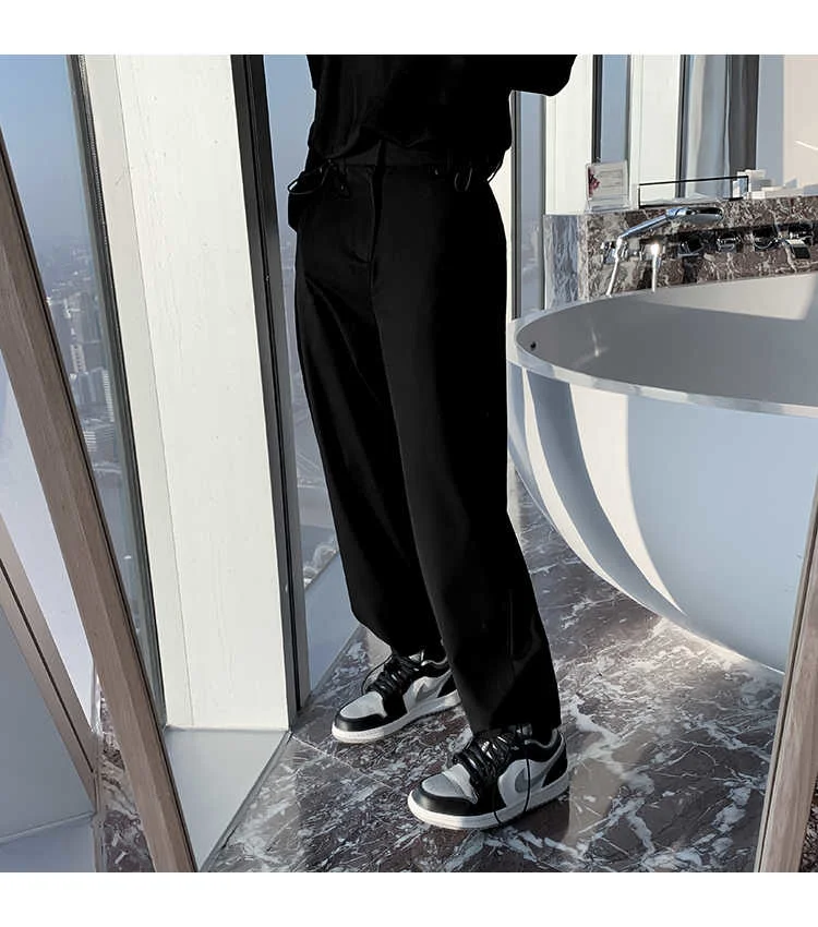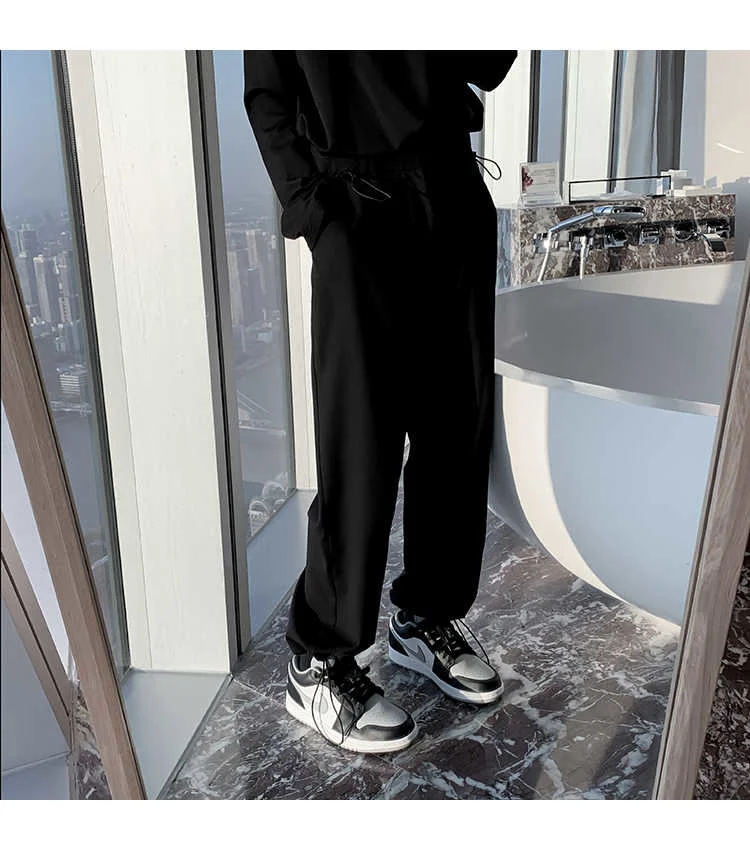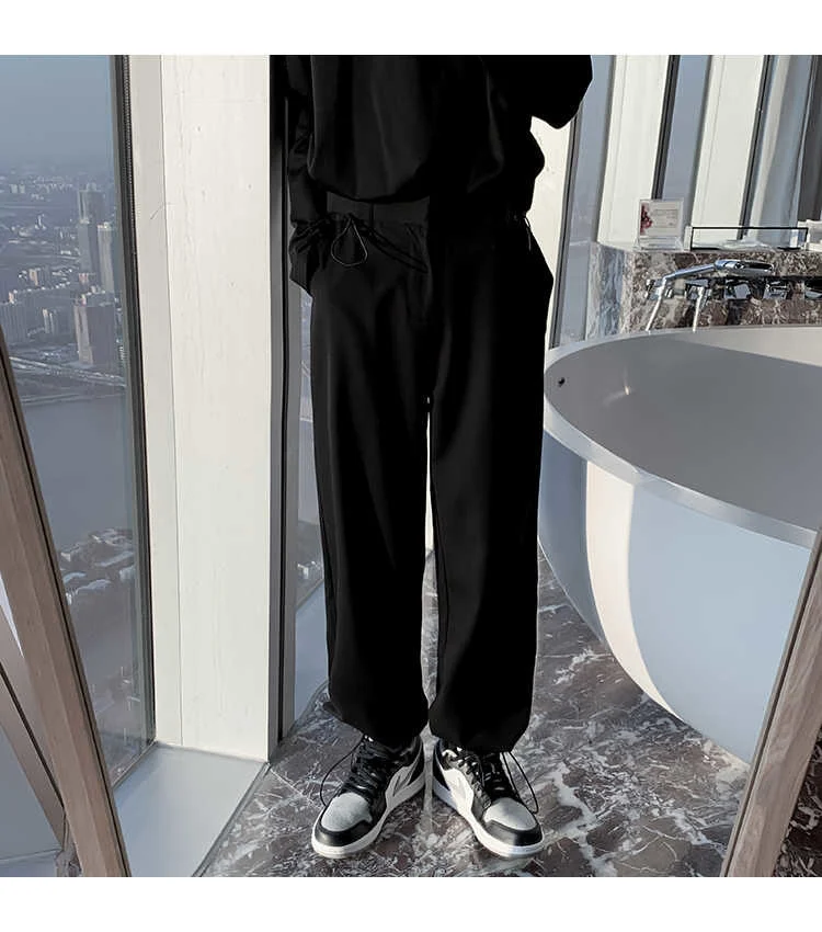 Wiaofellas - Drawstring Men's Legged Trousers Straight Loose Korean Legged Casual Pants Vertical Black Wide Leg Pants Harajuku 2Y2323