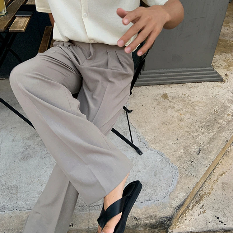 Wiaofellas Dropping Straight Tube Mop Suit Pants Men Women Summer Korean Elegant Baggy Pants High-end Loose Leg Casual Trousers