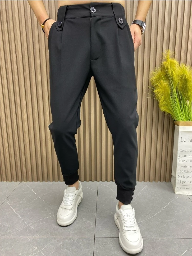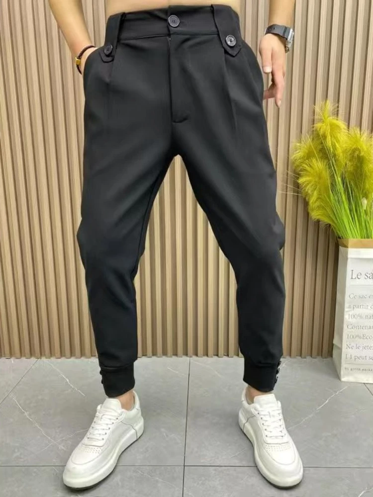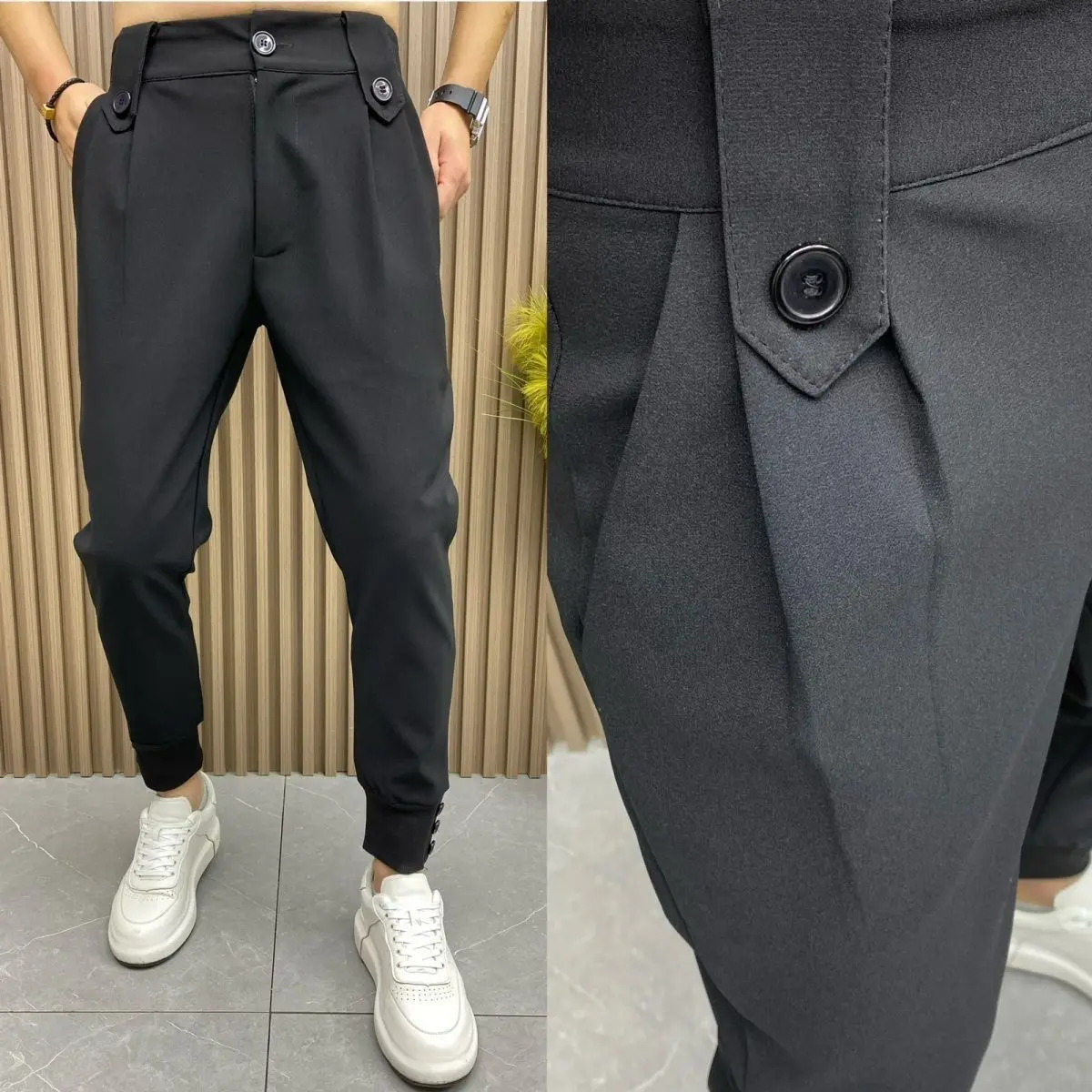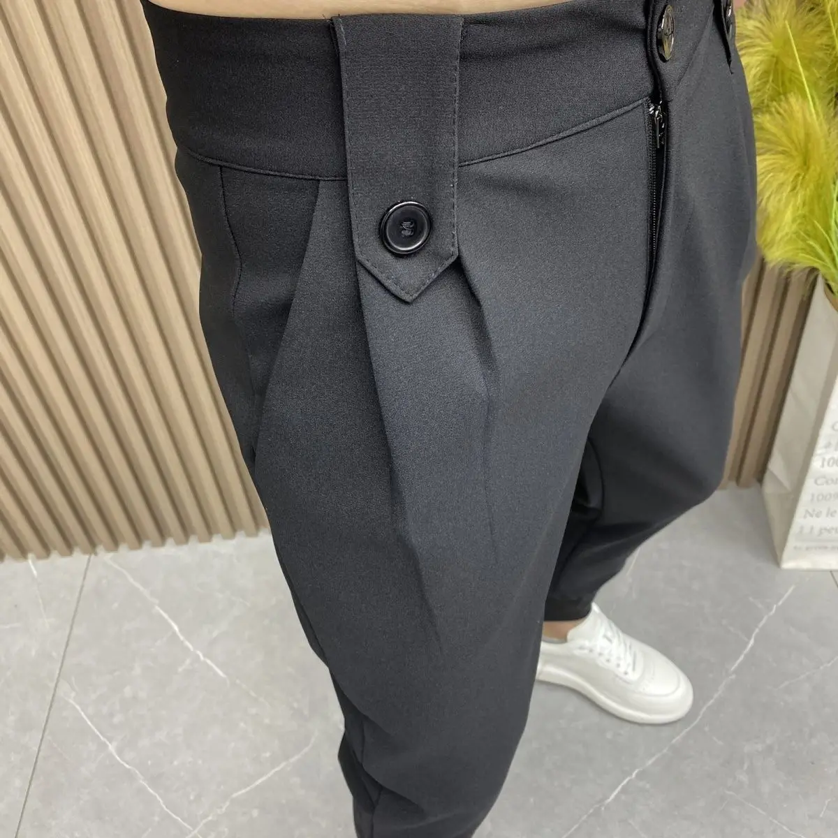 Wiaofellas - Harlan Black Pleated Man Suits Pants Anti-wrinkle Spandex Fashion Korean Reviews Many Trousers for Men Clothes Offer Designer Up
