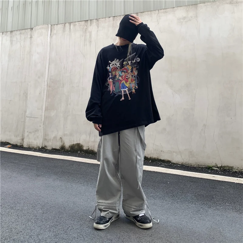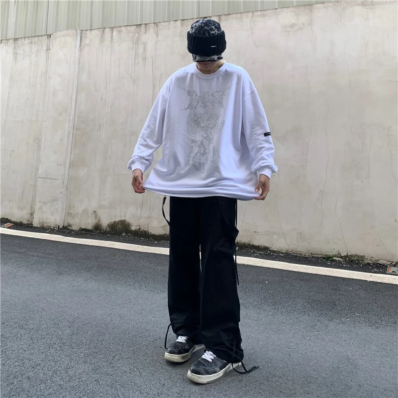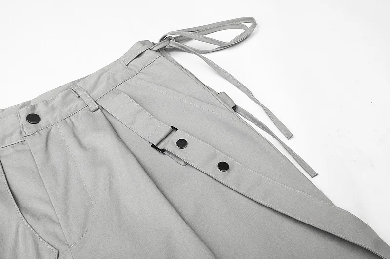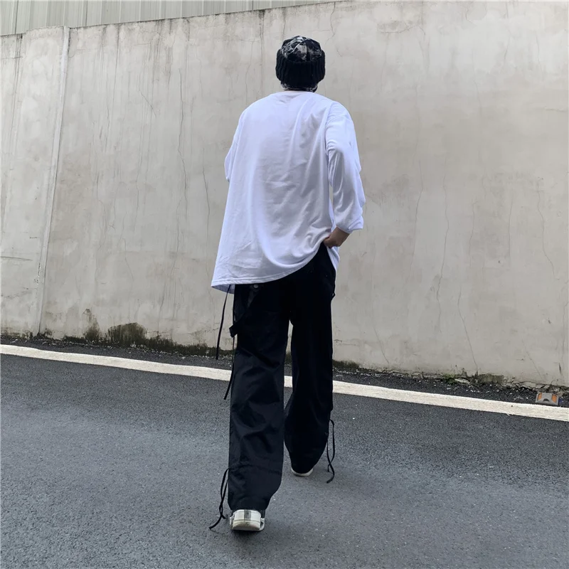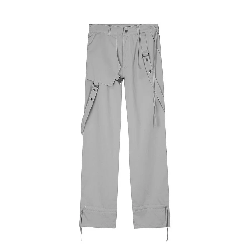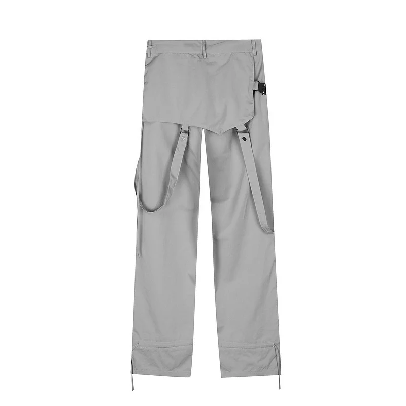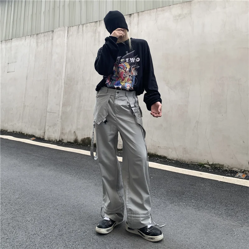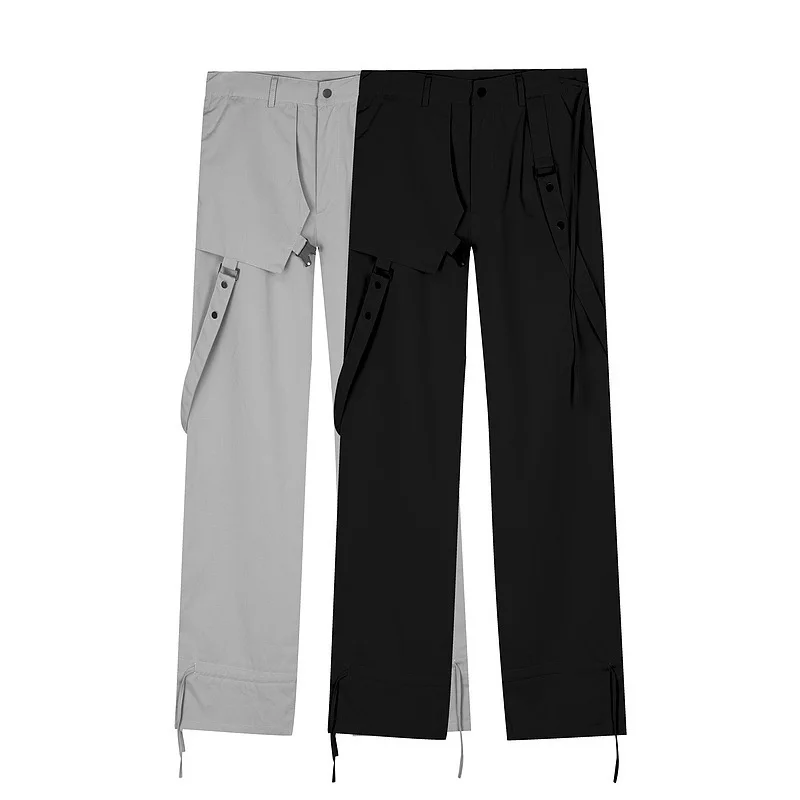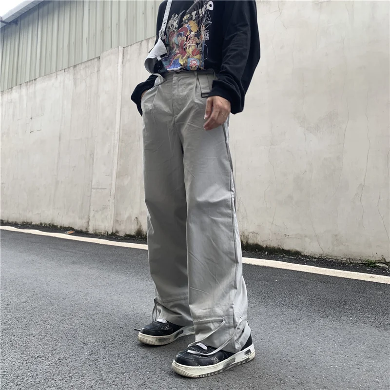 Wiaofellas - High American Street Fashion Design Detachable Suspender Overalls Loose Casual Vertical Straight Men's Long Pants 2Y2252