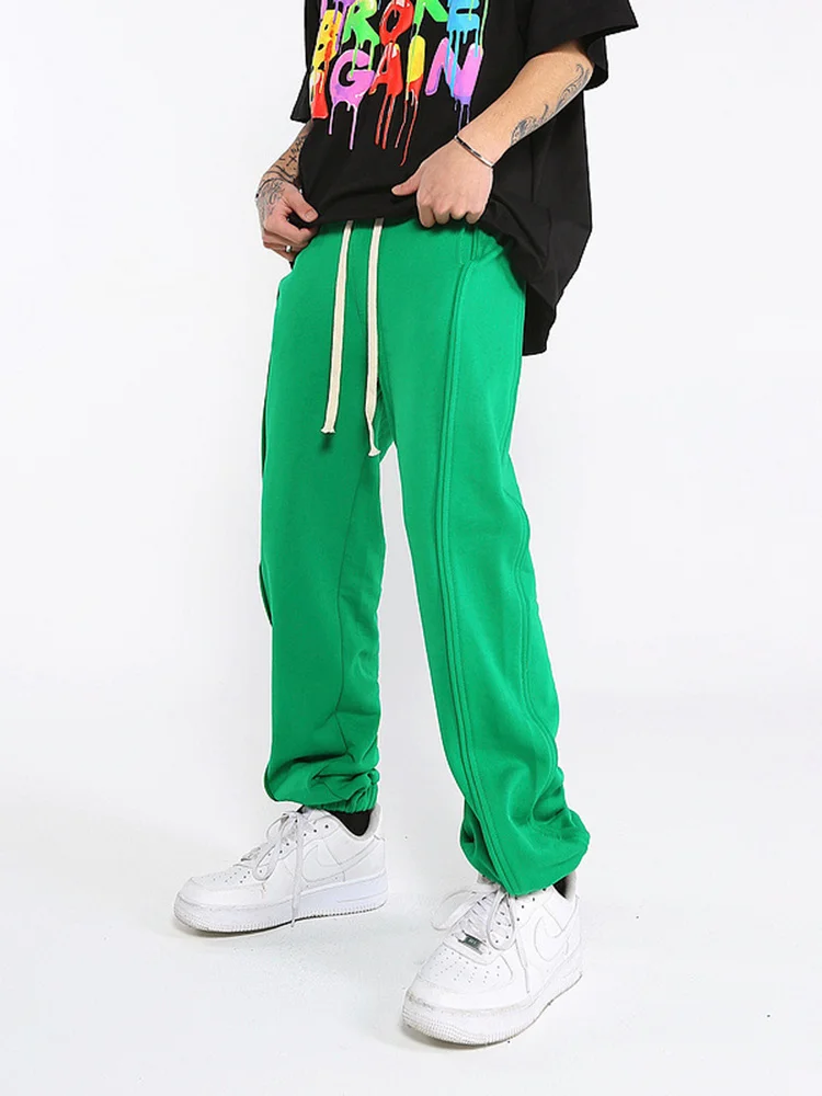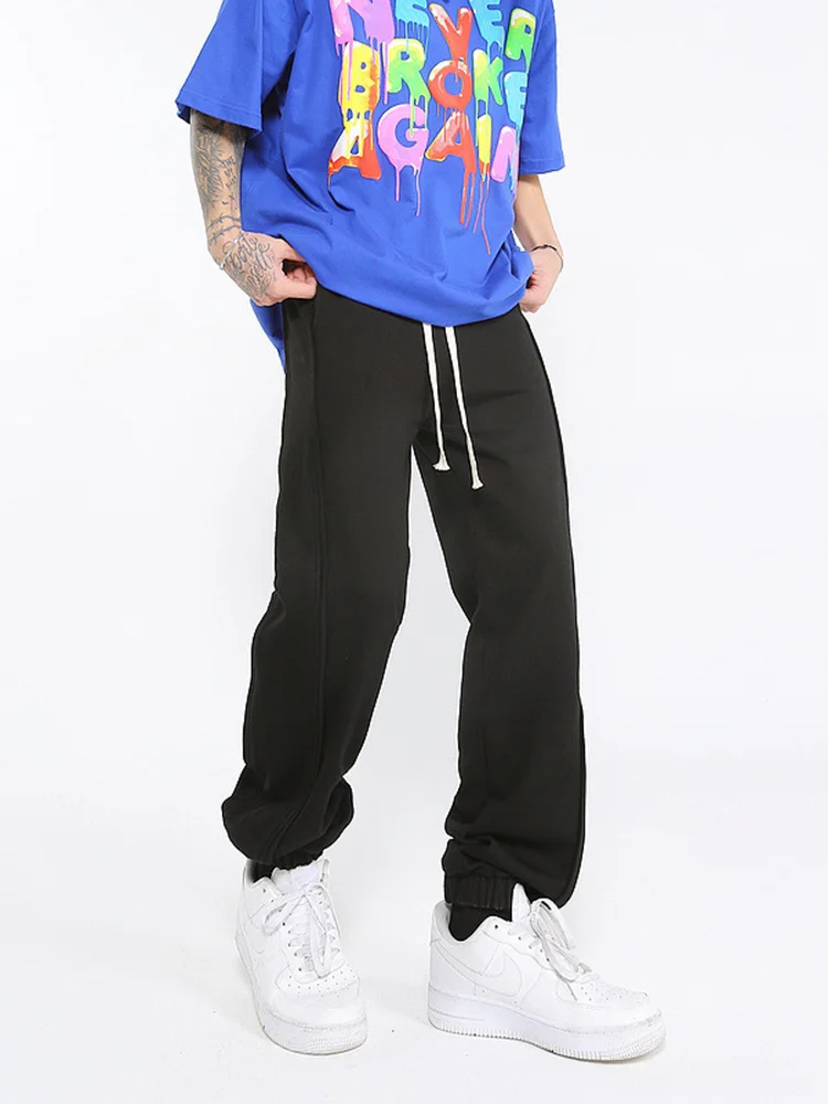 Wiaofellas - High Men's Street Casual Sweatpants New Trendy Sports Casual Long Pants Drawstirng Elastic Waist Long Pants 2A1082