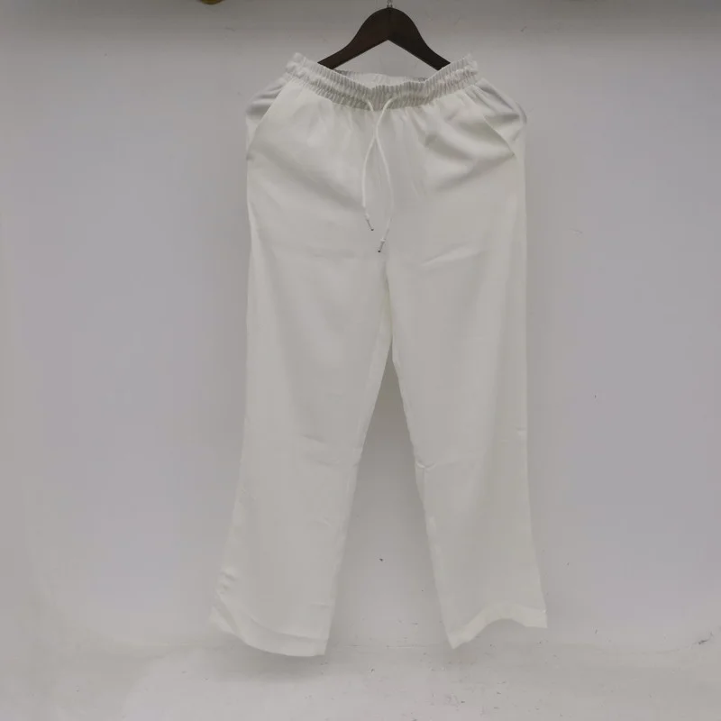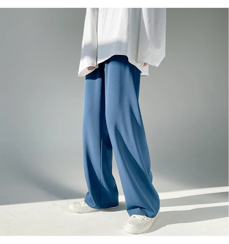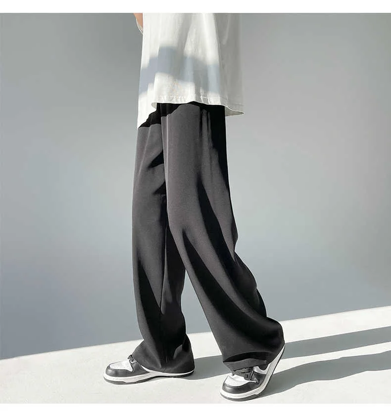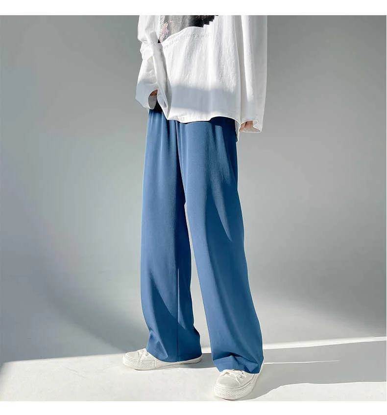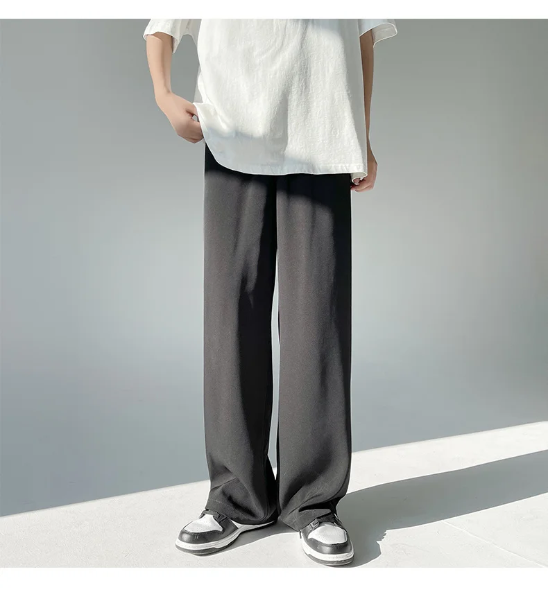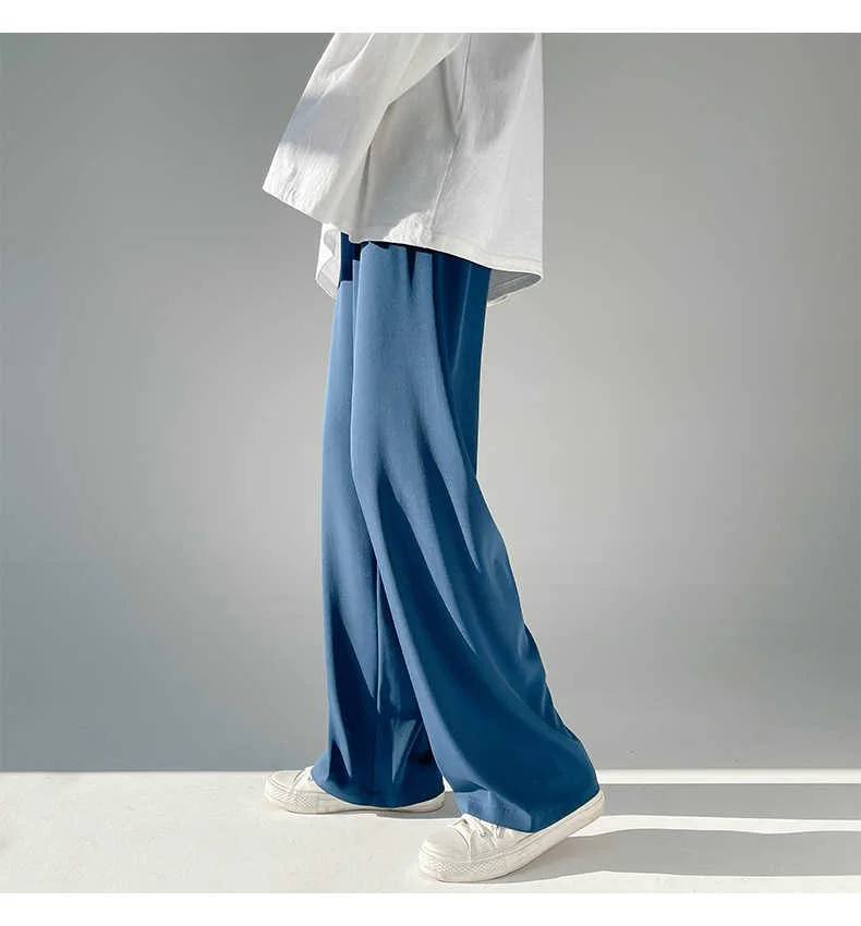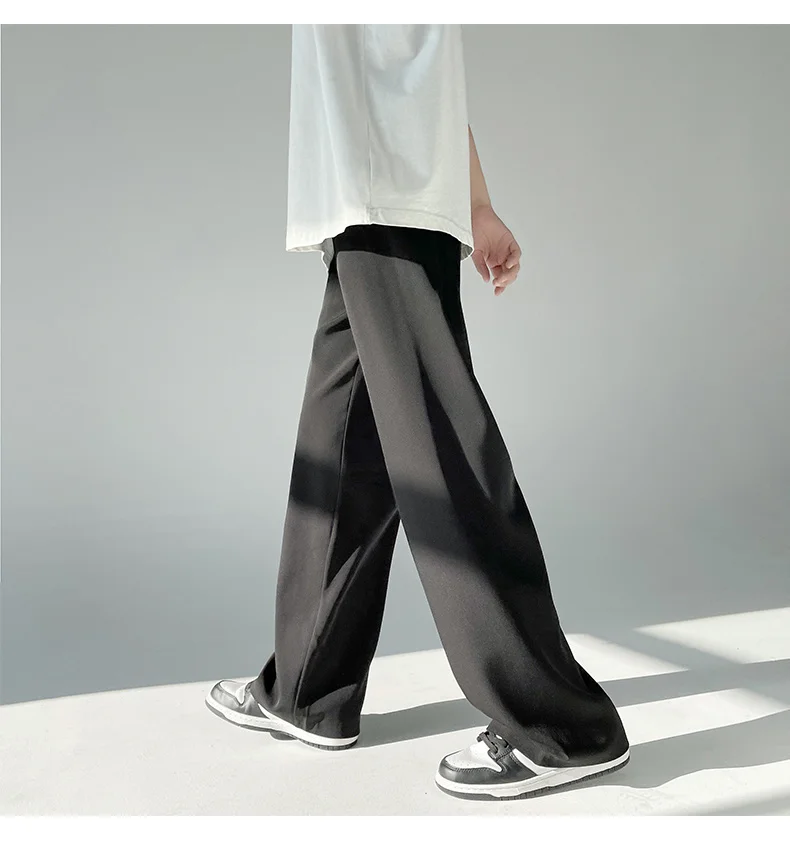 Wiaofellas - Ice Men's Silk Summer Wide Mop Pants New Casual Pants Pink Blue Black White Straight Trousers Korean Long Pants 2Y2225