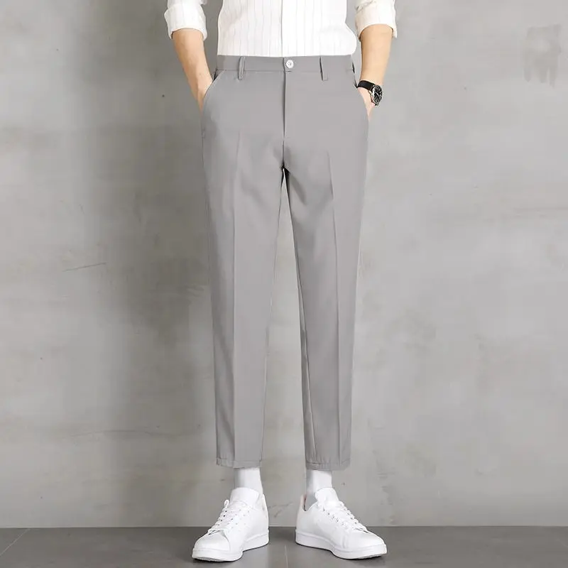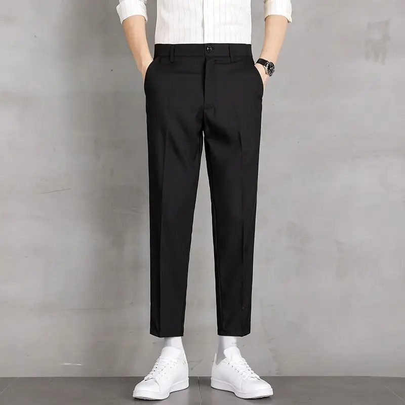 Wiaofellas - Male Suit Trousers Plus Big Size Social Tailoring Men's Summer 9 Cropped Pants Straight Business Spring Clothes Elegant Spandex