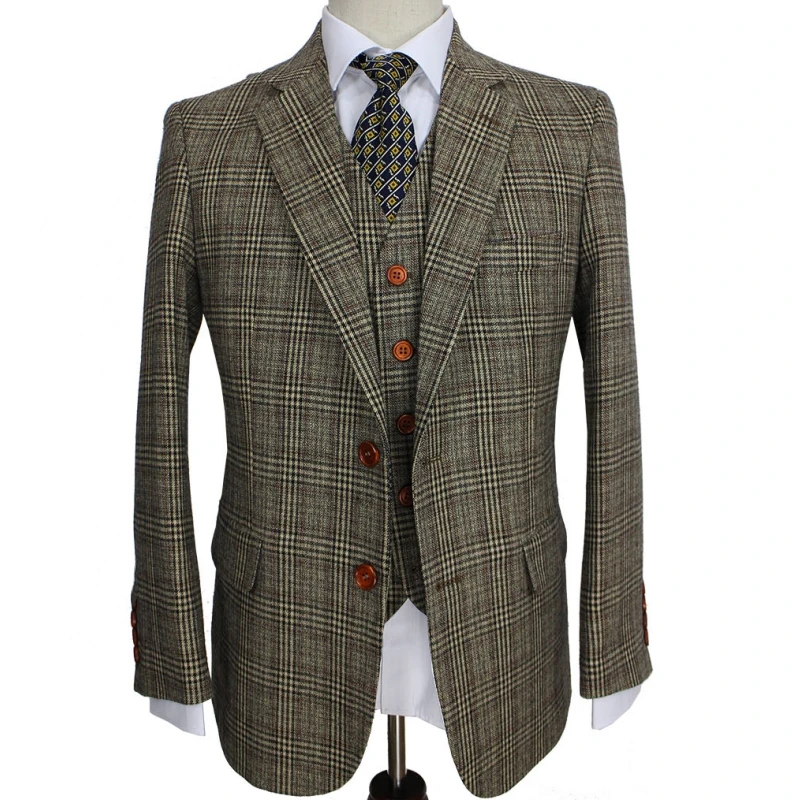 Wiaofellas - Men Suit Brown Retro Brown Plaid Groom Tuxedos Custom Made Slim Fit Wedding For Men Blazer Tailor Jacket Vest With Pants