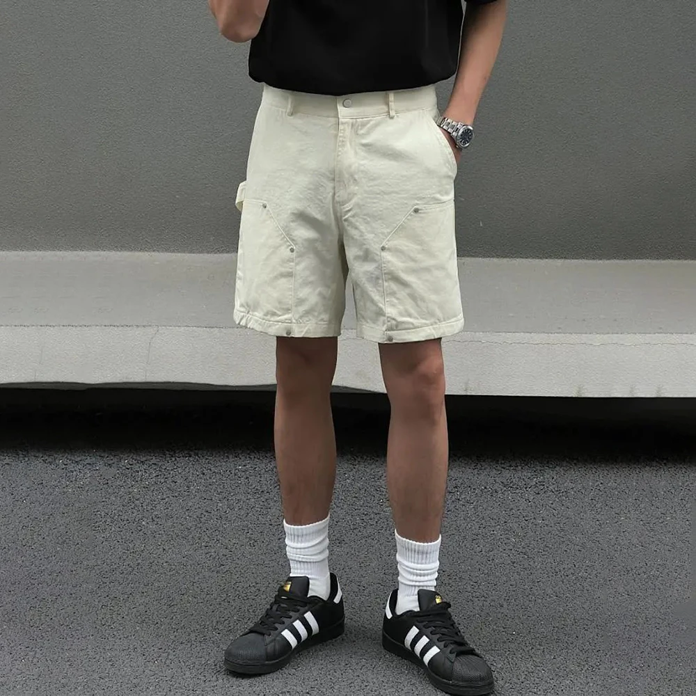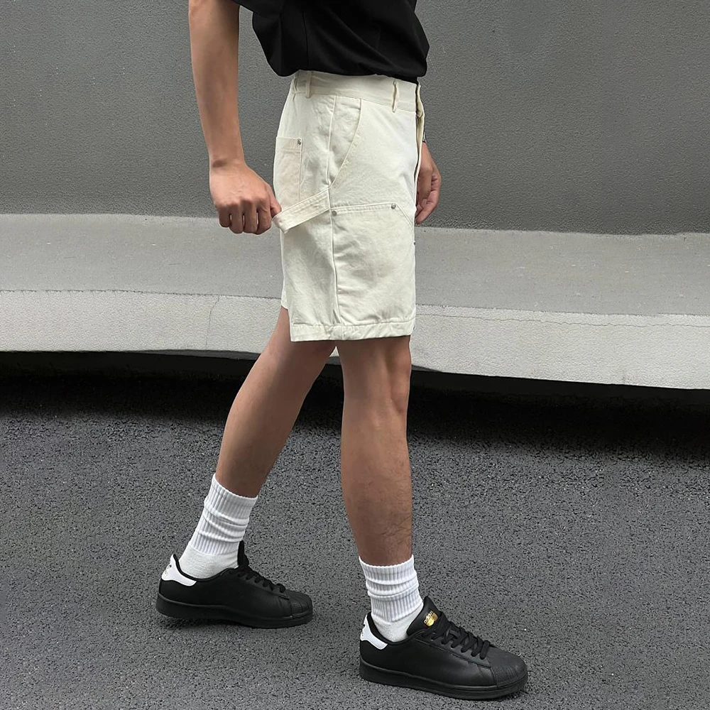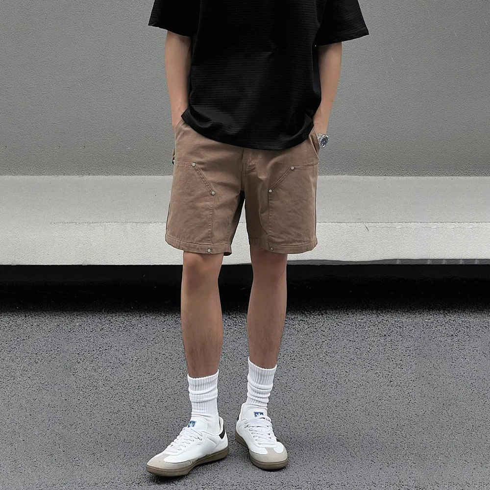 Wiaofellas  -  Mens Casual Metal Rivet Five-Quarter Pants Genderless New American Retro Personality Versatile Solid Color Shorts Unisex