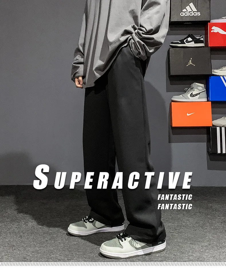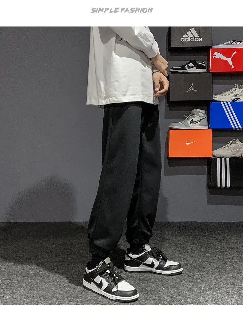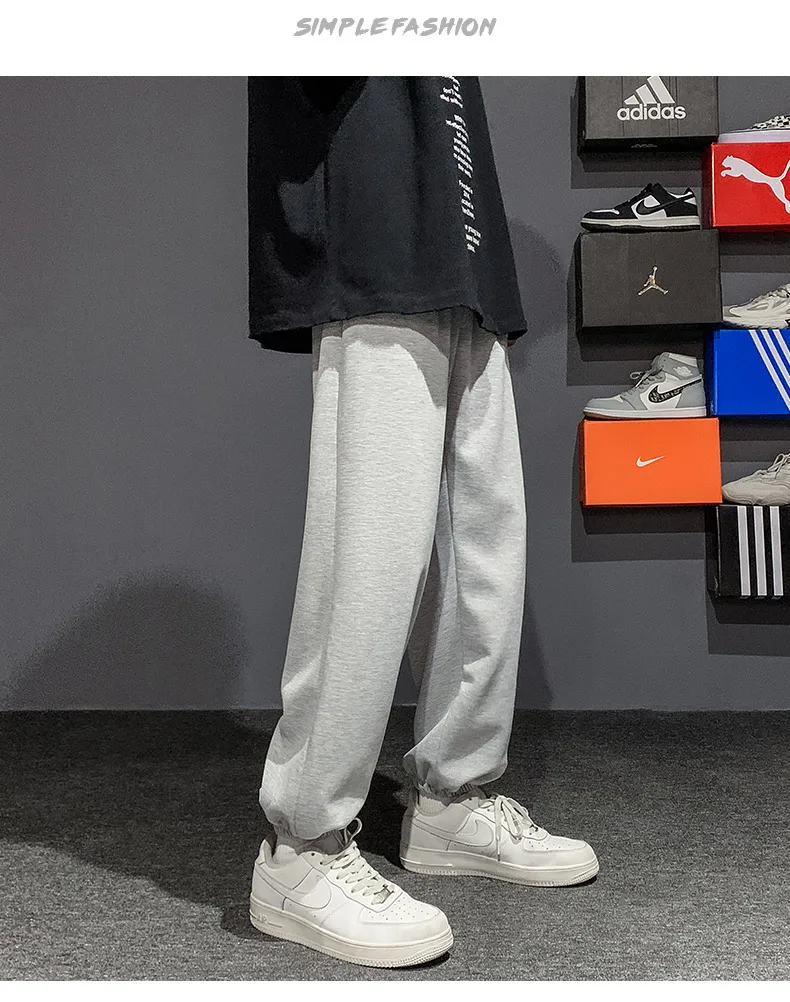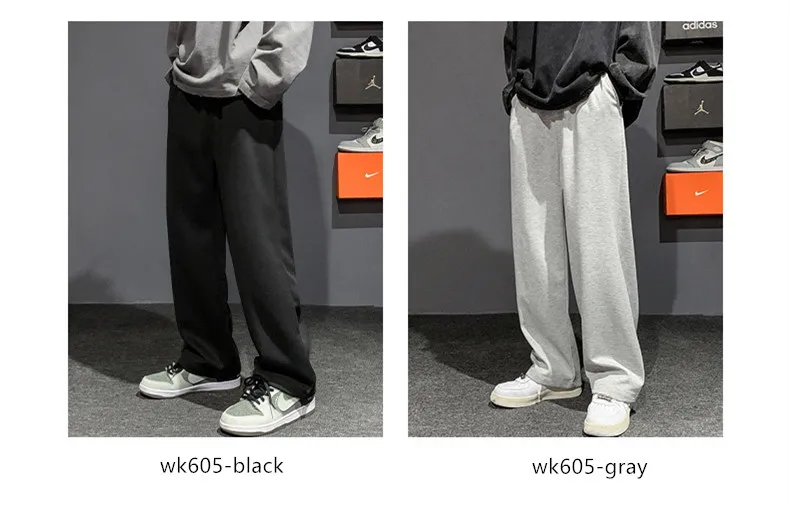 Wiaofellas - Men's casual pants autumn new street loose straight wide-leg pants students outdoor jogging sports pants gray leggings 3XL