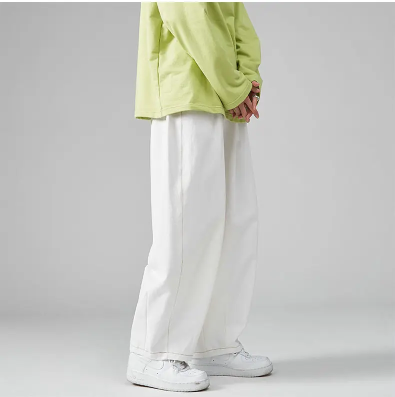 Wiaofellas  -  Men's Loose Casual Wide Leg Pants Fashion Elastic Waist Pure Cotton Solid Color Pants Straight Baggy Wide Leg Pants 5XLSize Chart
