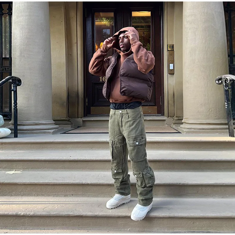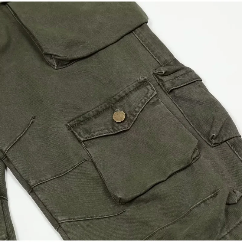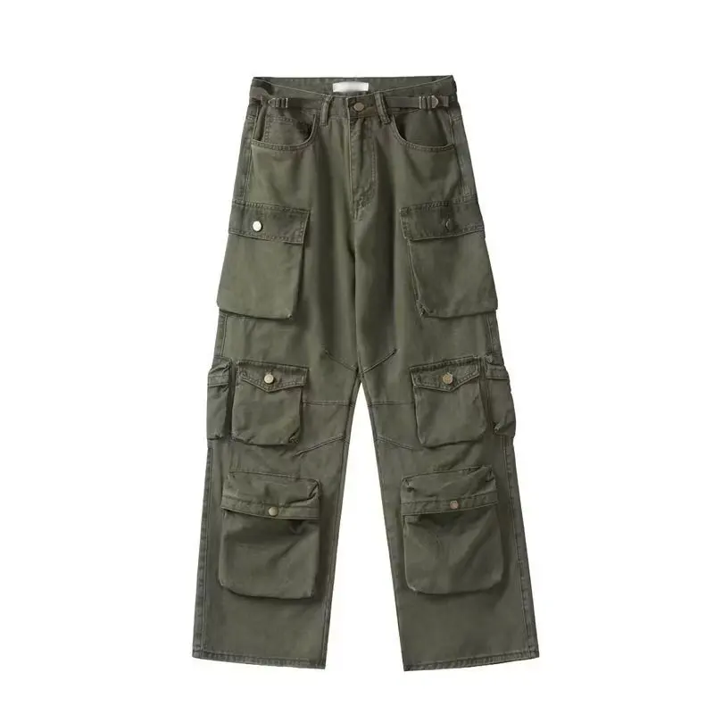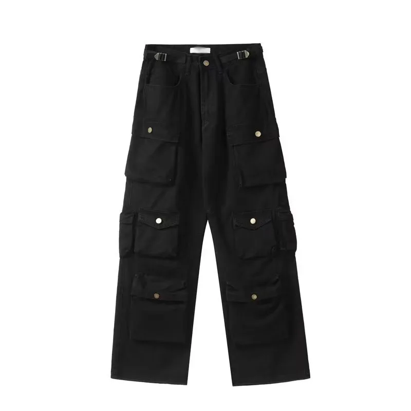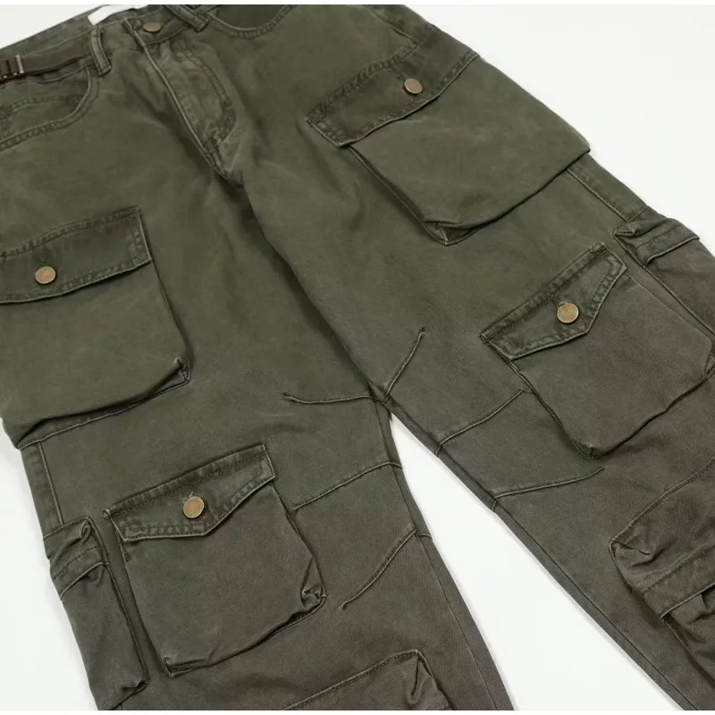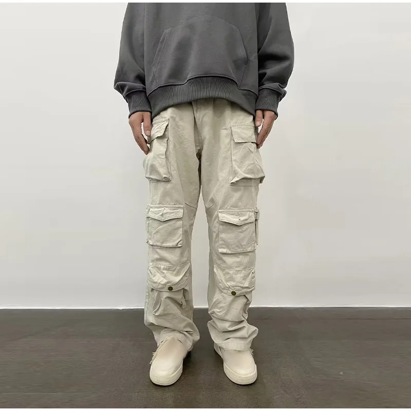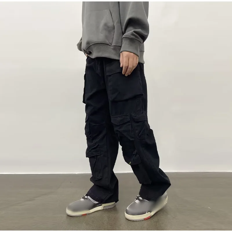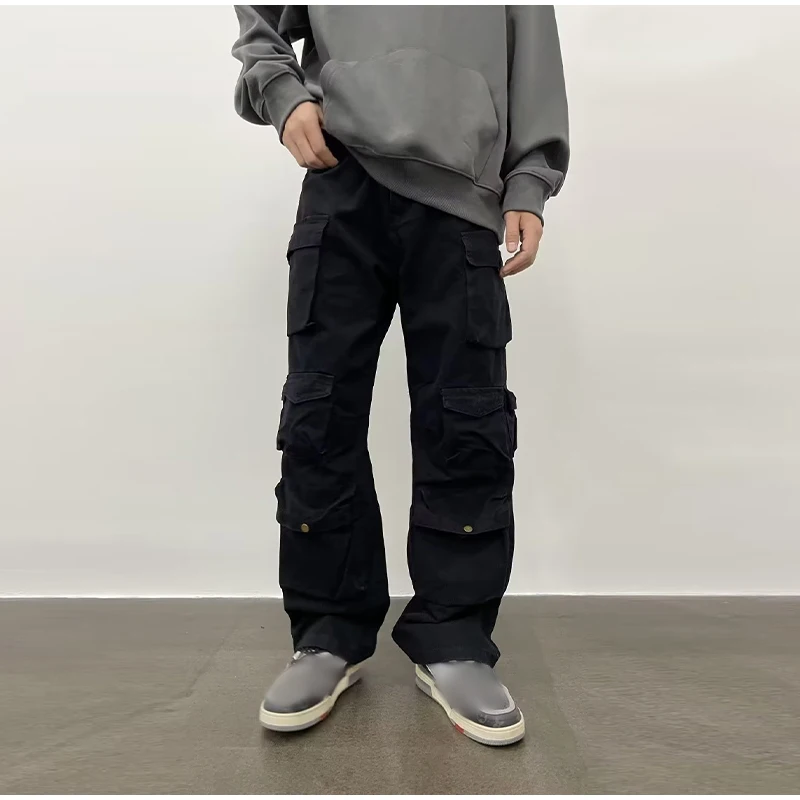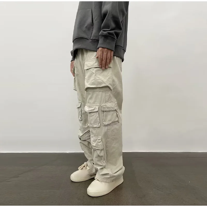 Wiaofellas - fall outfits Men's Multi Pocket Cargo Pants Casual Japanese Style Loose Straight Pants Spring Autumn High Quality Solid Button Trousers