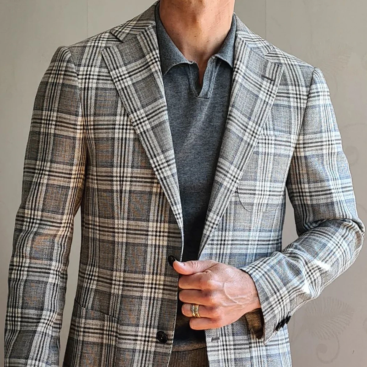 Wiaofellas - New Men's Suit 2 Pieces Blazer Pants Single Breasted Peaked Lapel Business Plaid Stripes Work Wear Wedding Groom Costume Homme