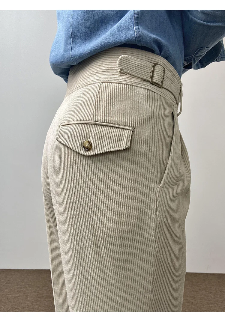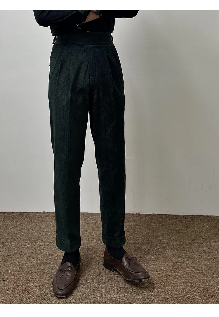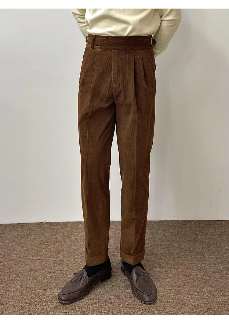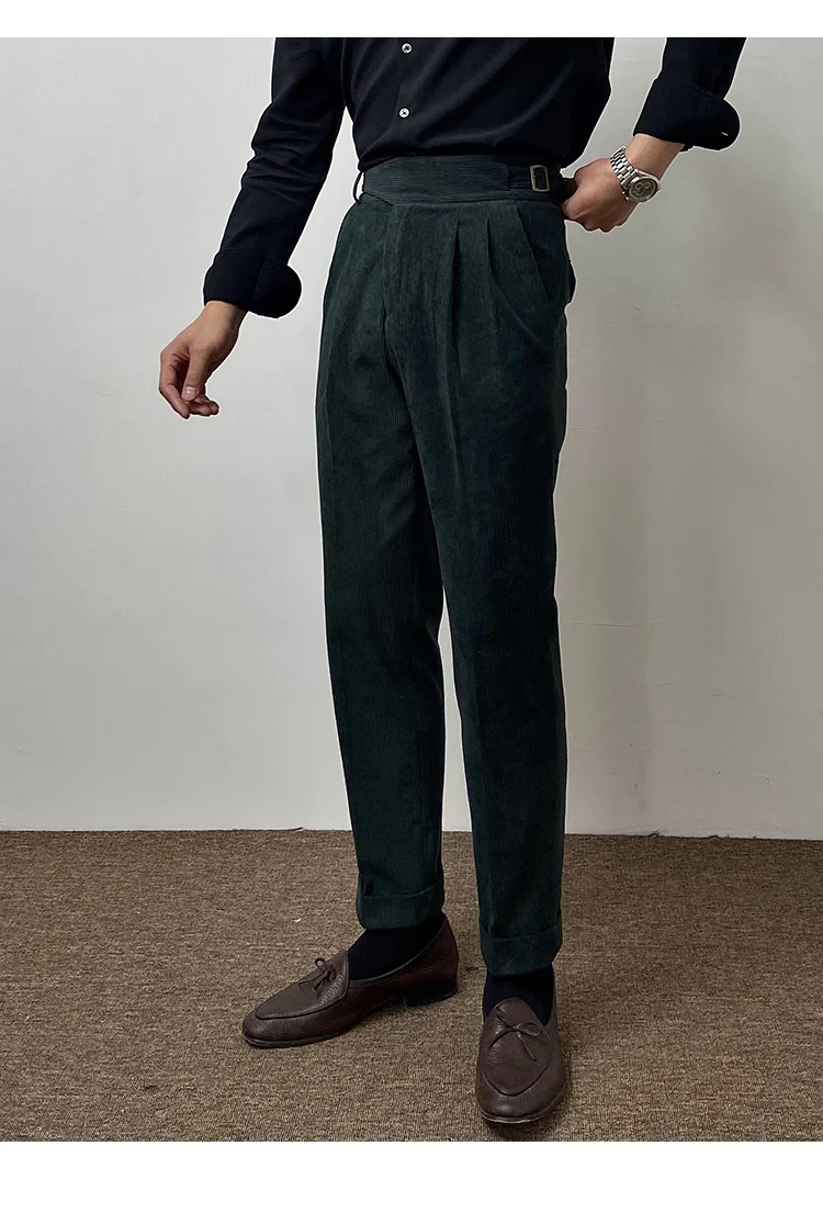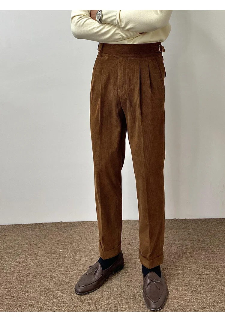 Wiaofellas - Office-trousers Men Dress Pants Autumn Winter Men Corduroy Suit Pant Casual British High Waist Pants Trousers Pantalones Hombre