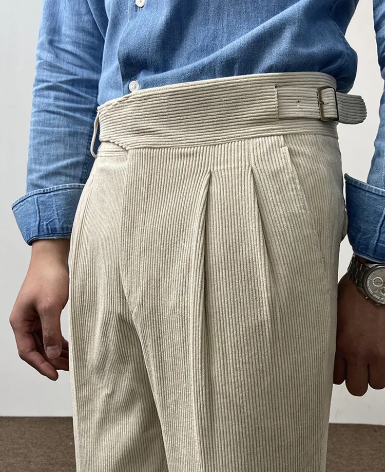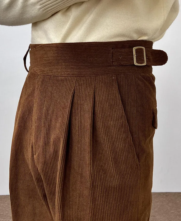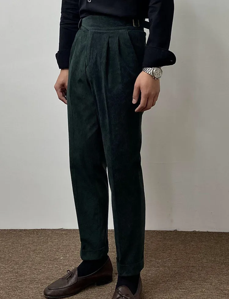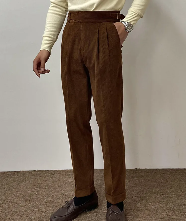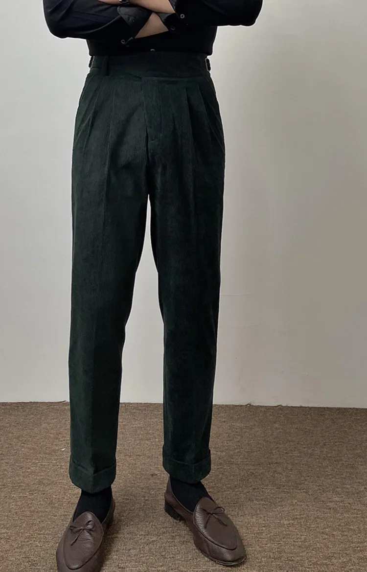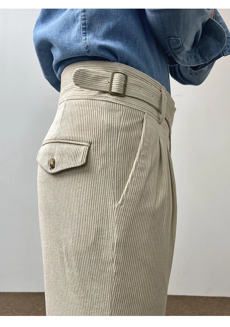 Wiaofellas - Office-trousers Men Dress Pants Autumn Winter Men Corduroy Suit Pant Casual British High Waist Pants Trousers Pantalones Hombre