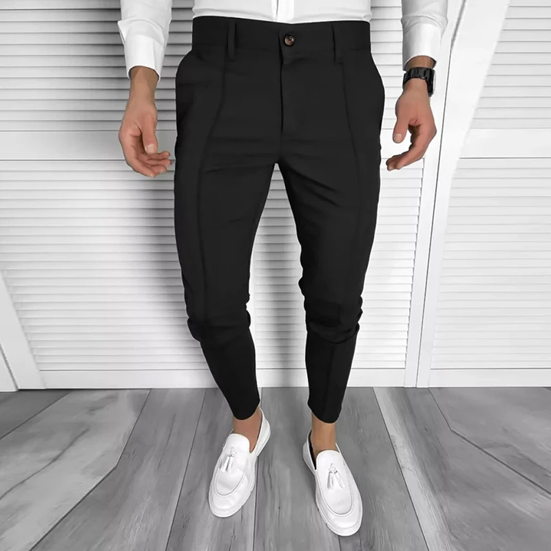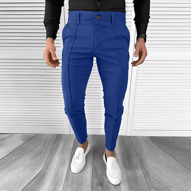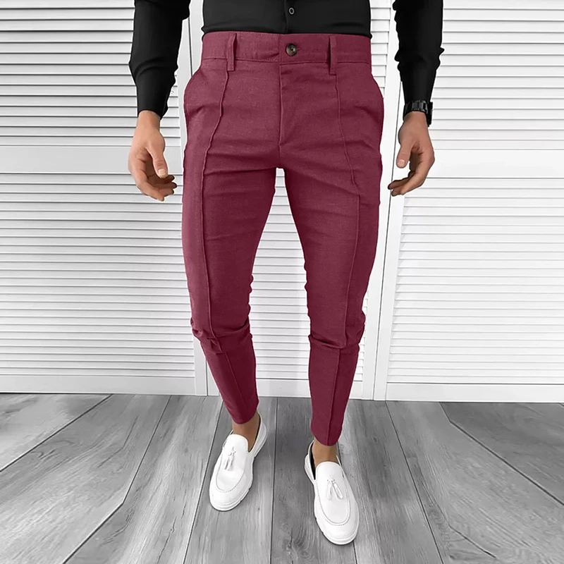 Wiaofellas  -  Solid Color Pleated Suit Trousers For Men Spring Autumn Casual Slim Fit Pencil Pants Mens Office Clothing Streetwear Male Pants