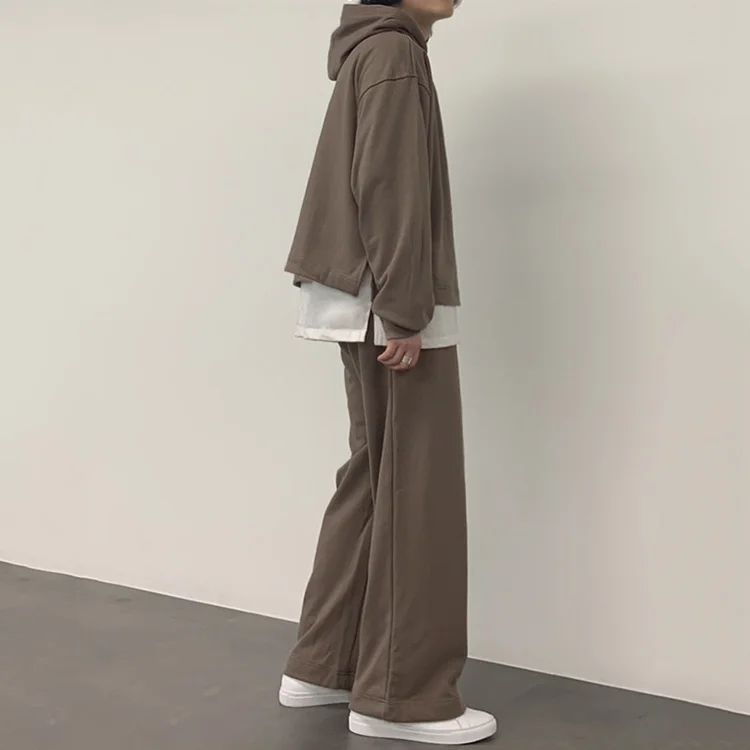 Wiaofellas - Spring New Fake Two-piece Sports Suit Men's Korean Hooded Sweatshirts + Loose Wide Leg Sweatpants Set Casual 2Y7125