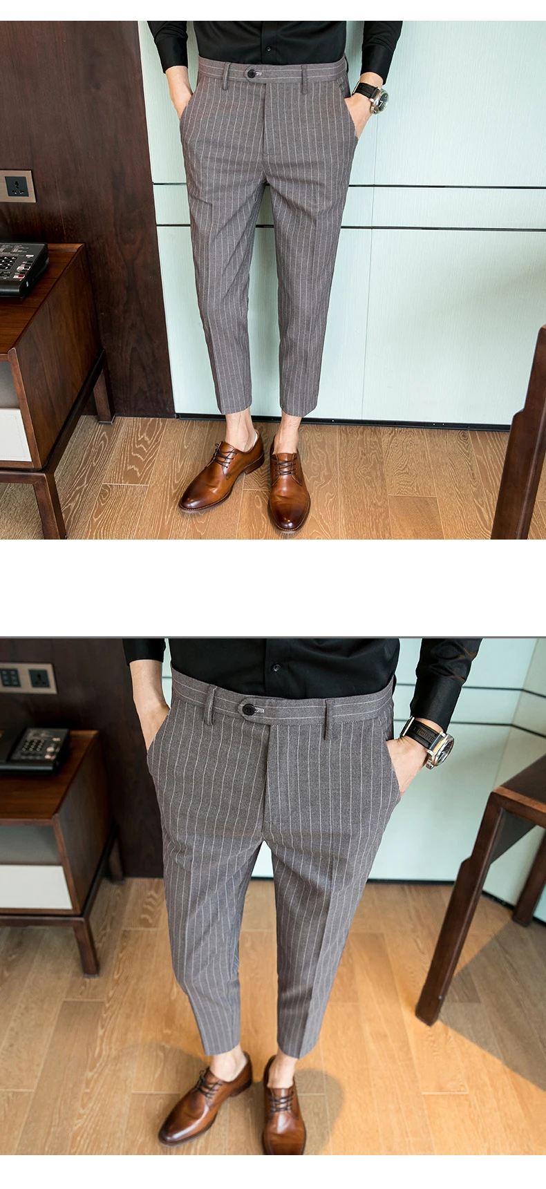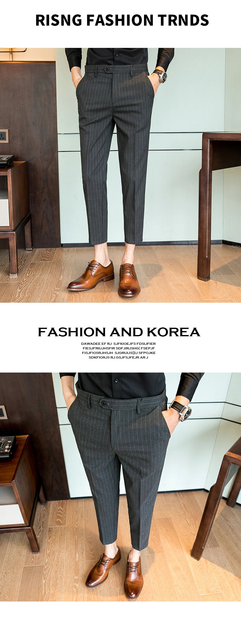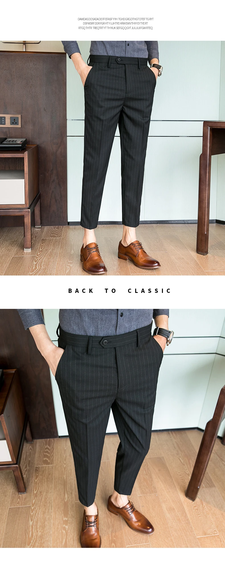 Wiaofellas - Spring Autumn New Stripe Men's Suit Pants Dress Clothing Casual Office Long Trousers Business Formal Wear Male B168
