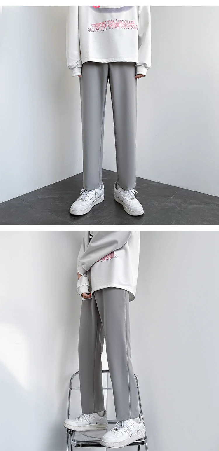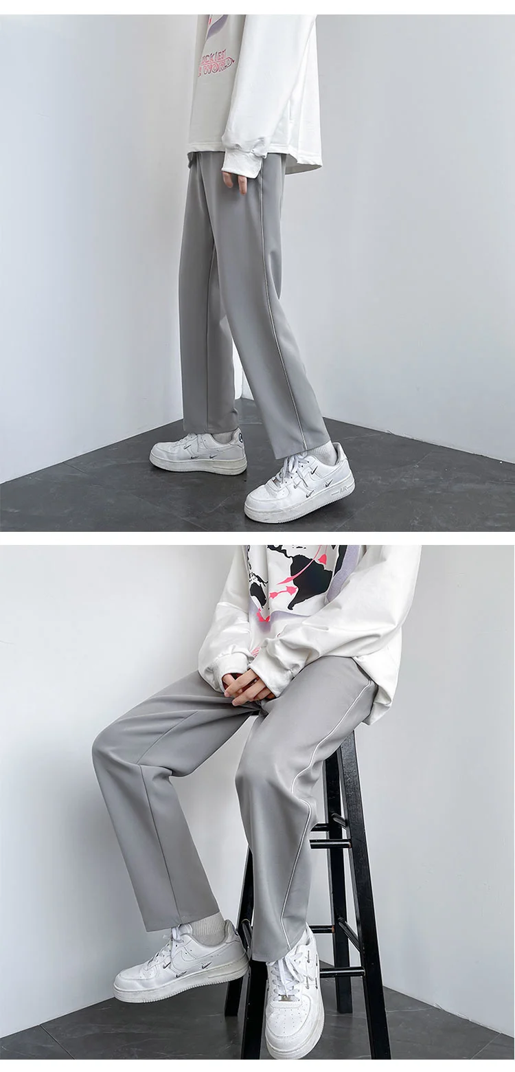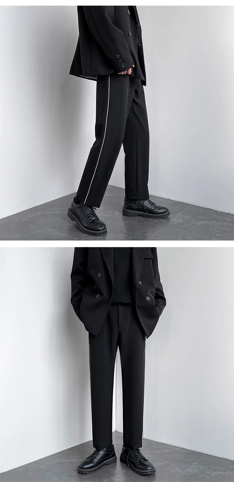 Wiaofellas  -  Straight Men's Trousers Men's Stripe Suit Pants Korean Trendy Grey Ankle Length Pants Casual Side Stried Design 2A0208