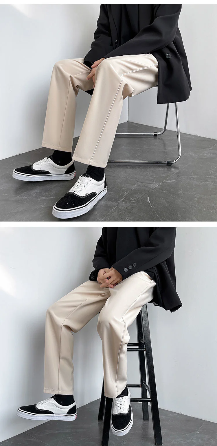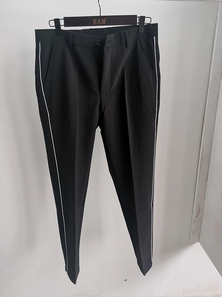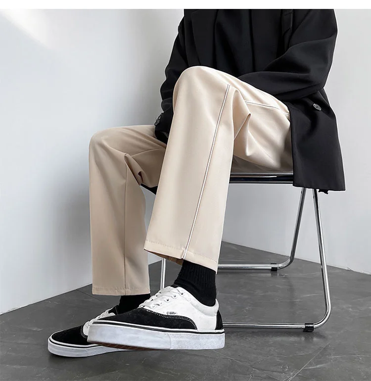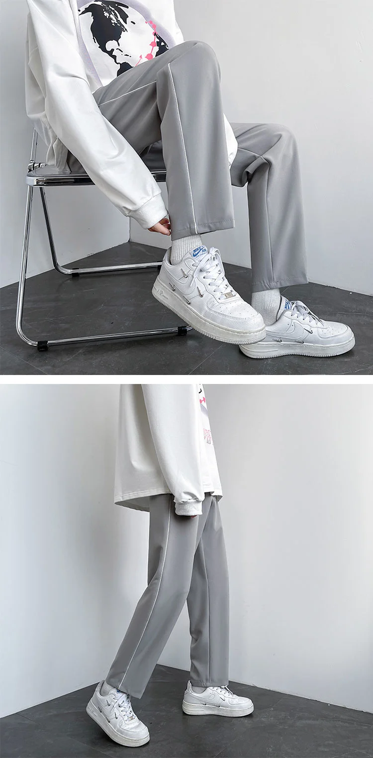 Wiaofellas  -  Straight Men's Trousers Men's Stripe Suit Pants Korean Trendy Grey Ankle Length Pants Casual Side Stried Design 2A0208