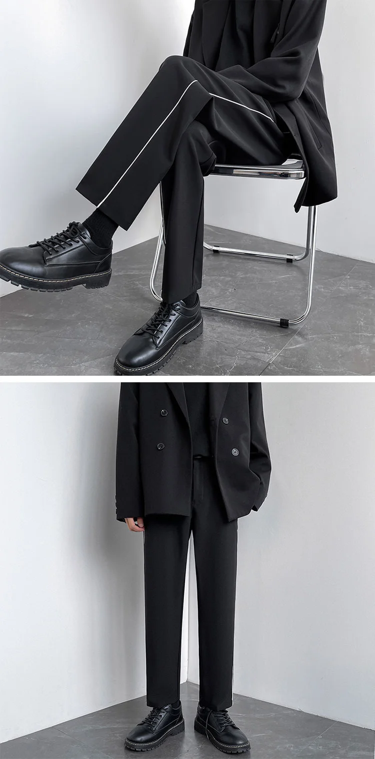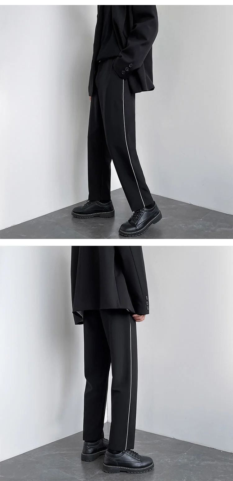 Wiaofellas - Straight Men's Trousers Men's Stripe Suit Pants Korean Trendy Grey Ankle Length Pants Casual Side Stried Design 2A0208