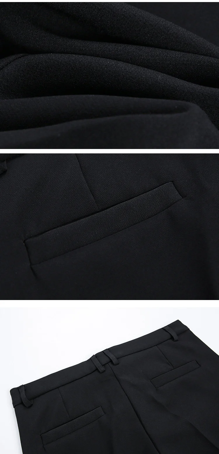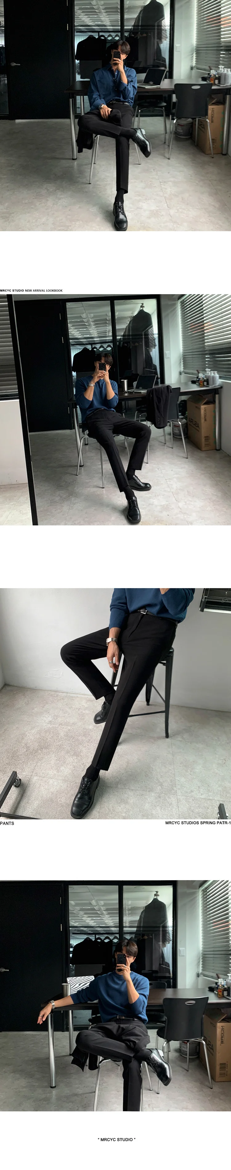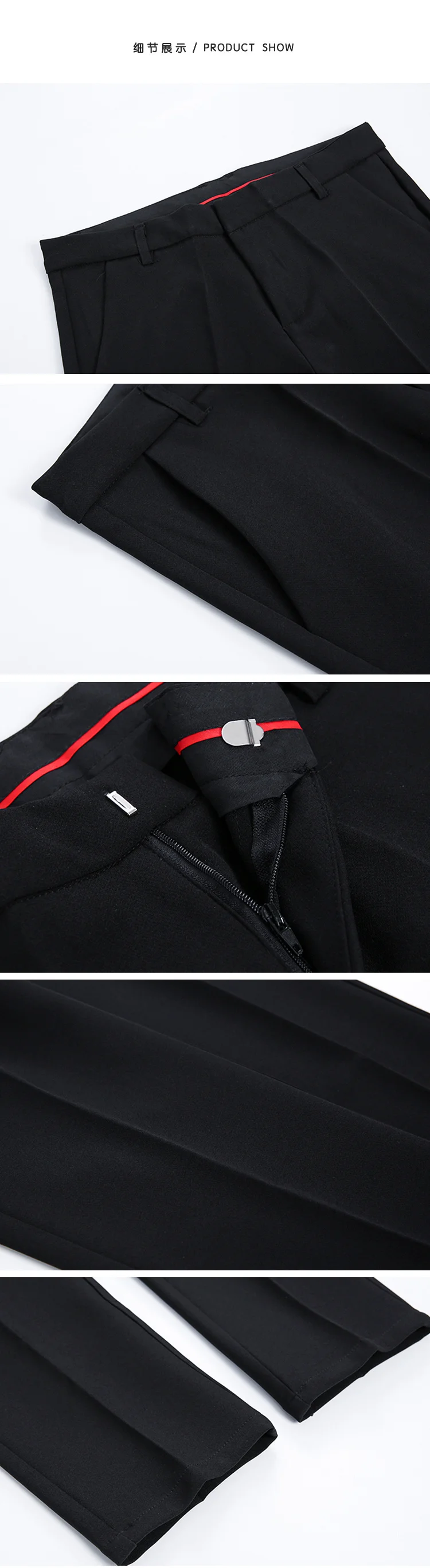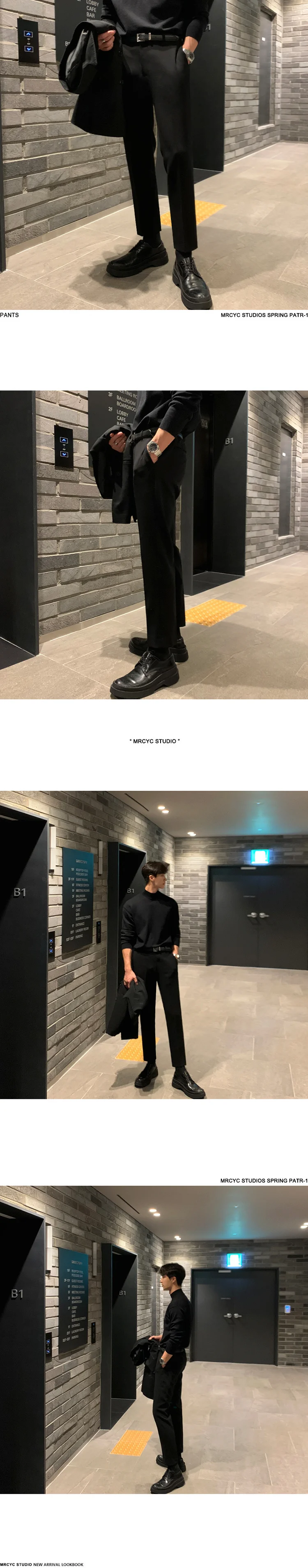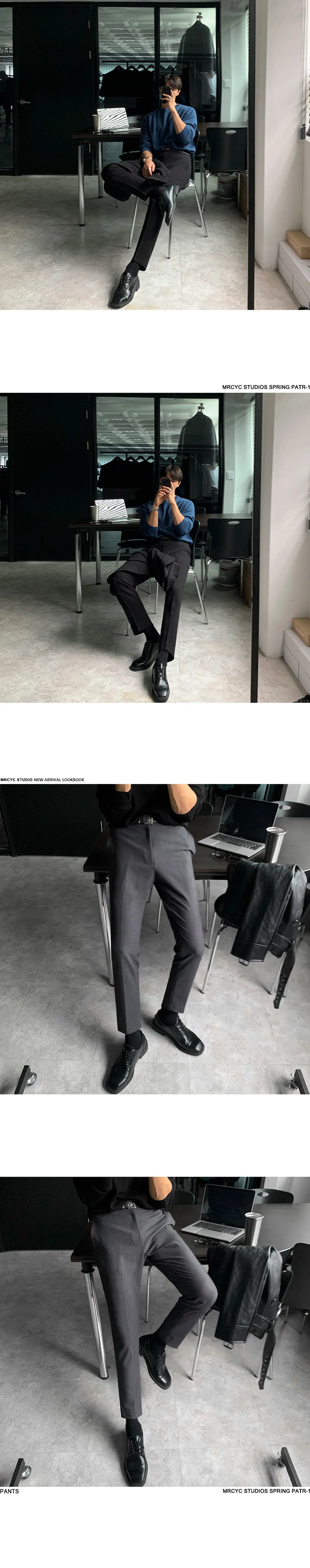 Wiaofellas - Style Korean Fashion Nine Point Trousers Men's Spring New Slim Straight Mid Waist Solid Color Suit Pants Male TideSIZE (Unit: CM)