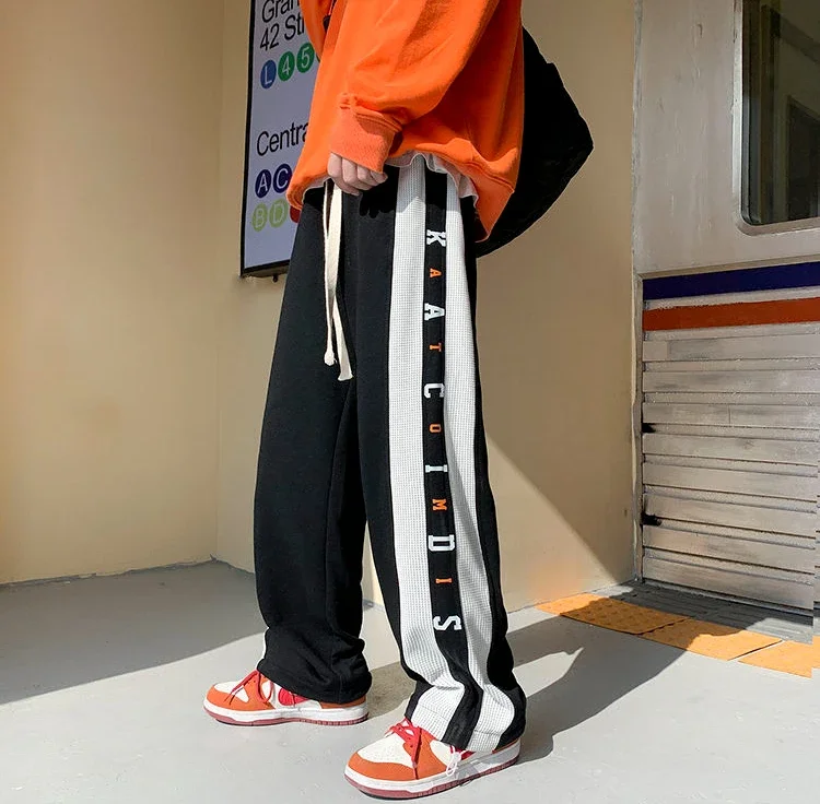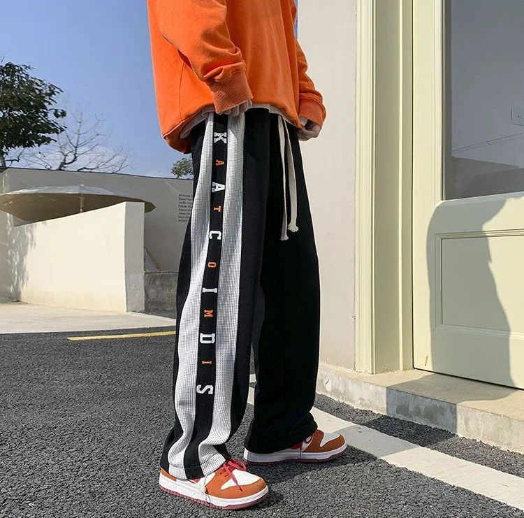 Wiaofellas  -  Sweatpants for Men Wide Leg Male Sweat Pants Elastic Trousers Hip-hop Straight Summer Fashion Harajuku Y2k Casual New Items In