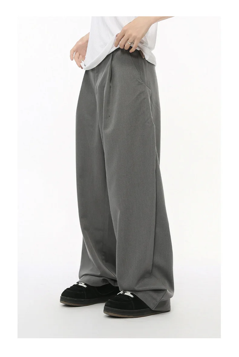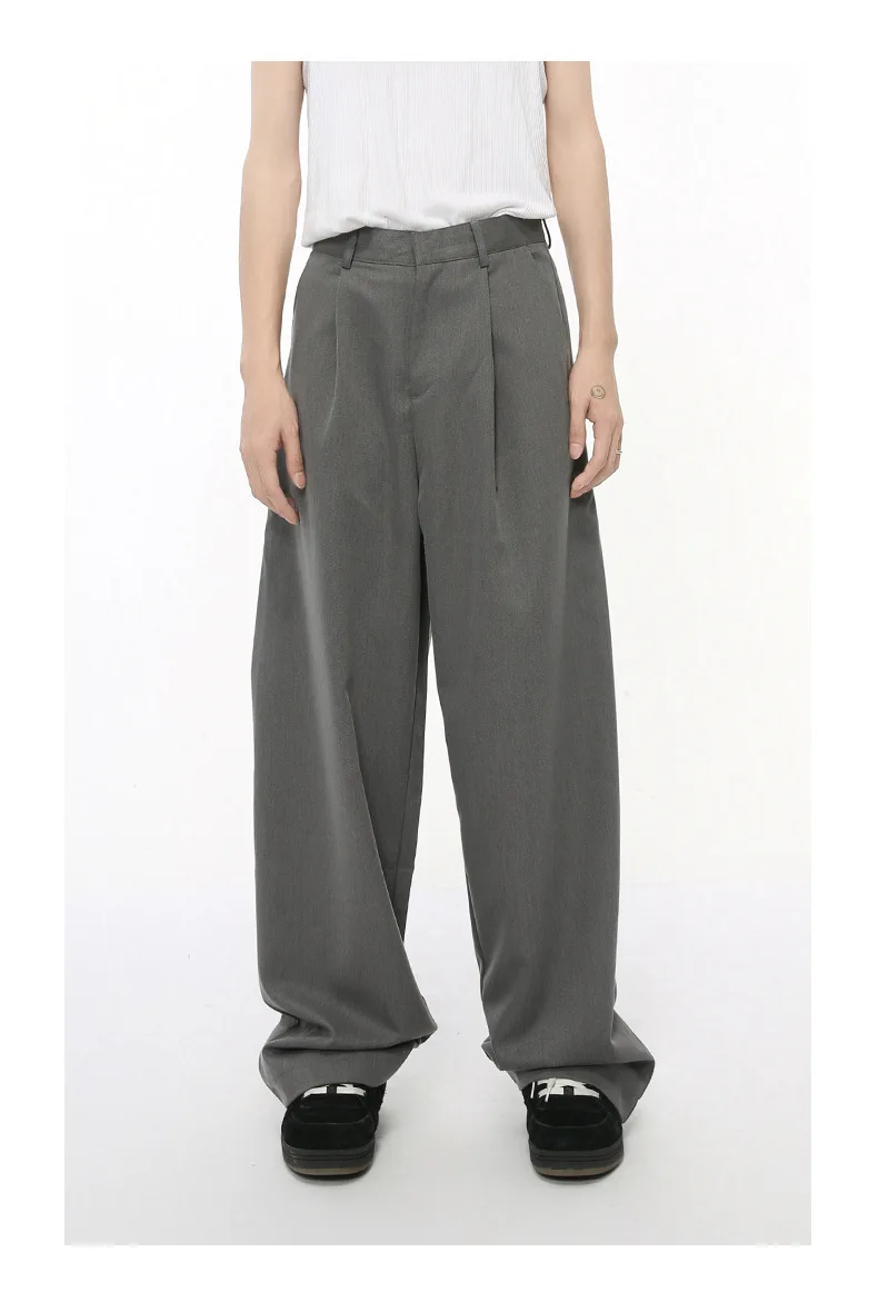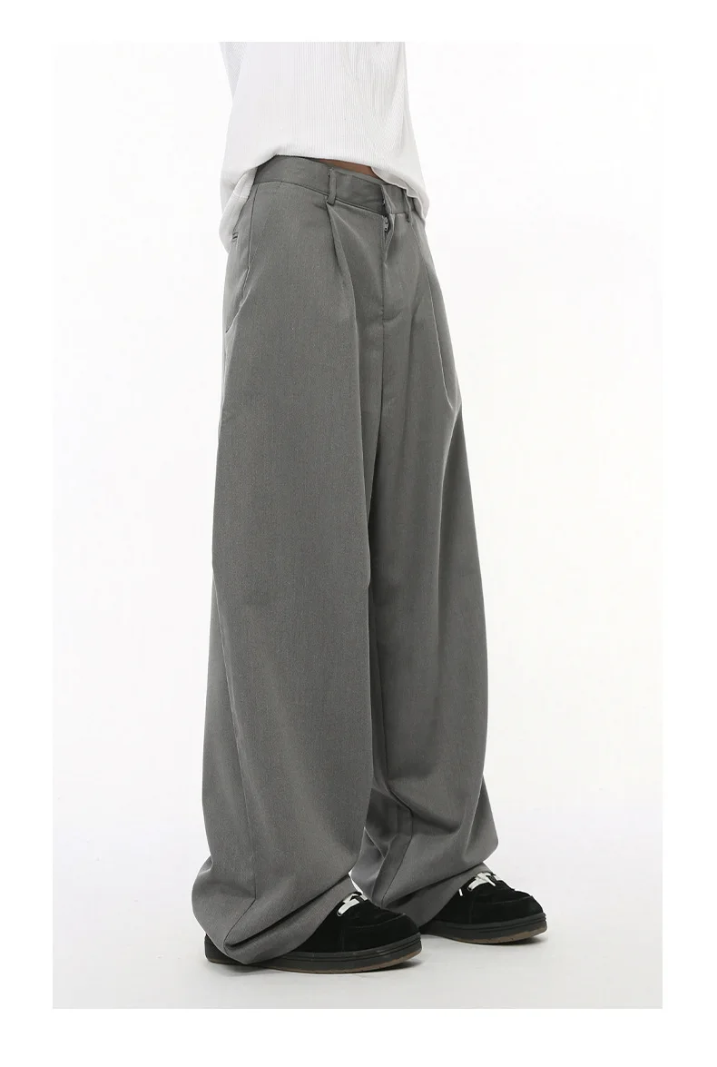 Wiaofellas - fall outfits American Style Men's Suit Pants Pleated Solid Color Bottom Straight Loose Wide Leg Male Trousers Simple Autumn