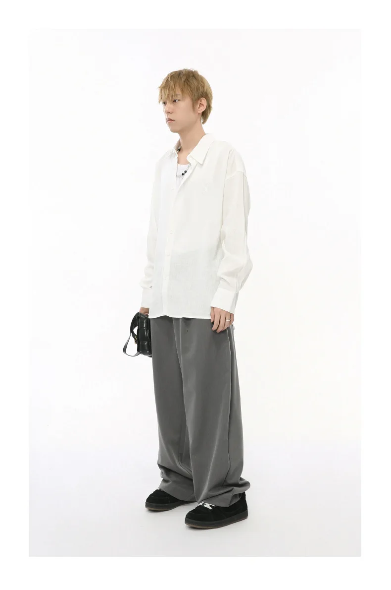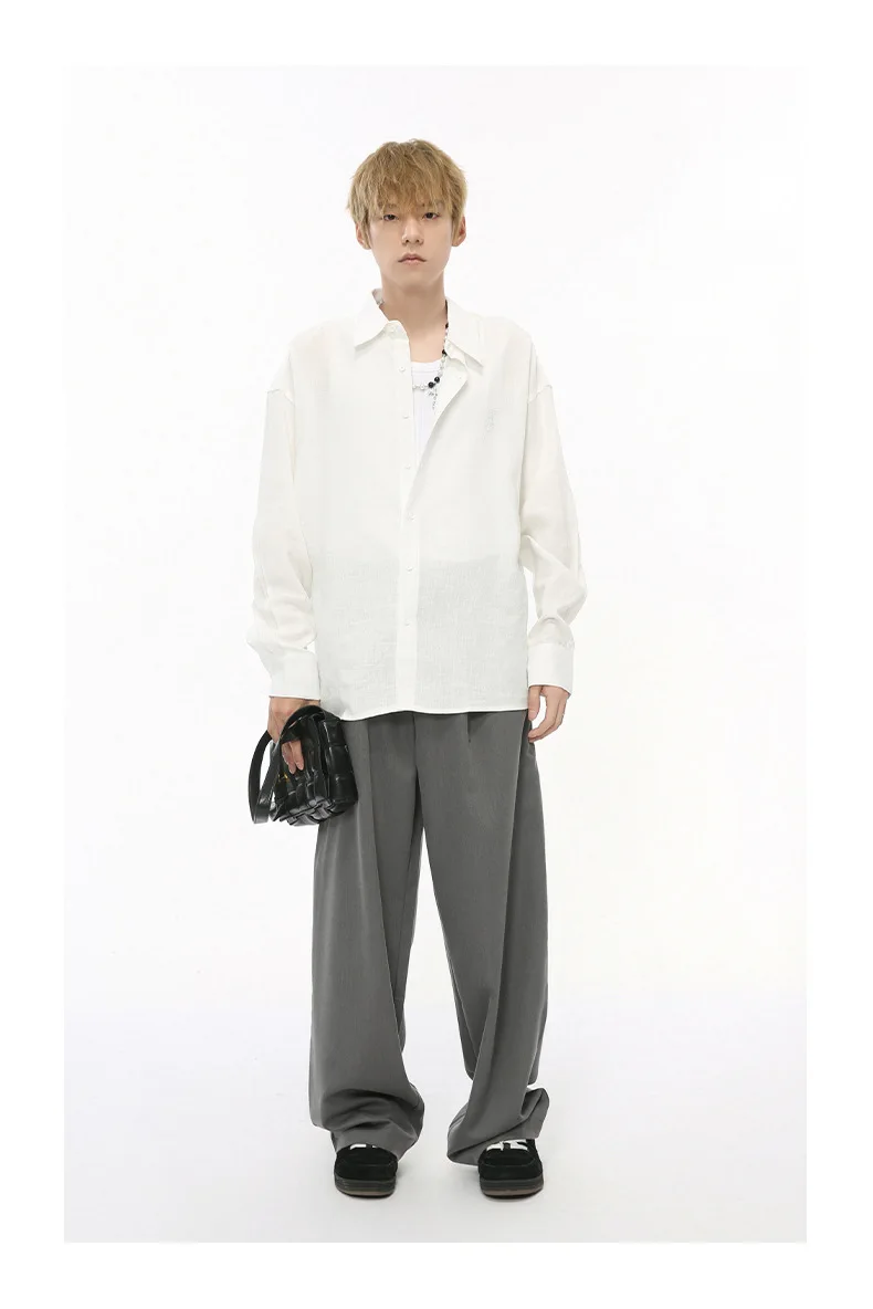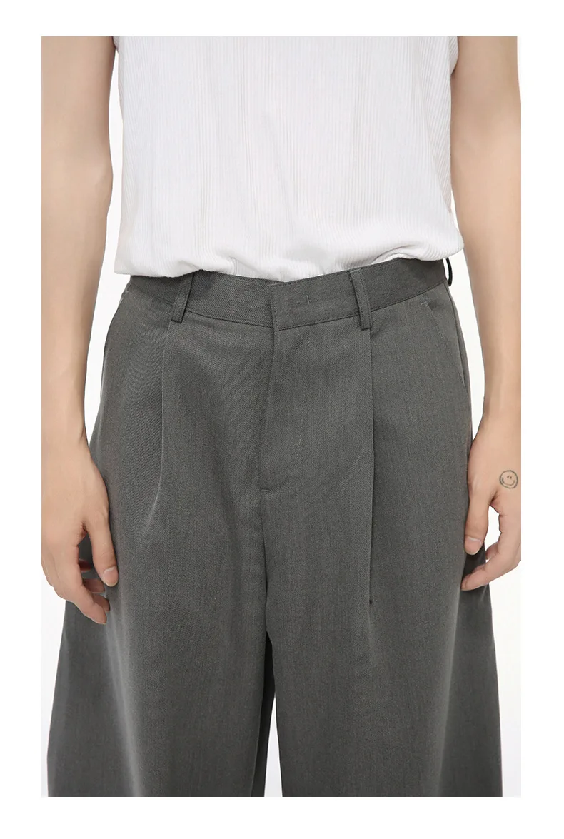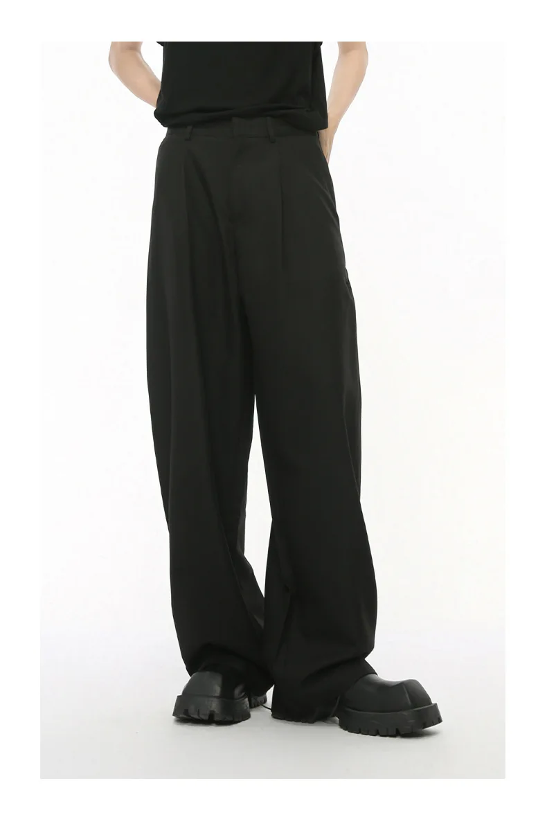 Wiaofellas - fall outfits American Style Men's Suit Pants Pleated Solid Color Bottom Straight Loose Wide Leg Male Trousers Simple Autumn