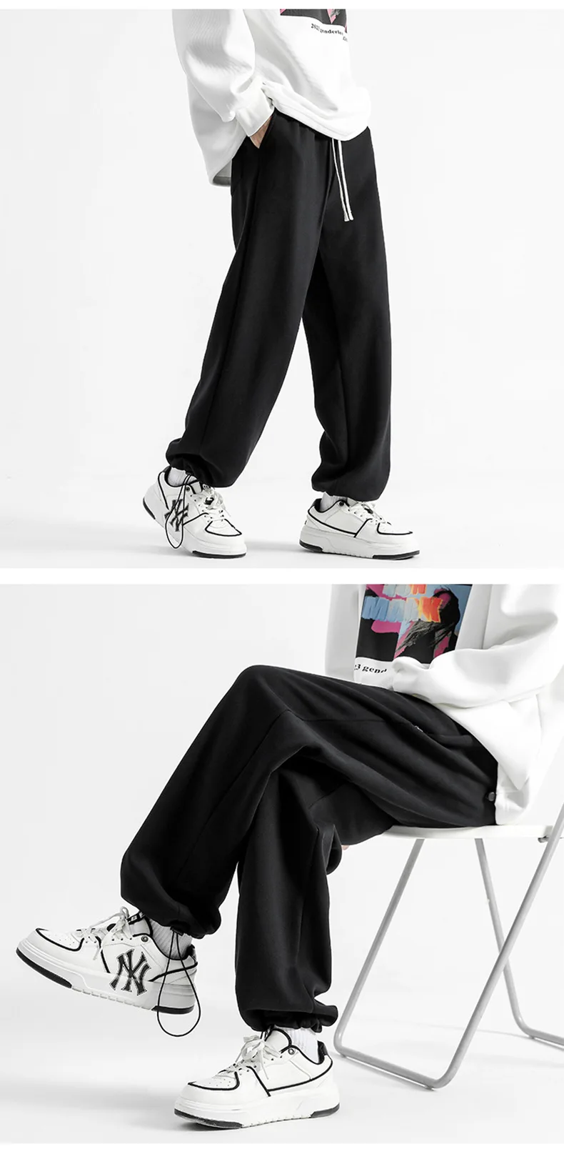 Wiaofellas  -  Brand New Black Sweatpants Male Spring Motion Mid Rise Clothes for Teenagers Minimalist Japan Casual Pants Mans