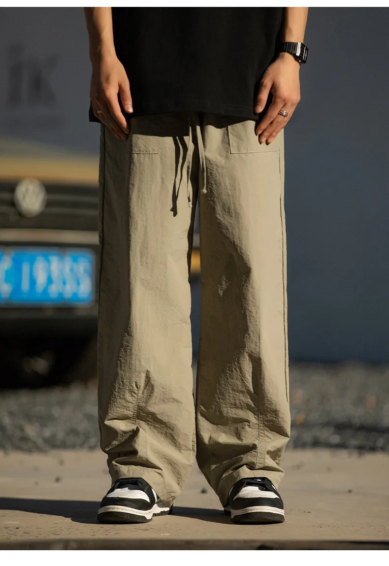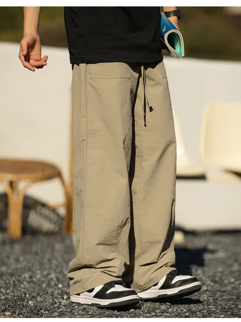Wiaofellas - Brand Folds Cargo Pants Men Spring Summer New Thin Straight Leg Couples Casual Pants Hip Hop Fashion Clothes Men