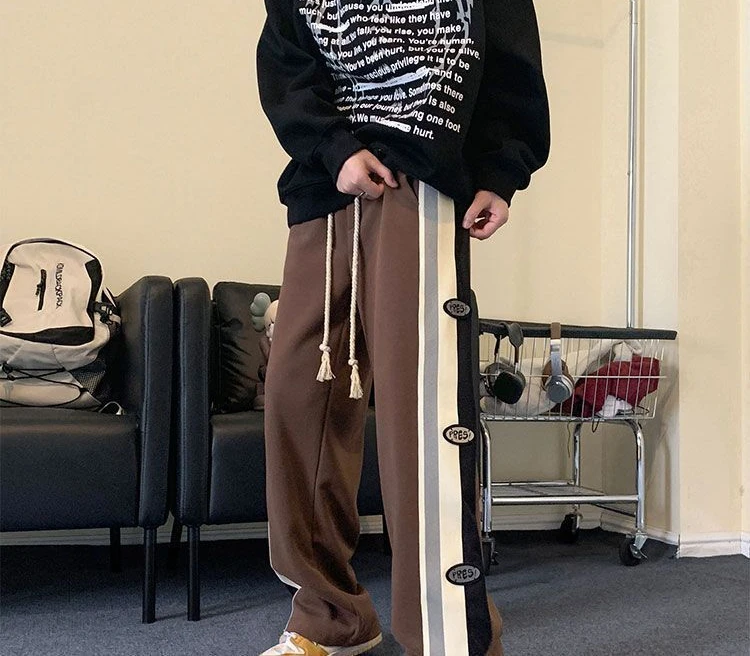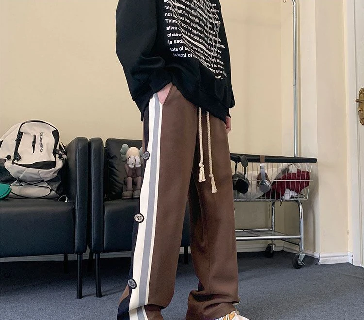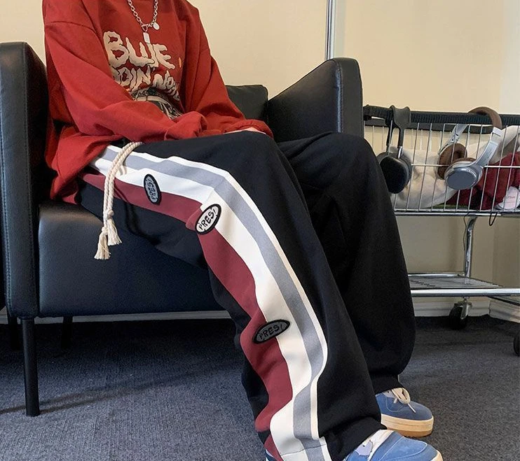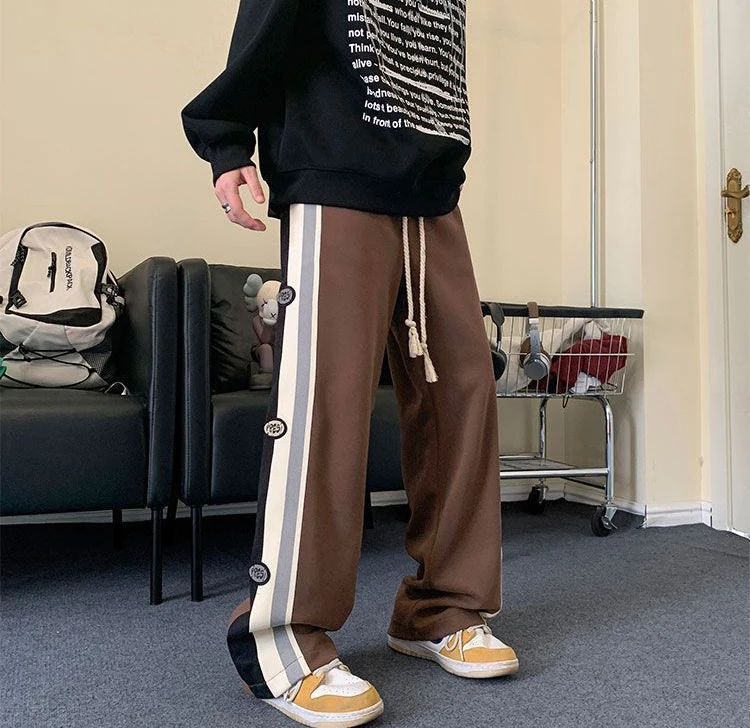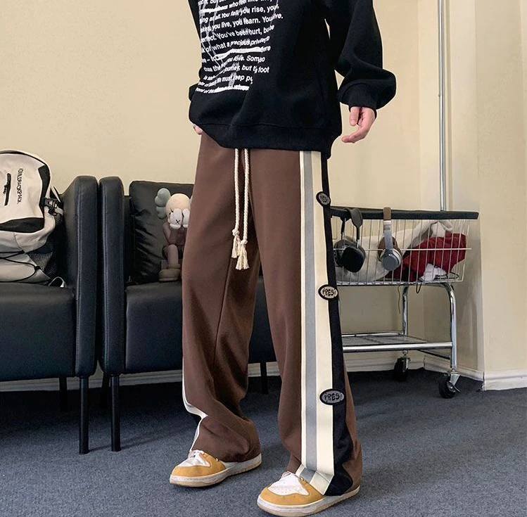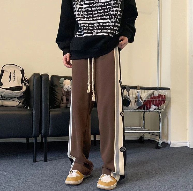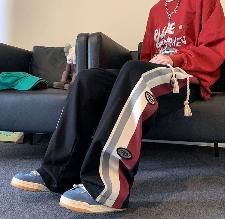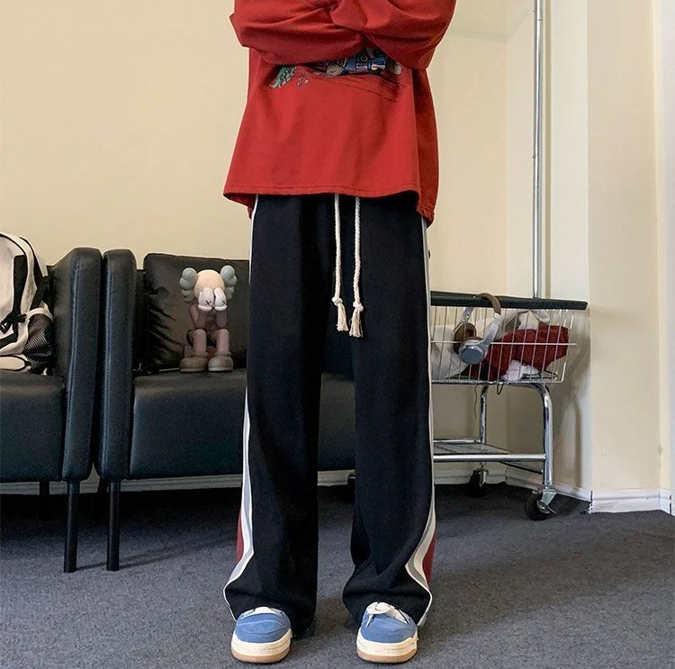 Wiaofellas - Trousers Wide Leg Straight Man Sports Pants Autumn and Winter Sweatpants for Men Xxl Korean Y2k Baggy Harajuku Big Size Elastic