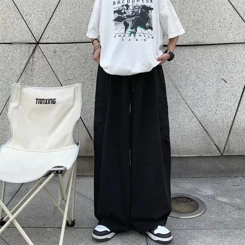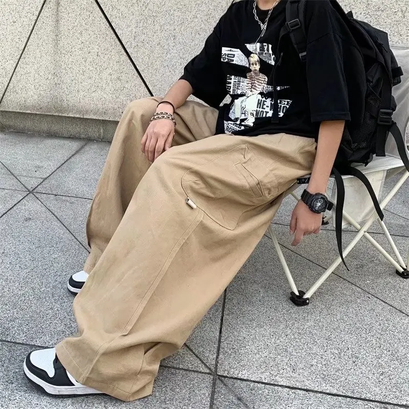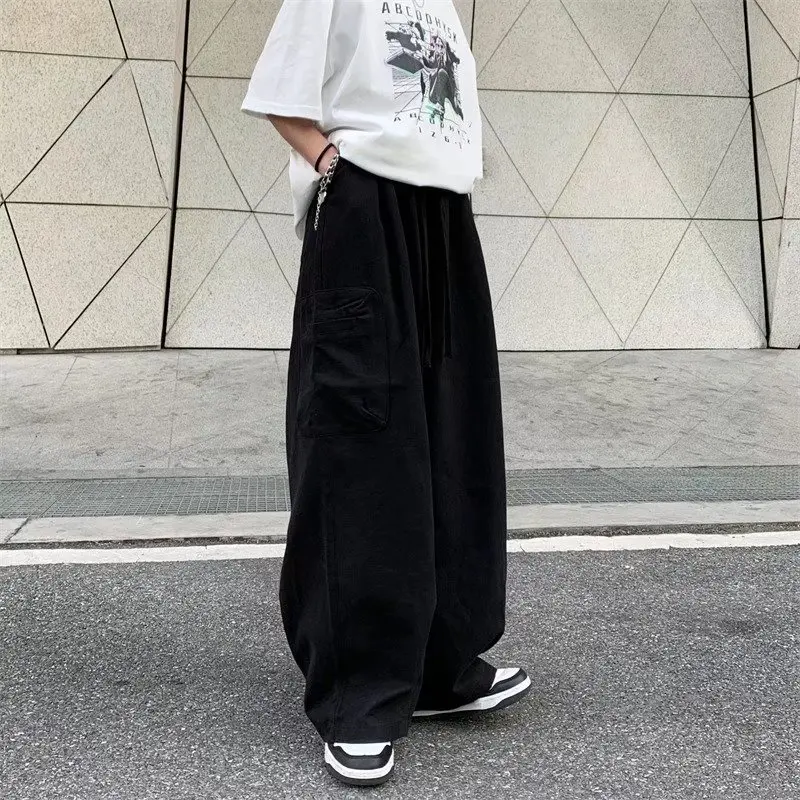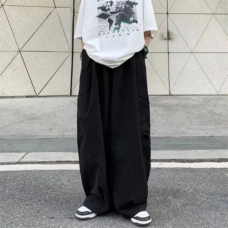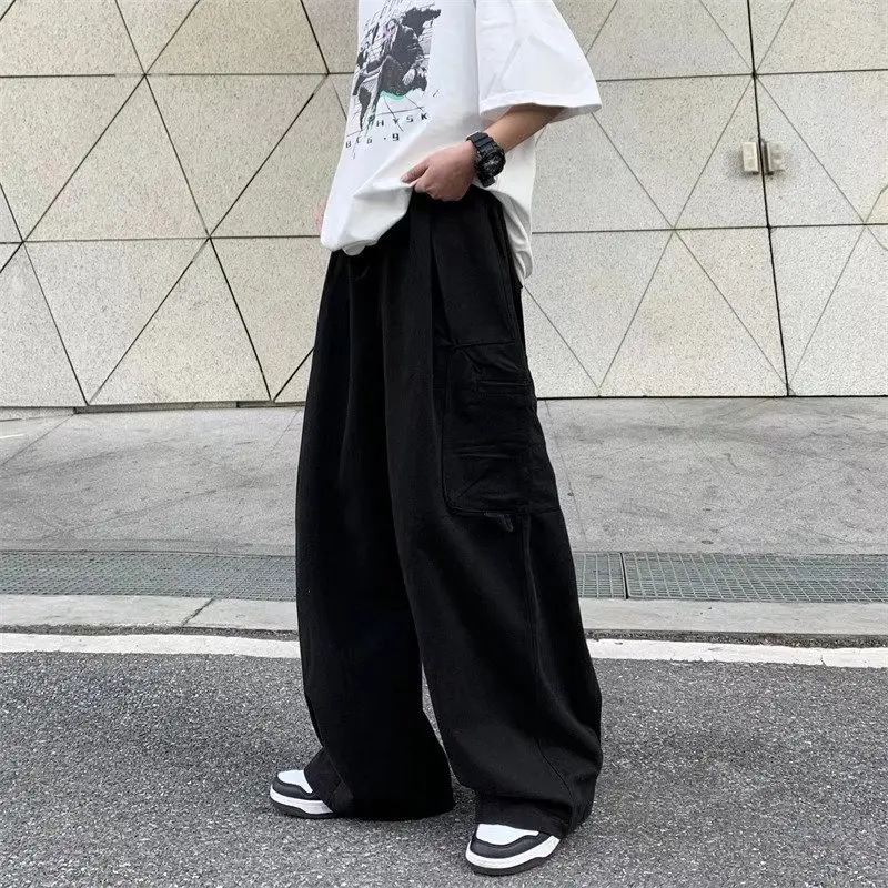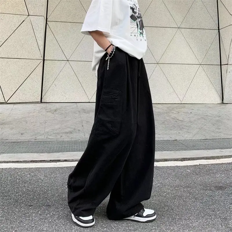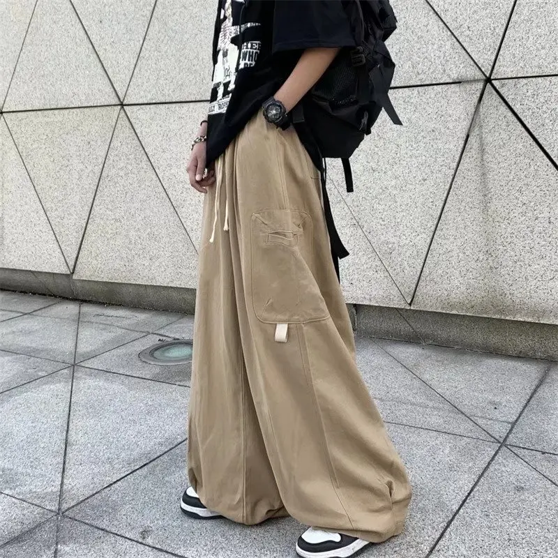 Wiaofellas  -  Vibe Full Length Winter Autumn Men Pants Wide Leg Cargo Baggy Loose Trousers Male Korean Distressed Retro Loser Safari Pants
