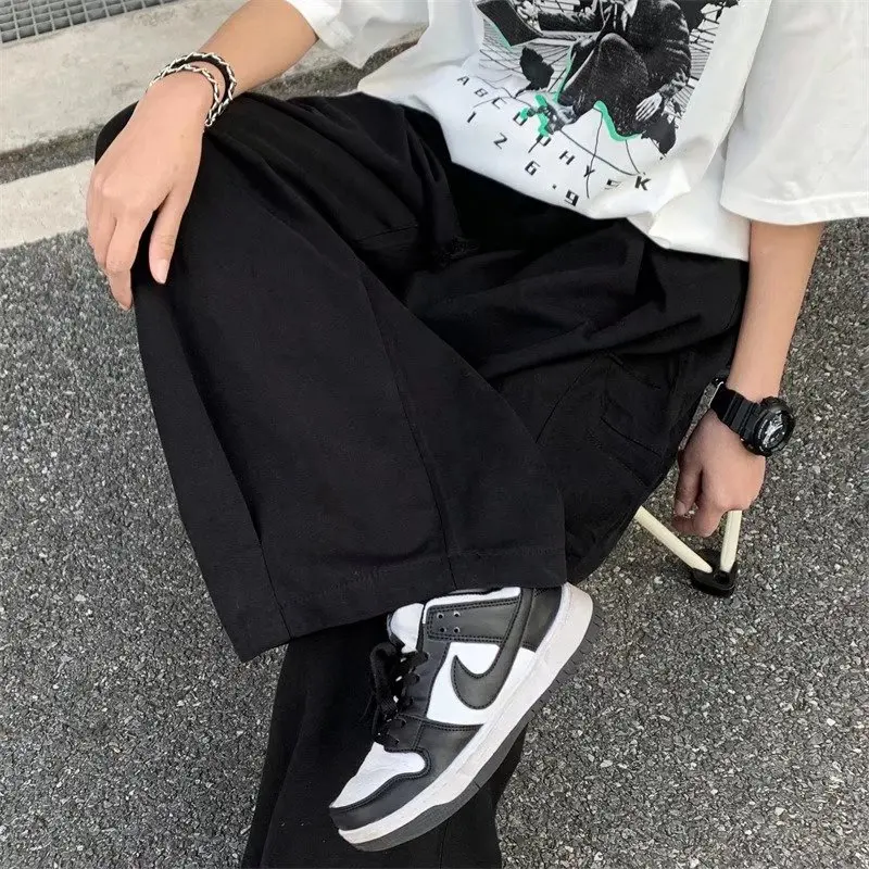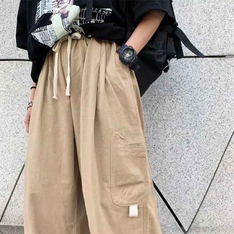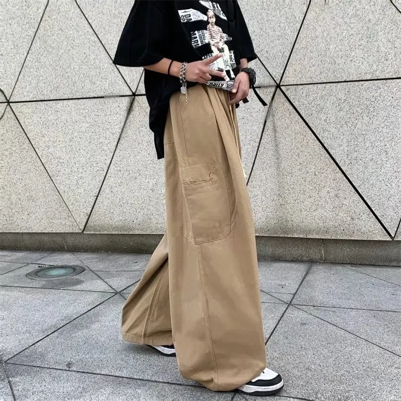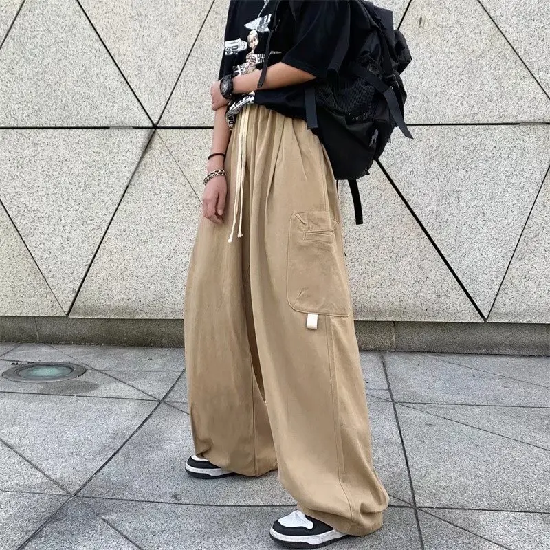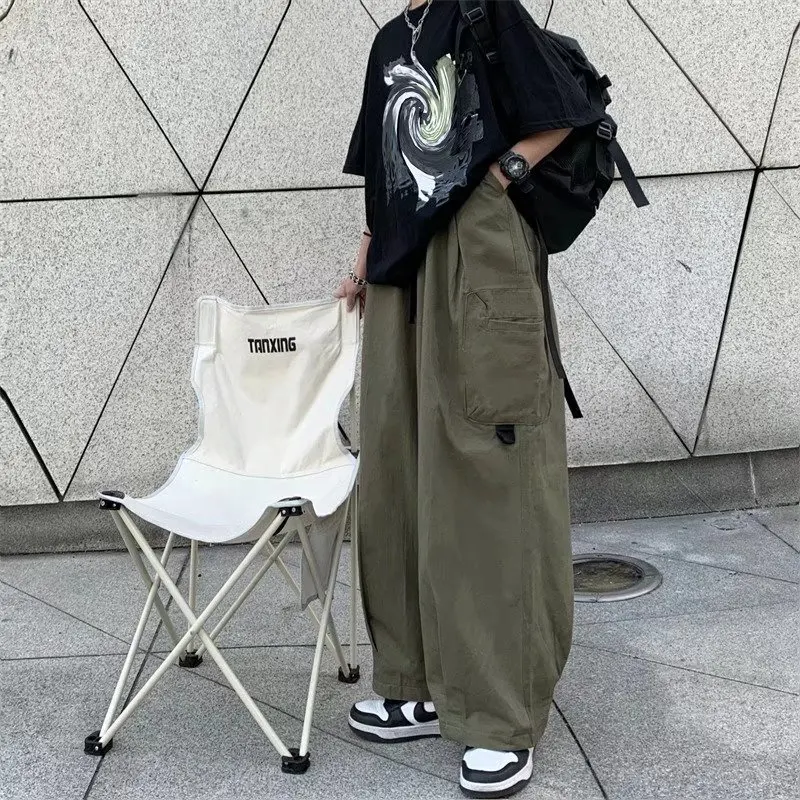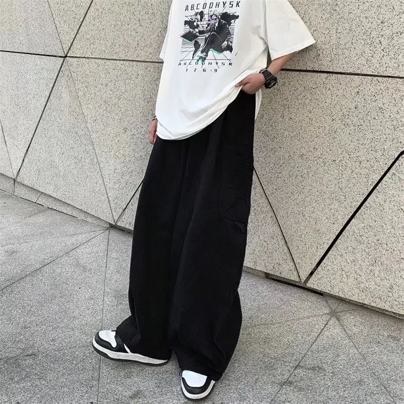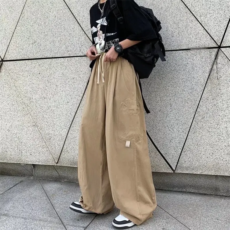 Wiaofellas  -  Vibe Full Length Winter Autumn Men Pants Wide Leg Cargo Baggy Loose Trousers Male Korean Distressed Retro Loser Safari Pants