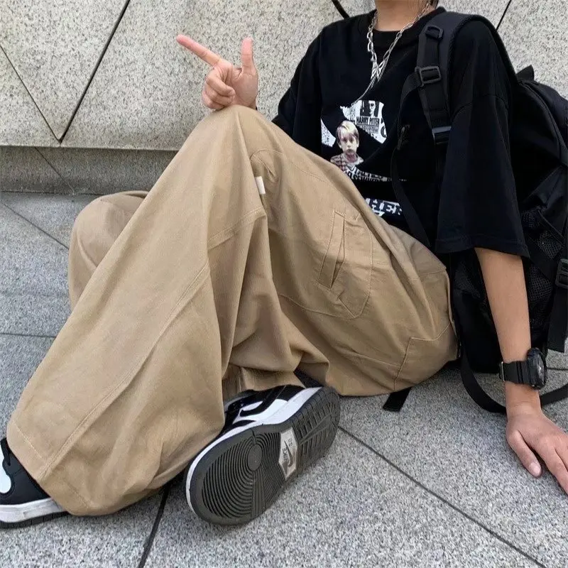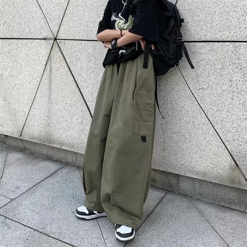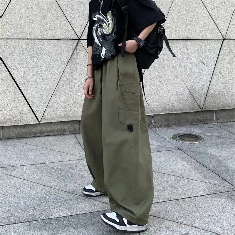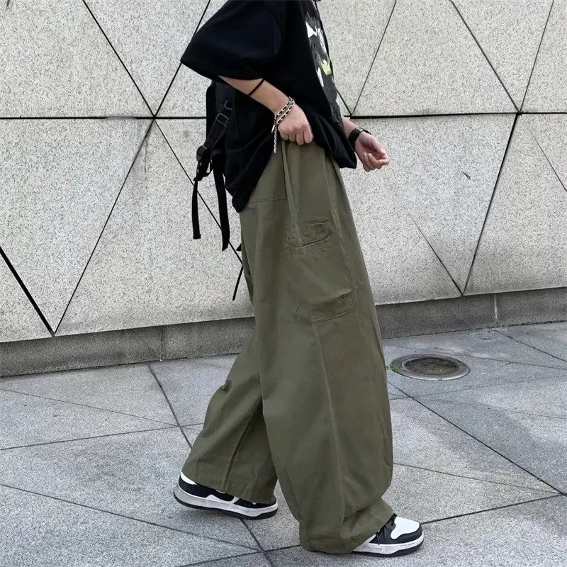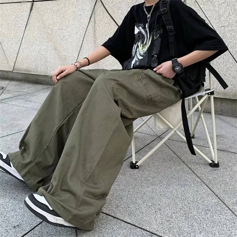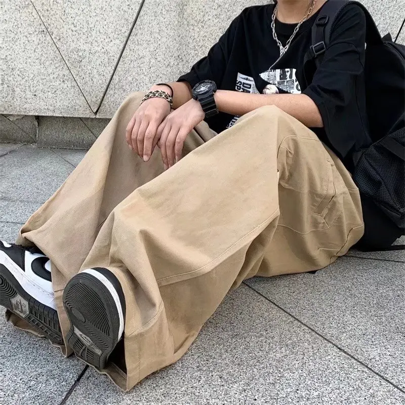 Wiaofellas - Vibe Full Length Winter Autumn Men Pants Wide Leg Cargo Baggy Loose Trousers Male Korean Distressed Retro Loser Safari Pants