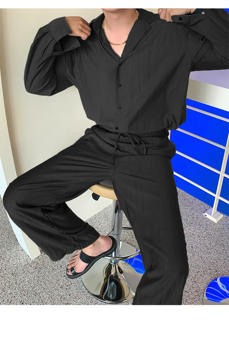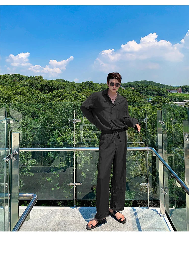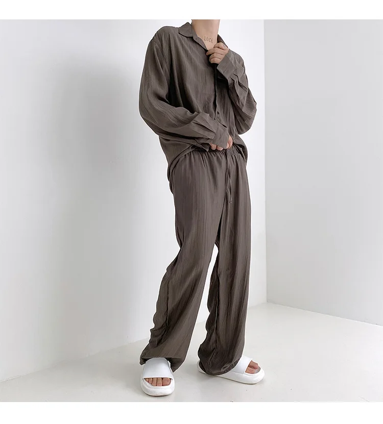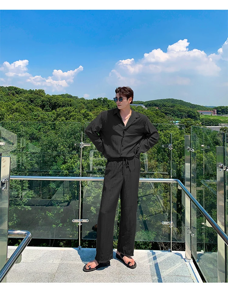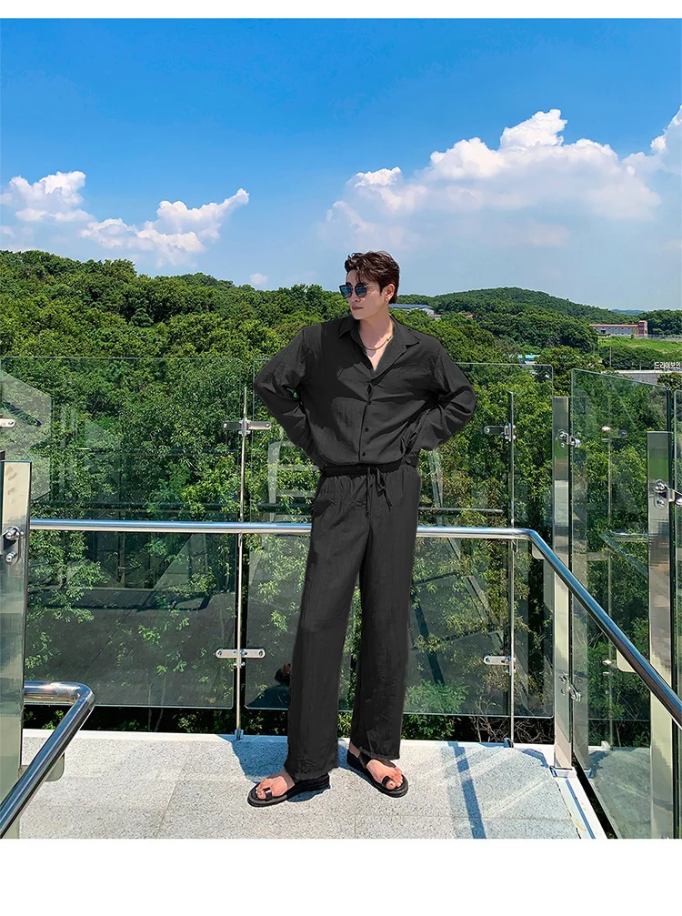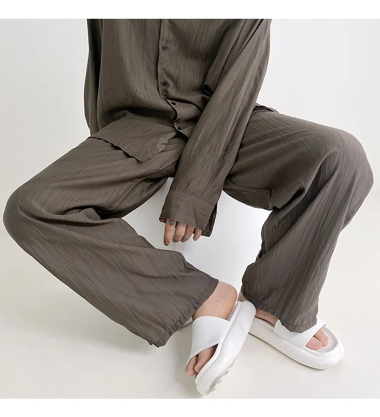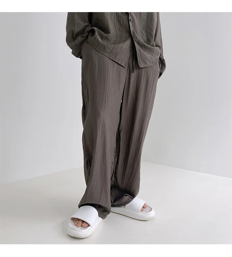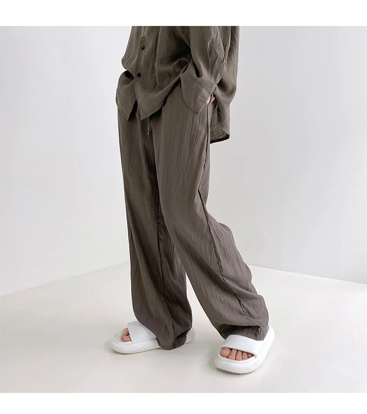 Wiaofellas - Wear Men's Loose Straight Casual Pants Solid Color Pleated Long Pants Elastic Waist Wide Leg Trousers New 2Y2277