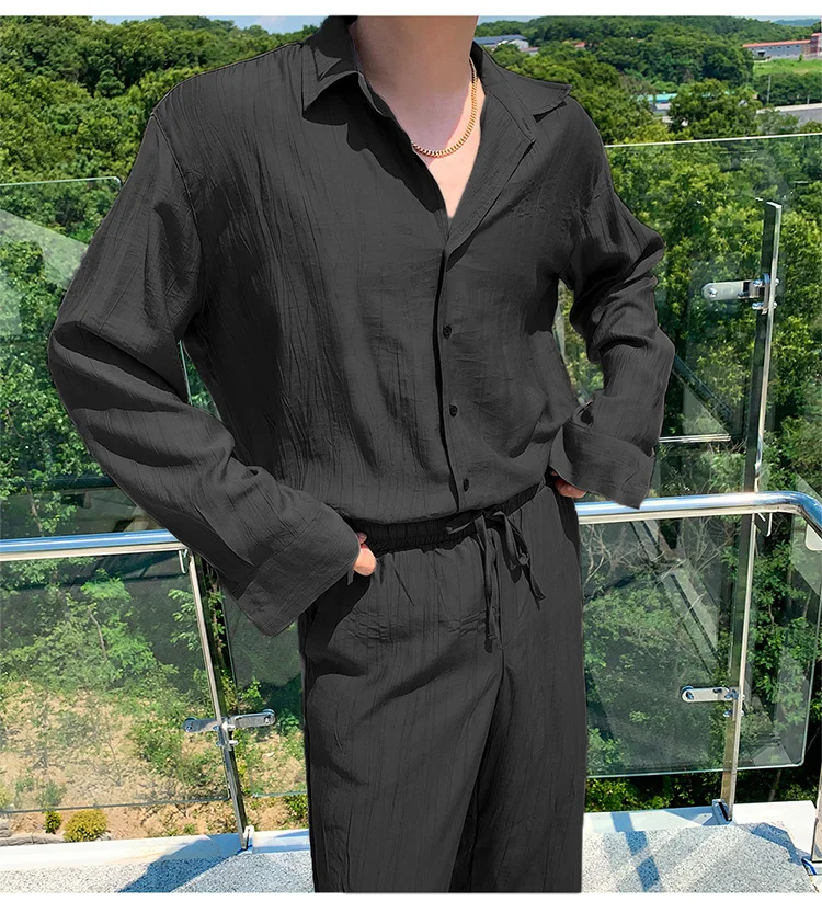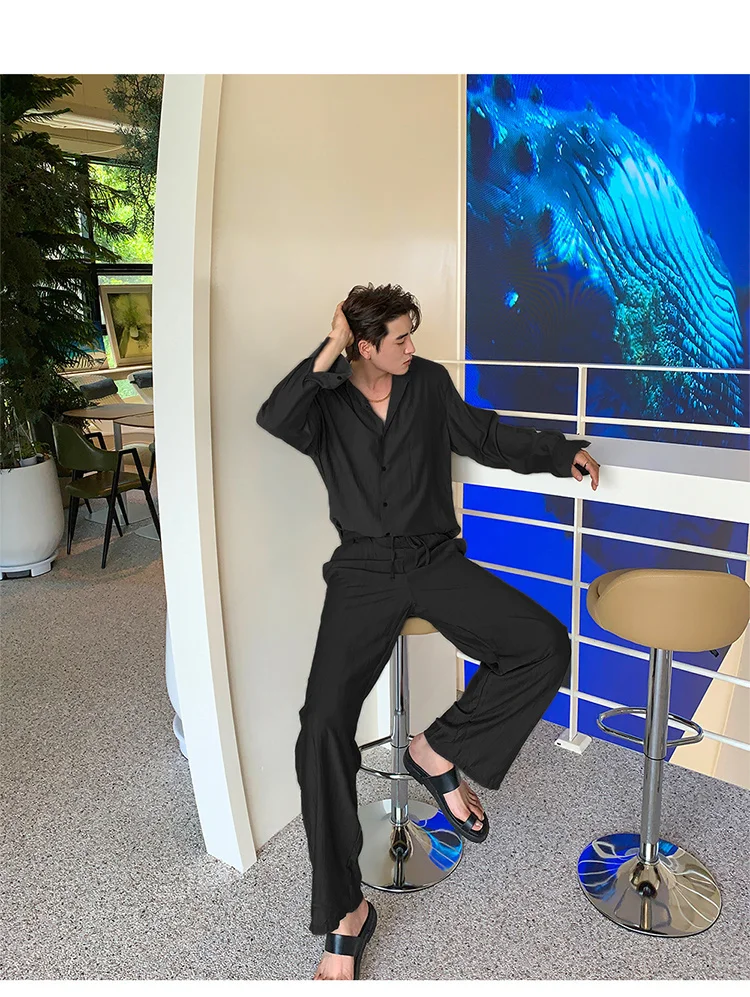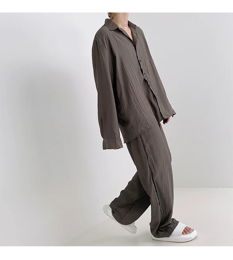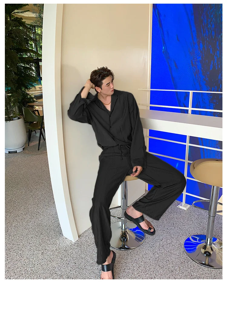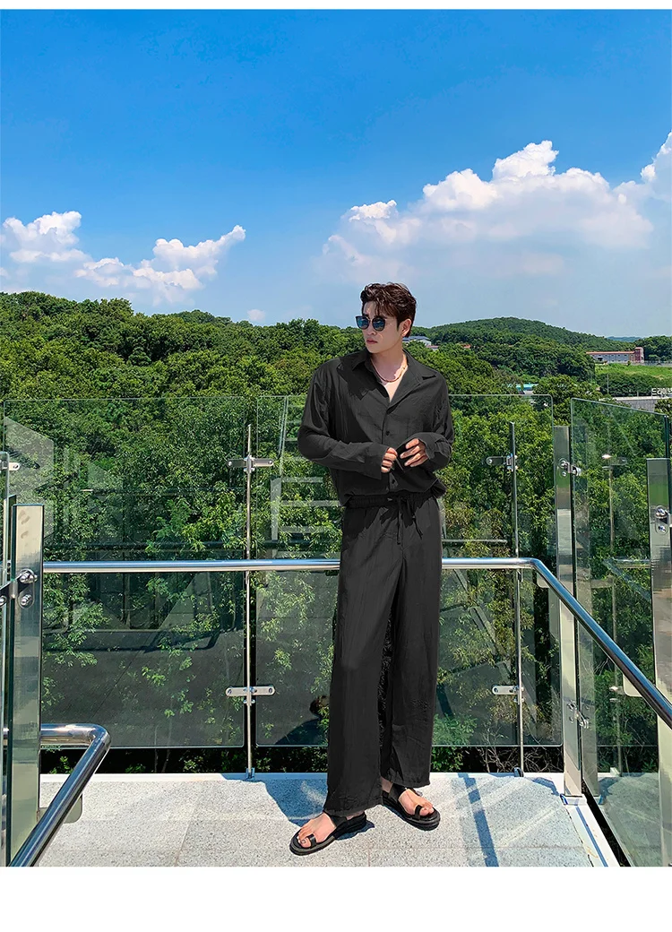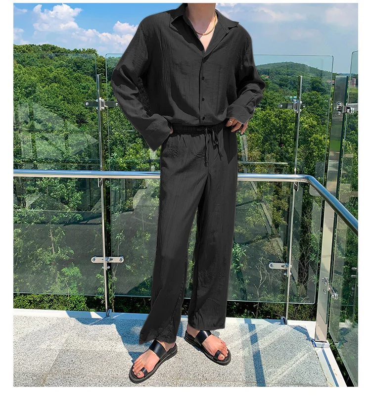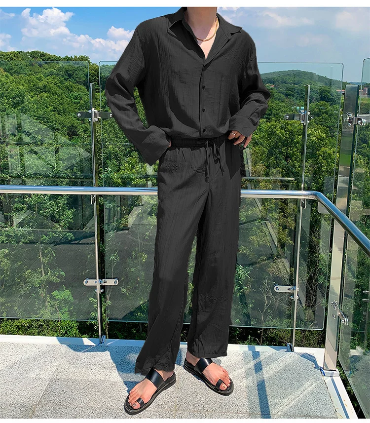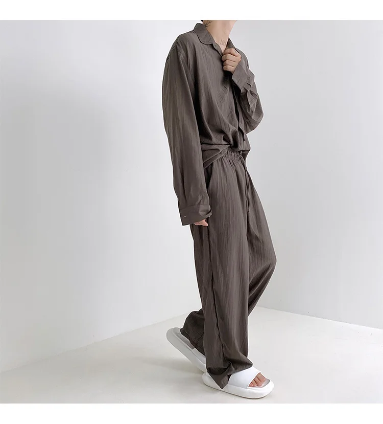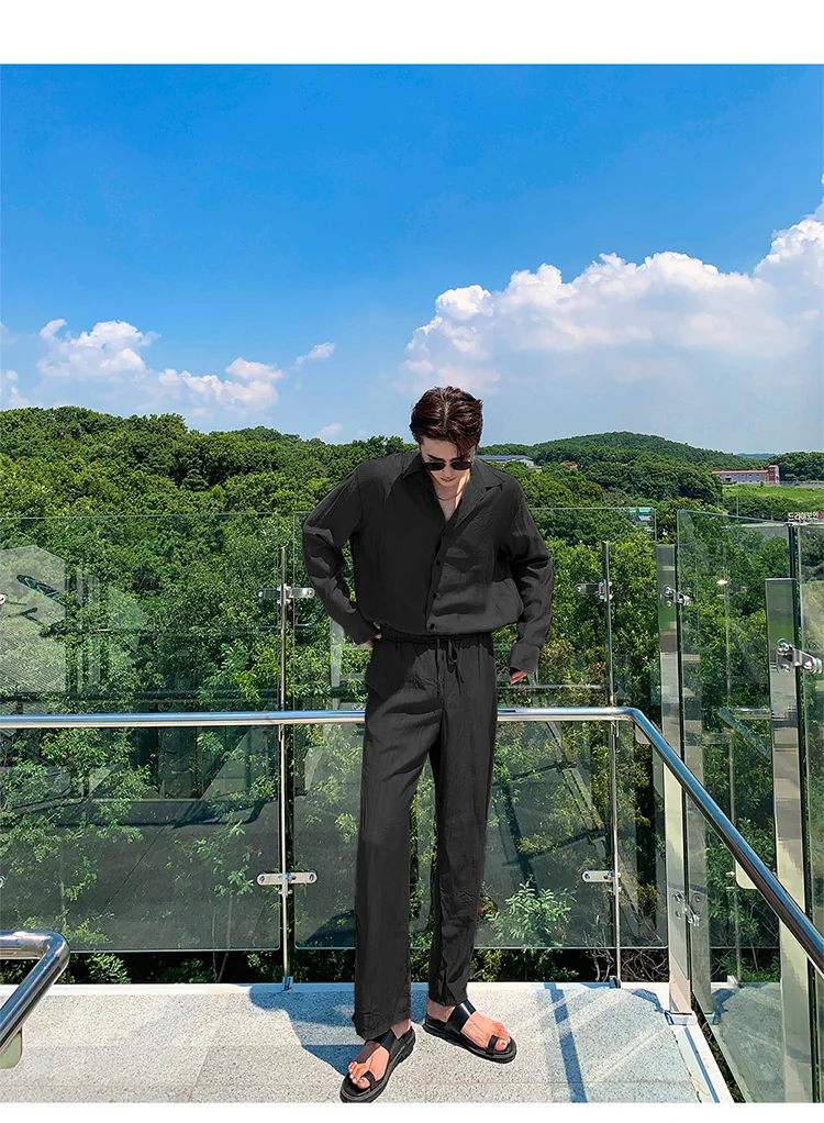Wiaofellas - Wear Men's Loose Straight Casual Pants Solid Color Pleated Long Pants Elastic Waist Wide Leg Trousers New 2Y2277