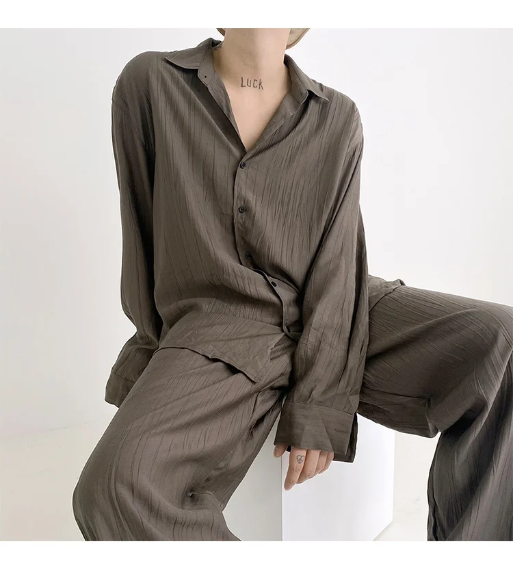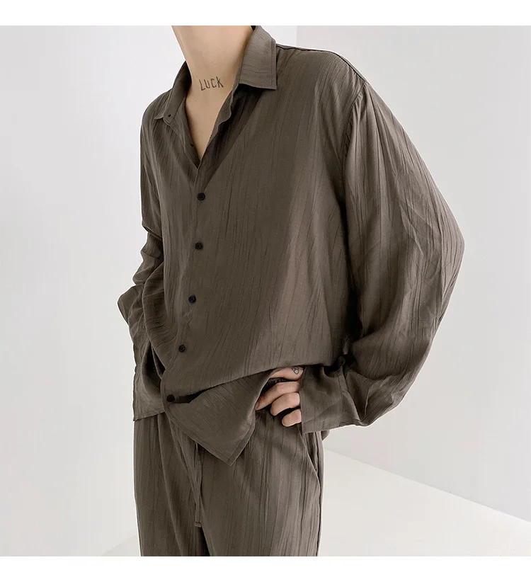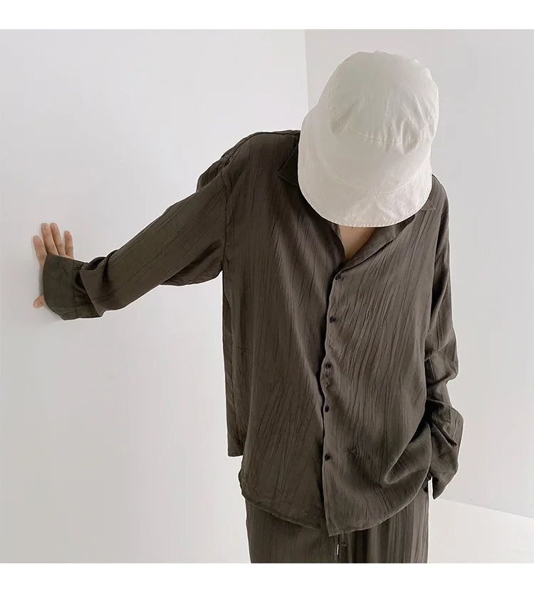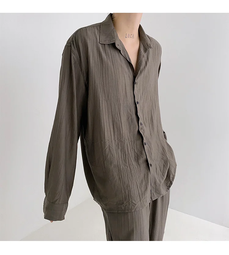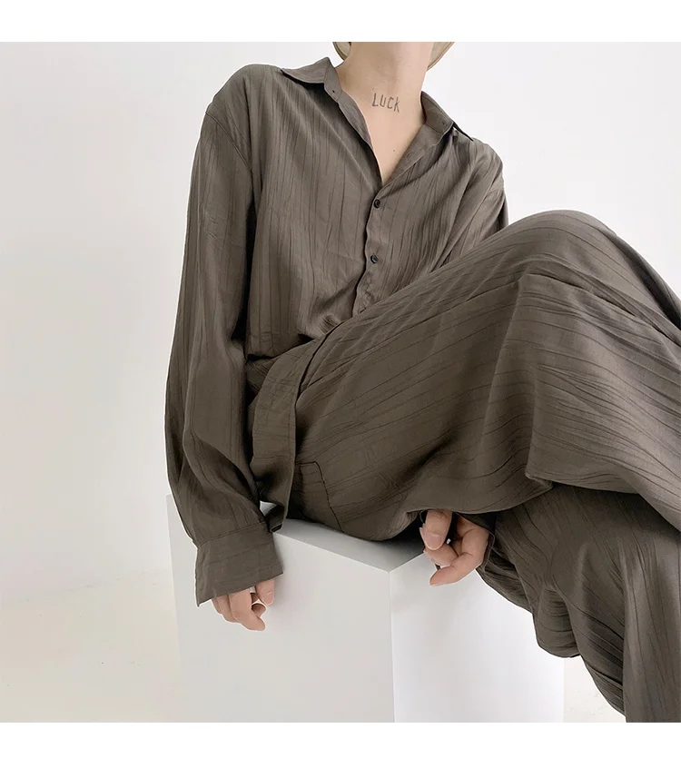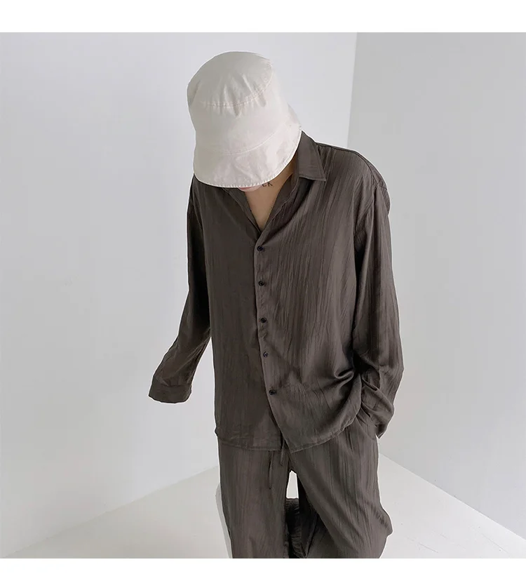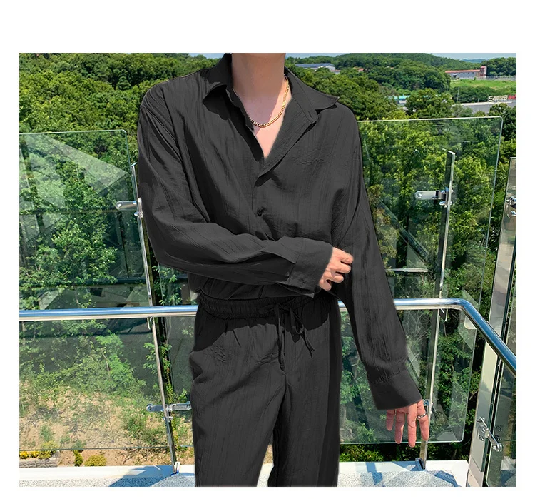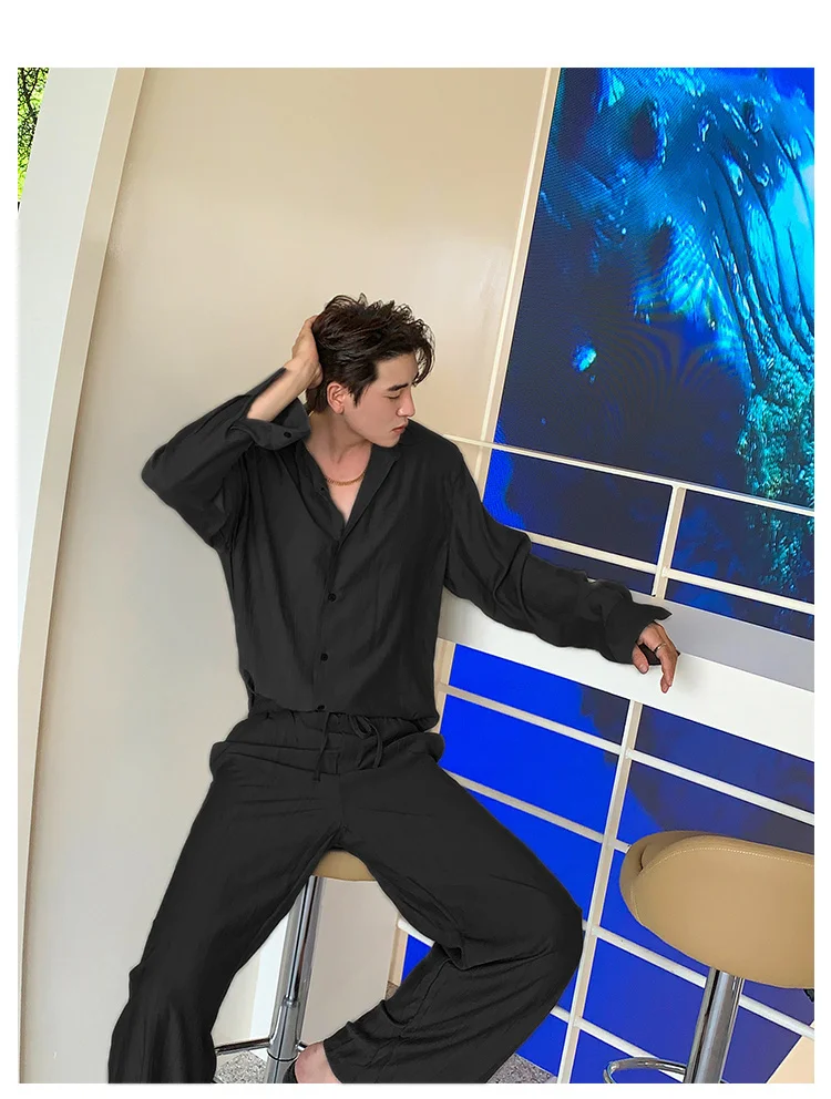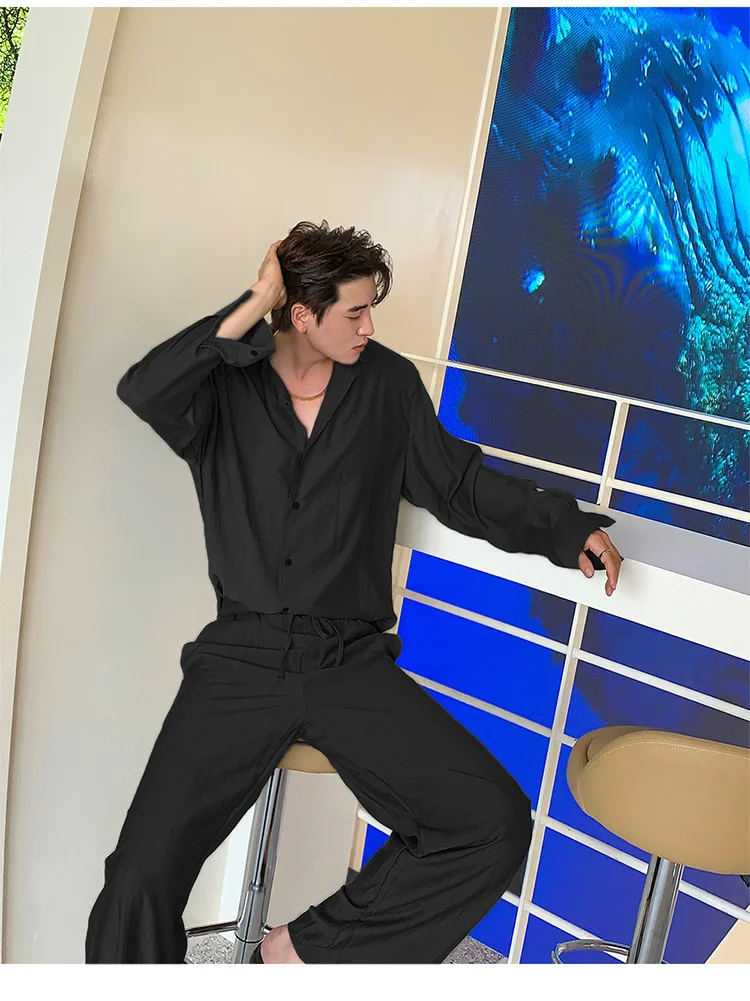 Wiaofellas - Wear Men's Loose Straight Casual Pants Solid Color Pleated Long Pants Elastic Waist Wide Leg Trousers New 2Y2277