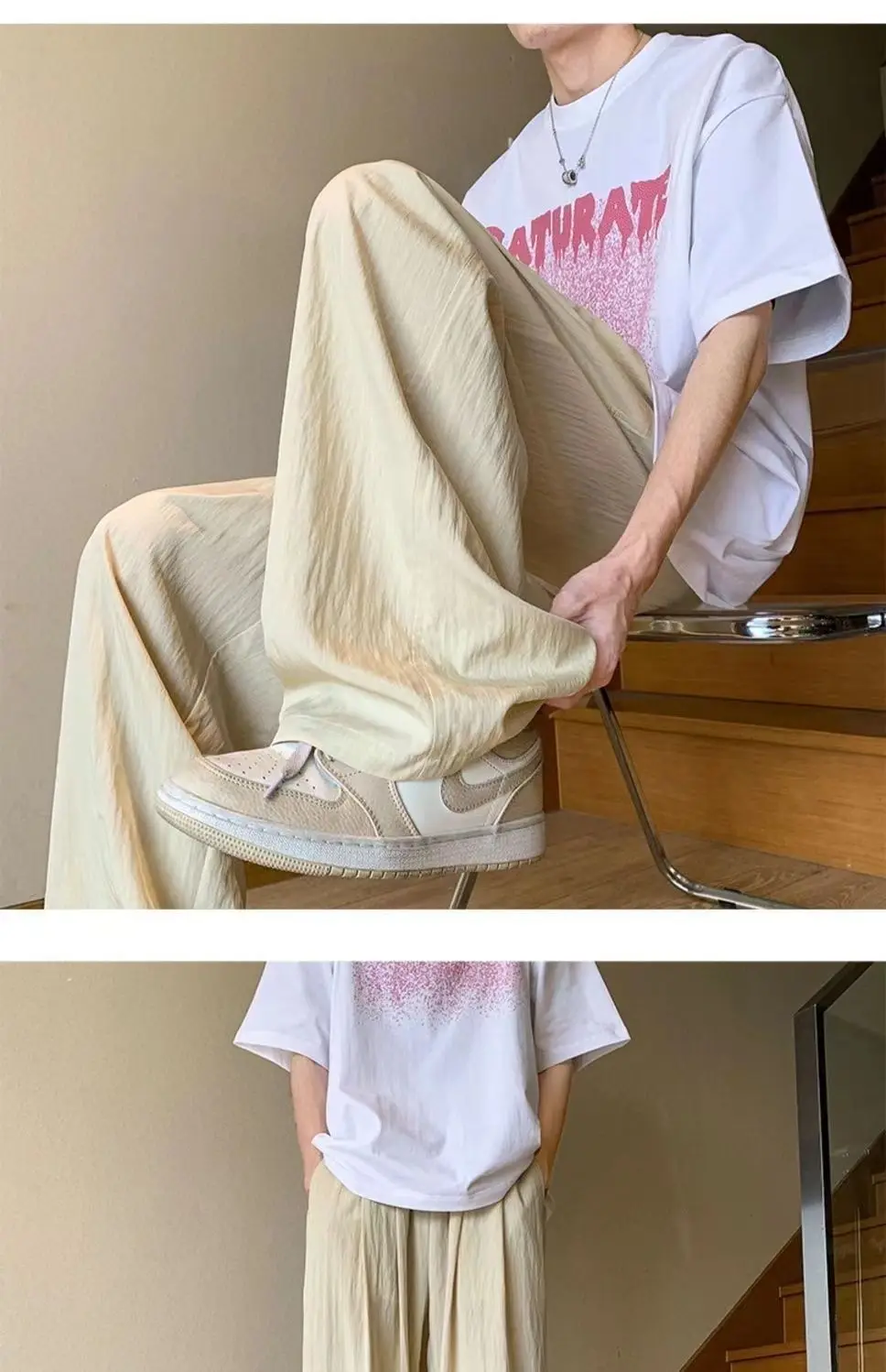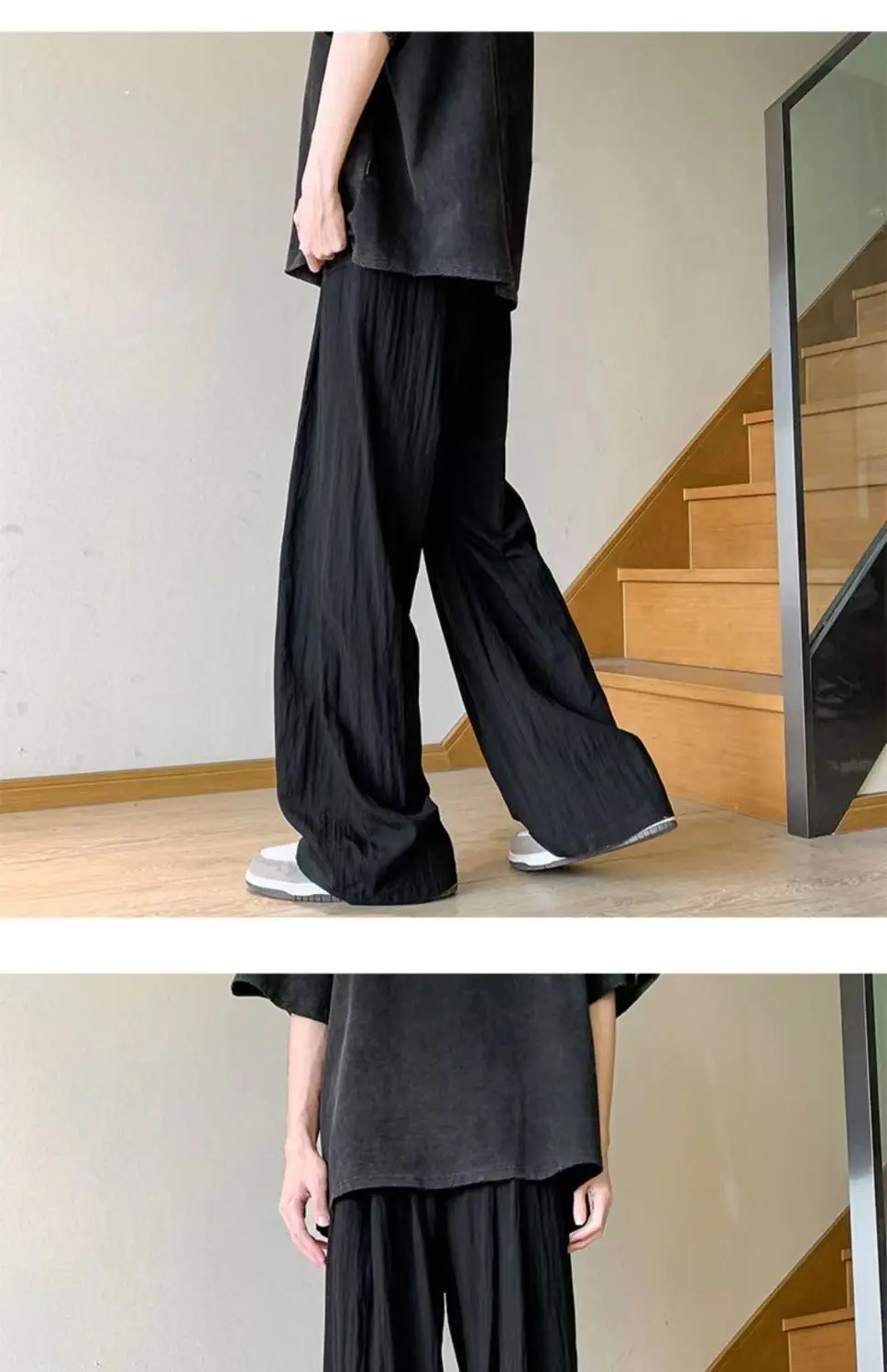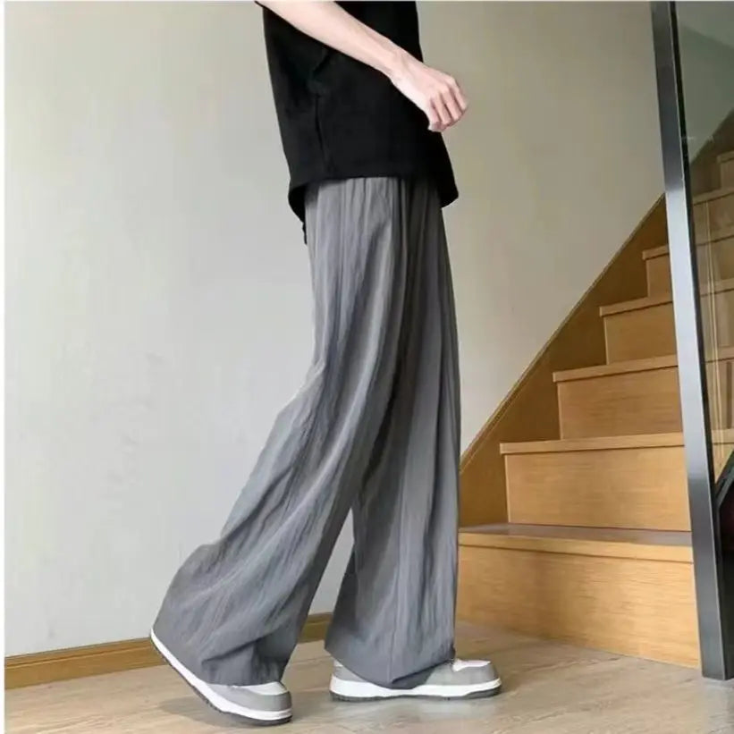 WIAOFELLAS - American Draped Straight Men Casual Summer Ice Silk Thin Draped Yamamoto Takashi Loose Versatile Pants