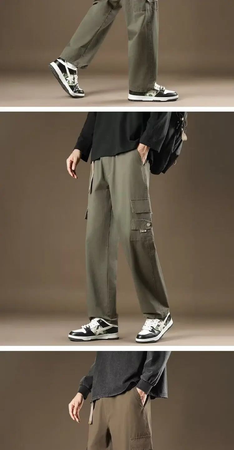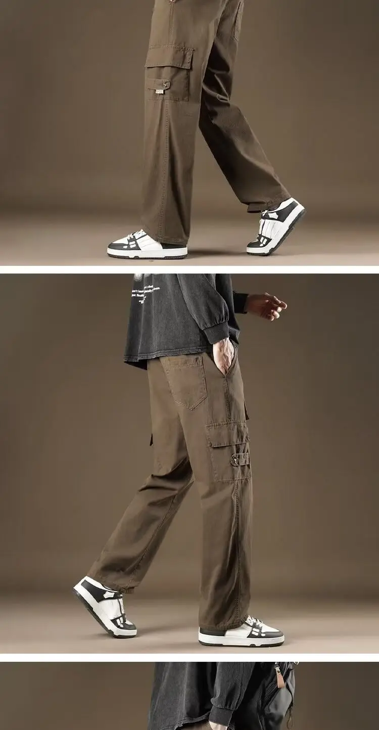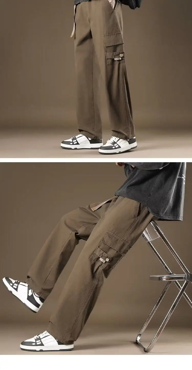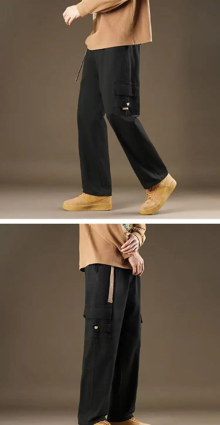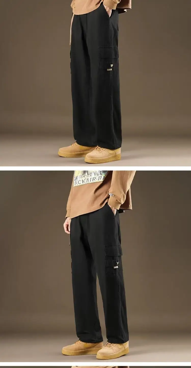 WIAOFELLAS - American work pants men's new style loose straight spring and autumn wide-leg pants design casual trousers