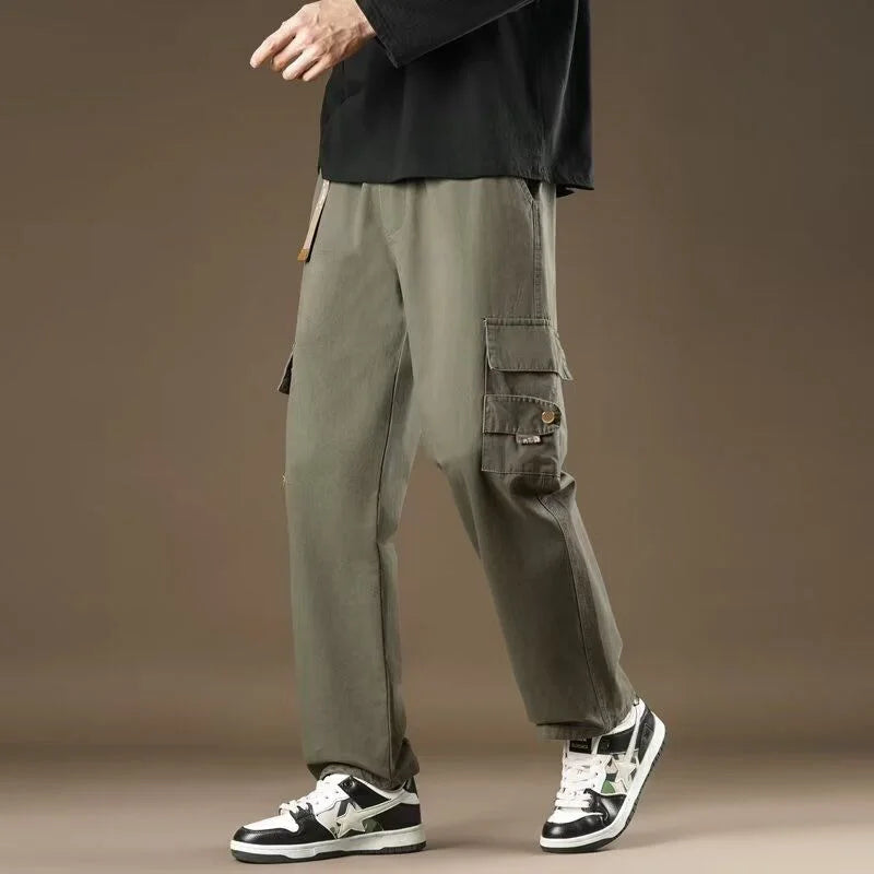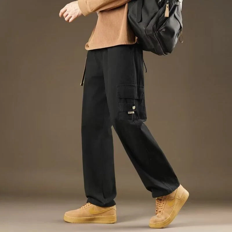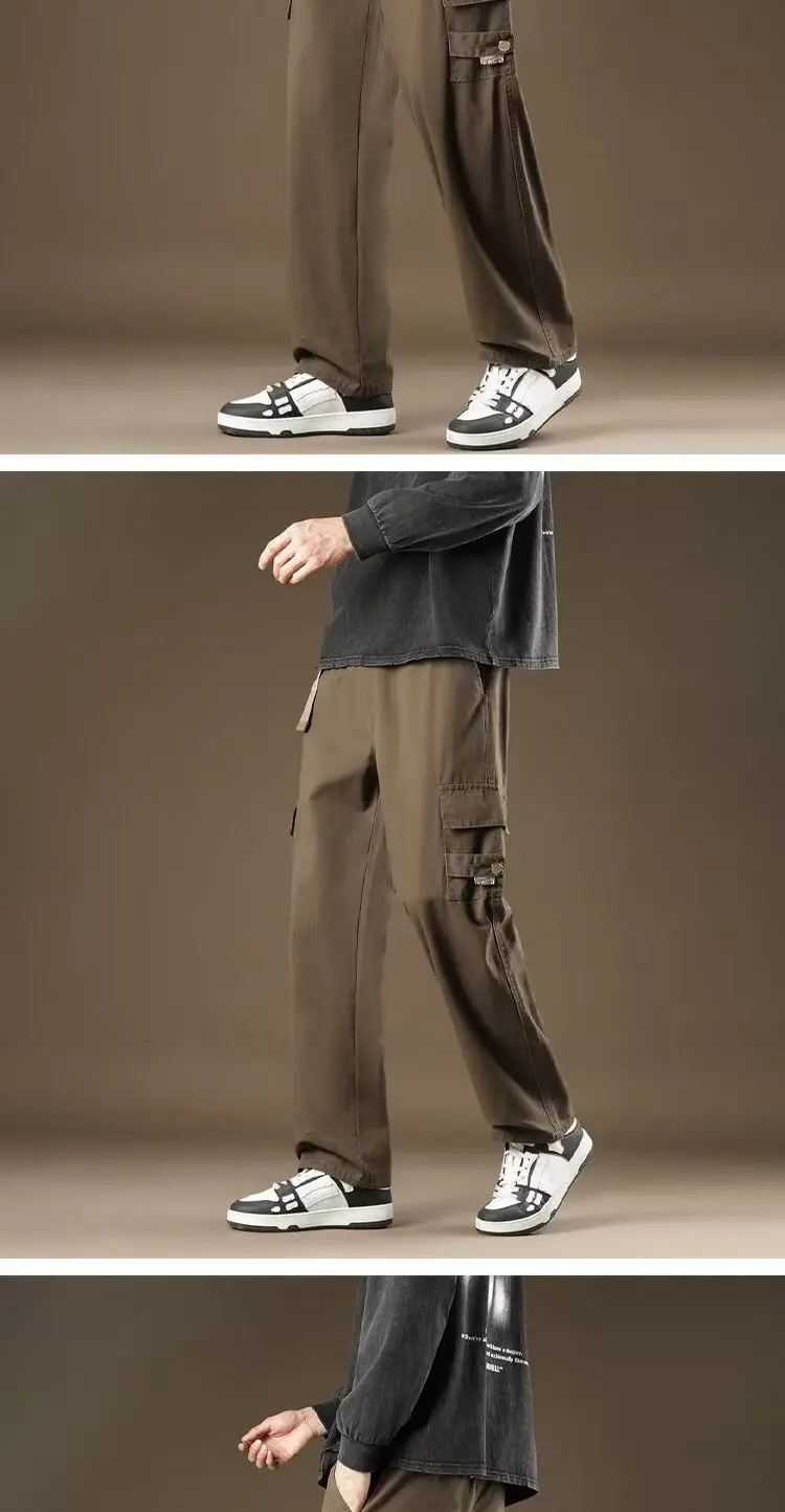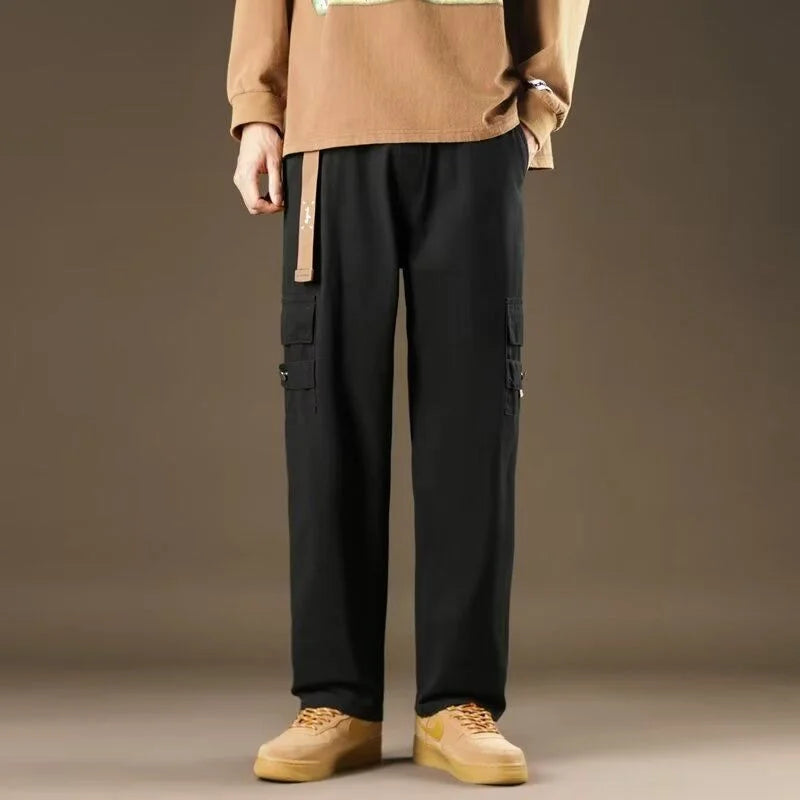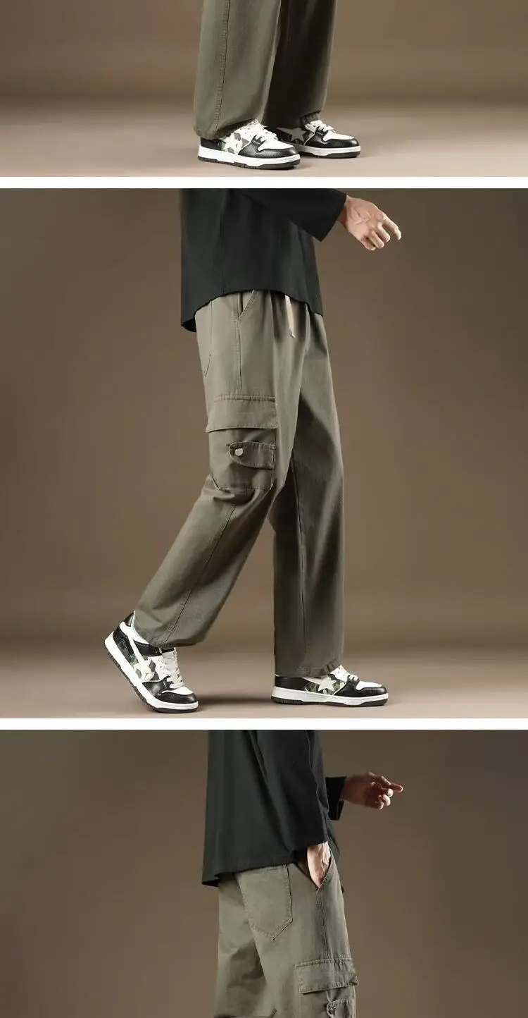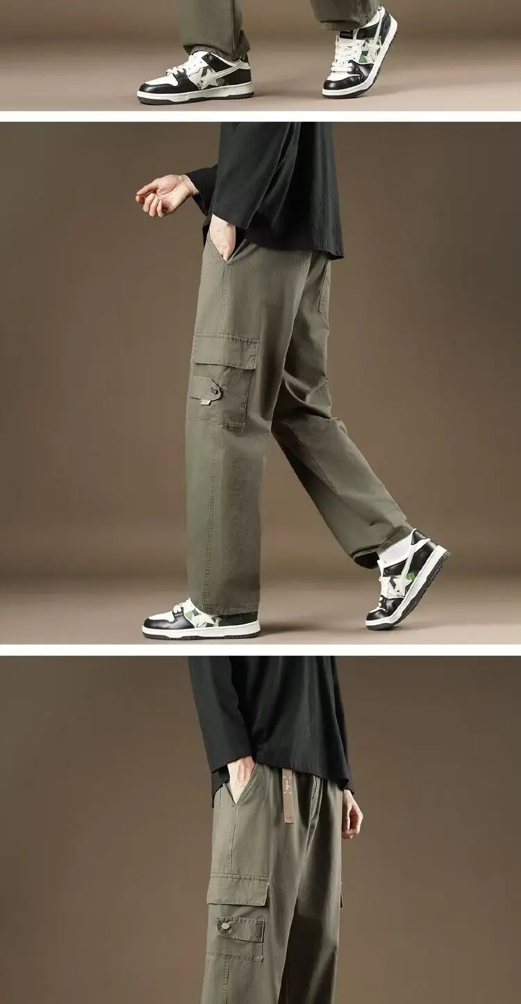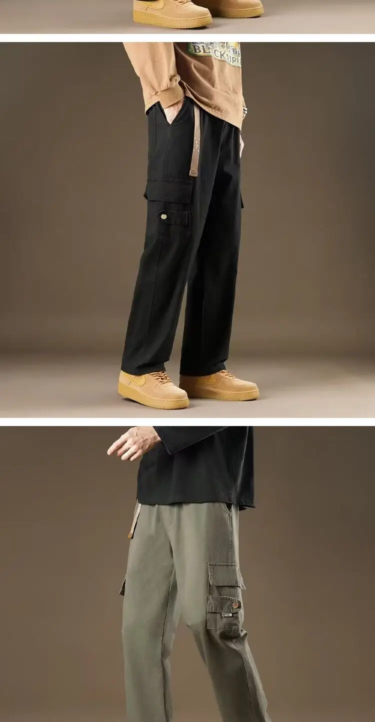 WIAOFELLAS - American work pants men's new style loose straight spring and autumn wide-leg pants design casual trousers
