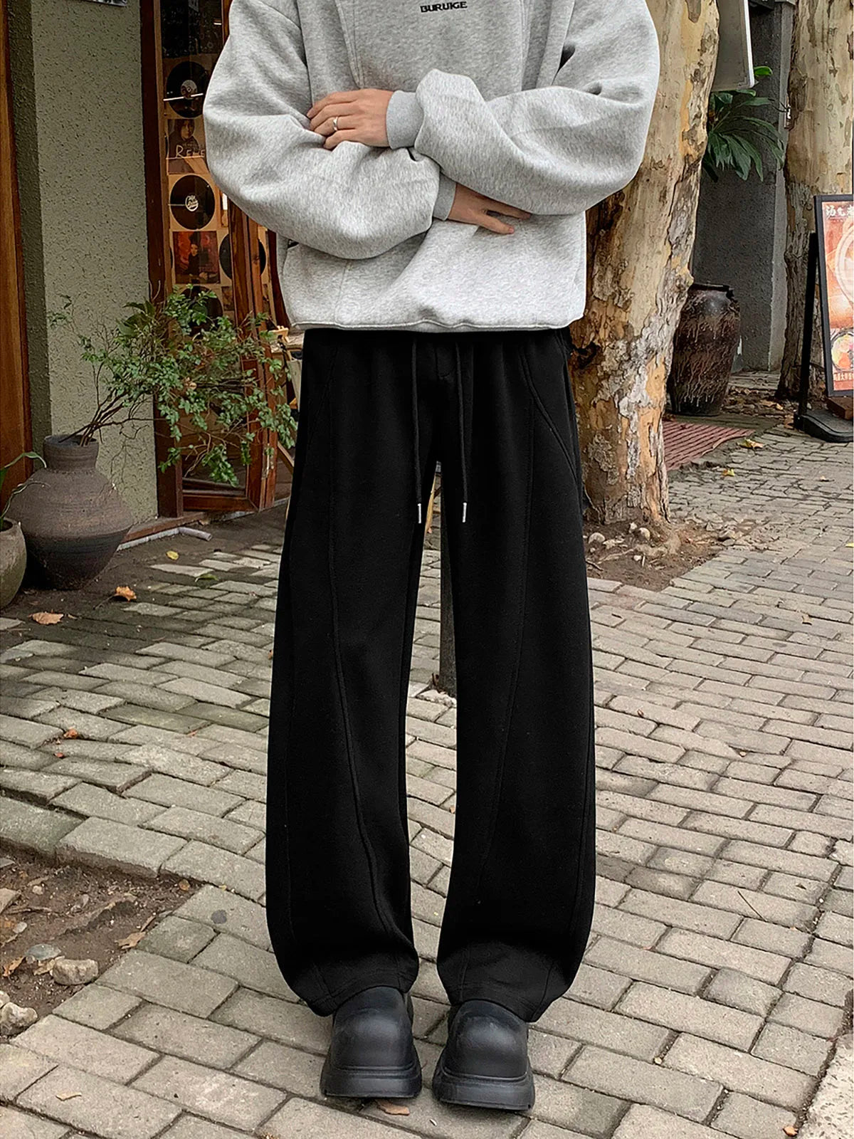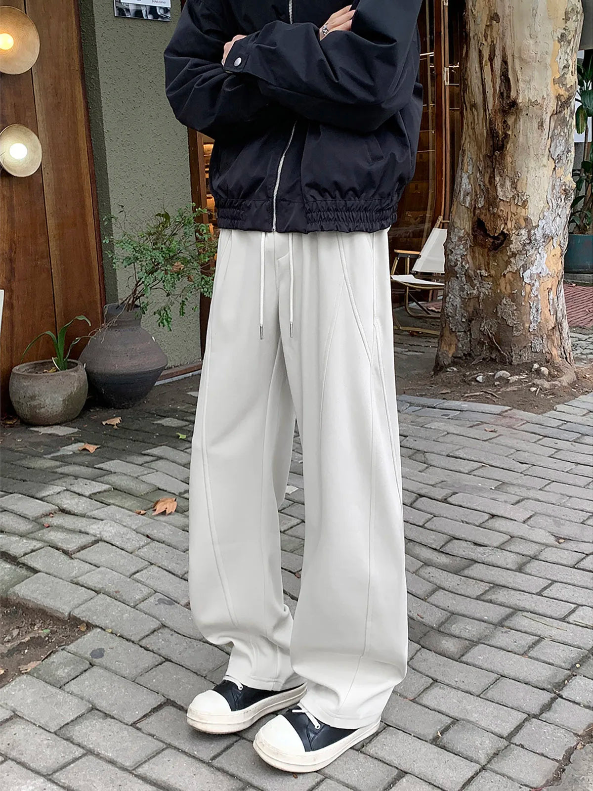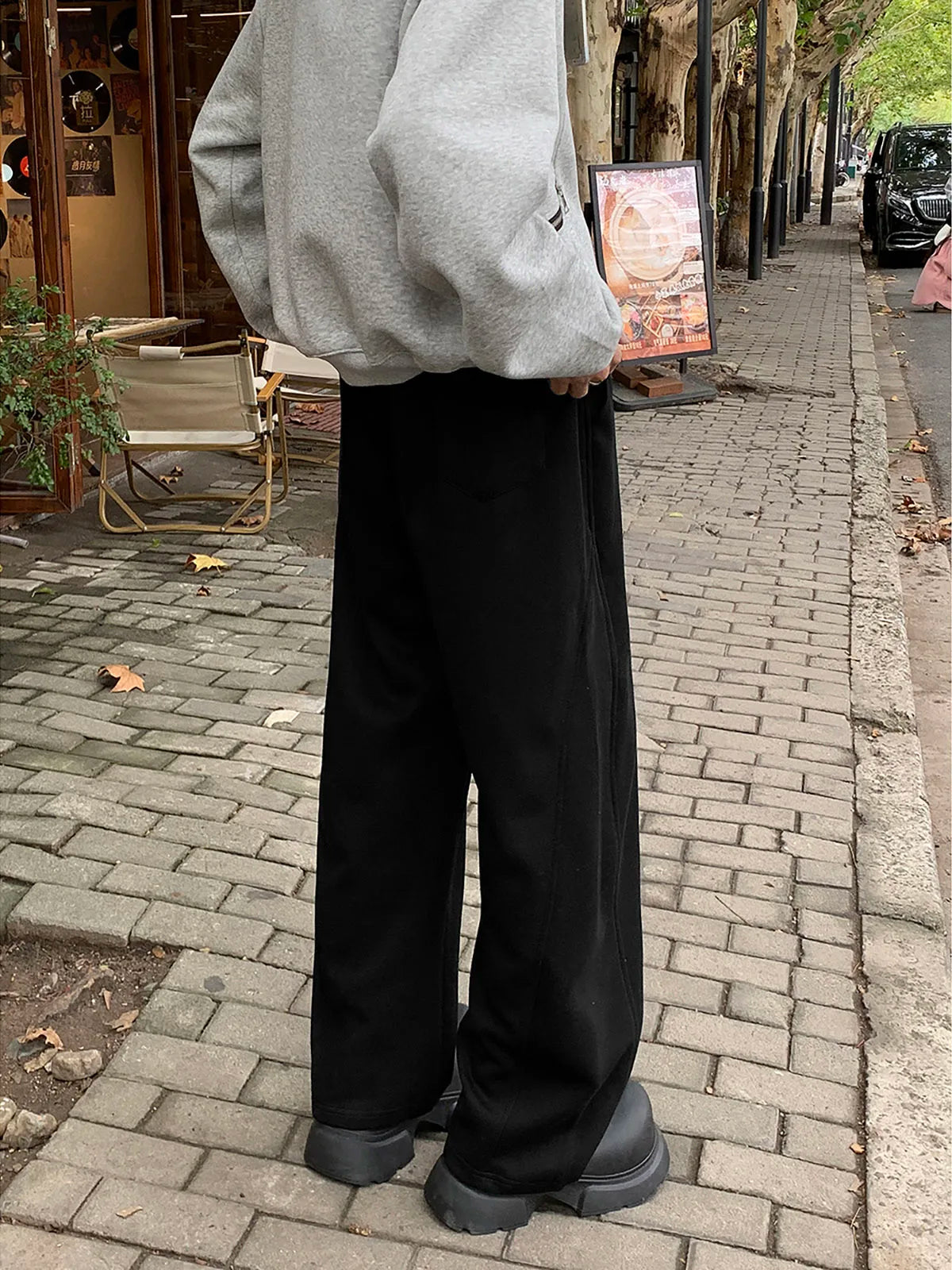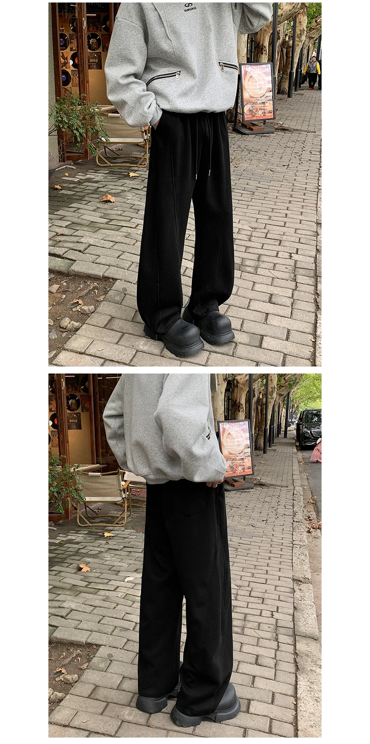 WIAOFELLAS - Autumn Casual Trousers Men's Loose Fit Sweatpants Wide Leg Straight Pants Black Solid Colour Seasonal Pants for Men D432
