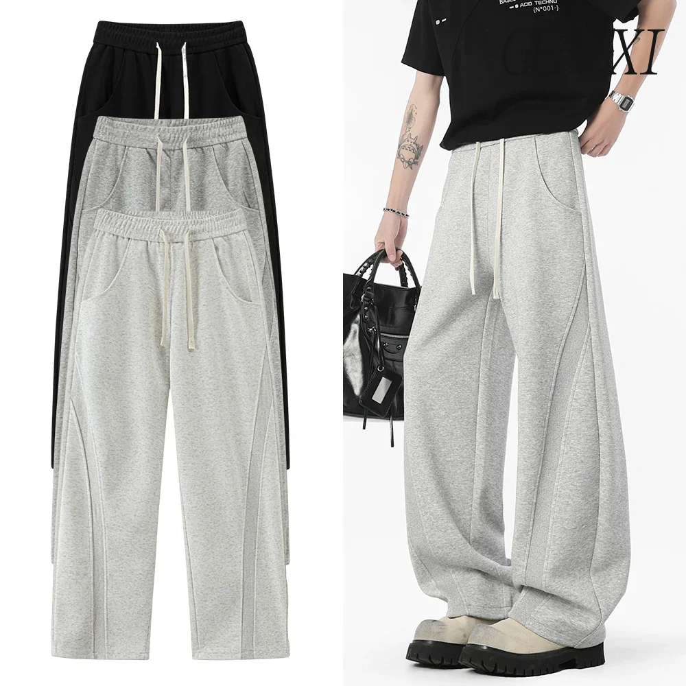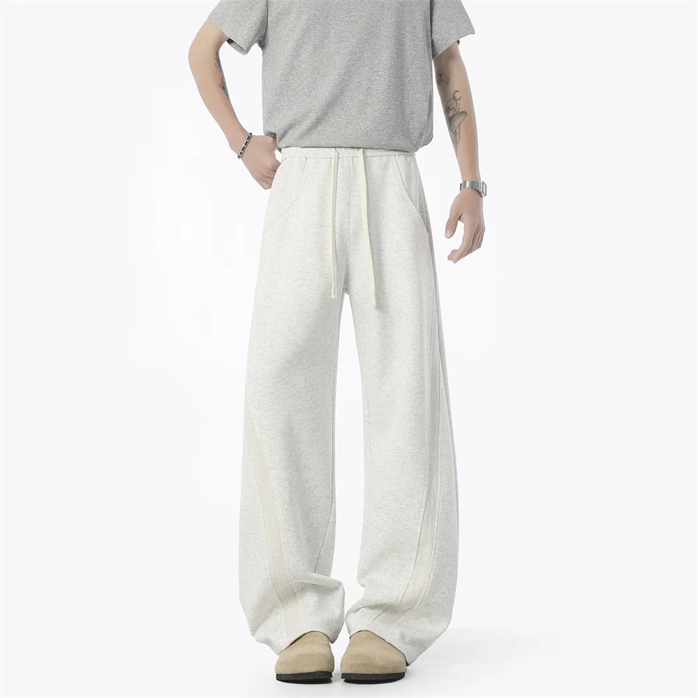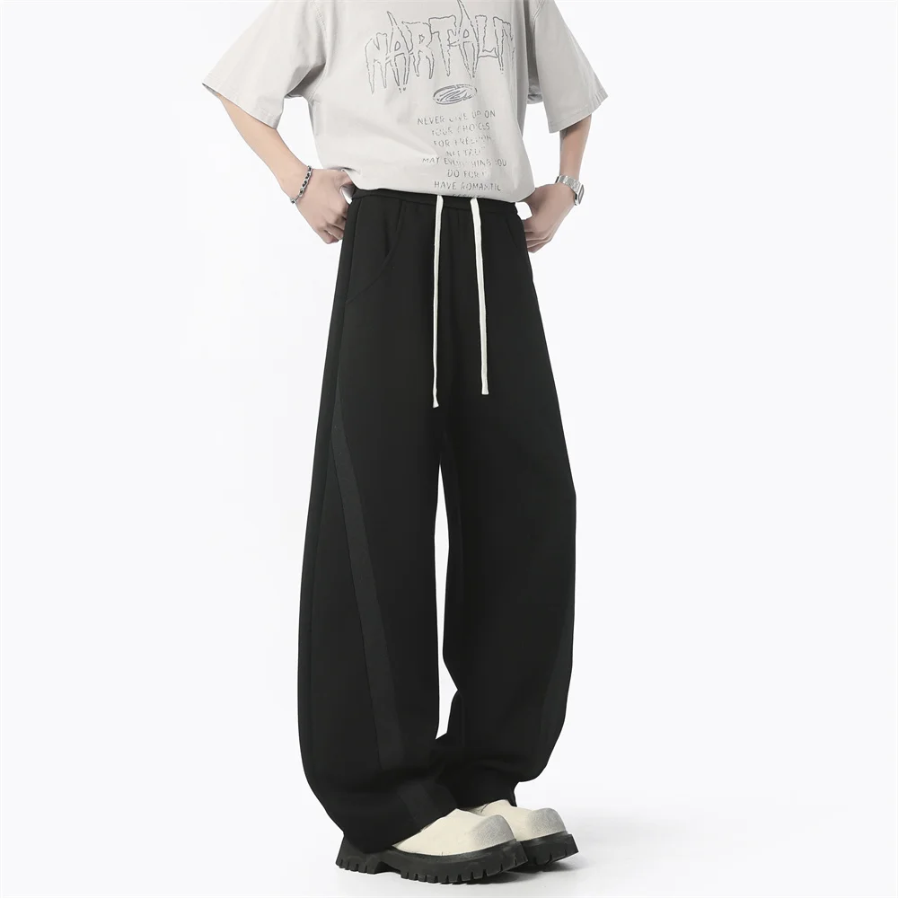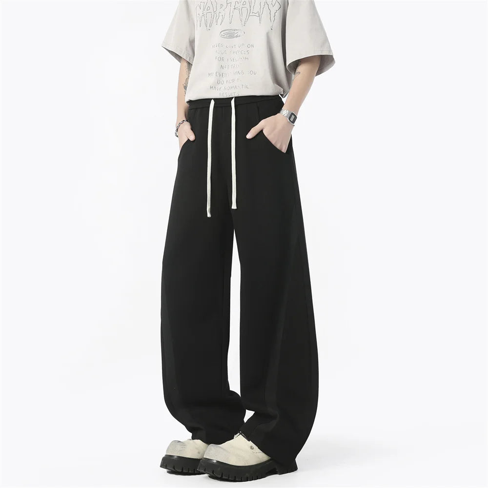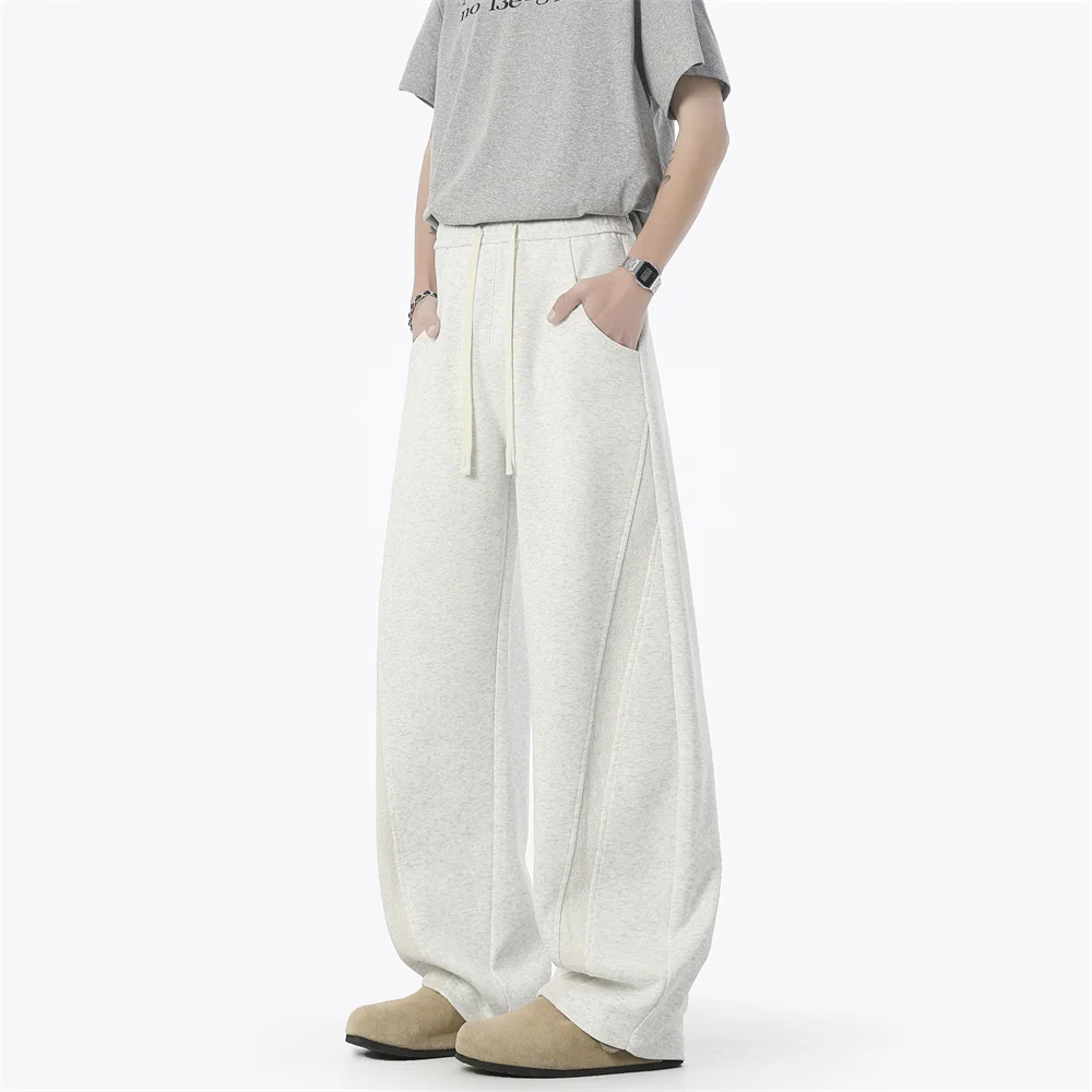 WIAOFELLAS - Autumn Men's Clean Fit Sweatpants Korean Bending Knife Pants Men Minimalist Straight-Leg Mid-Rise Wide-Leg Casual Long Trousers