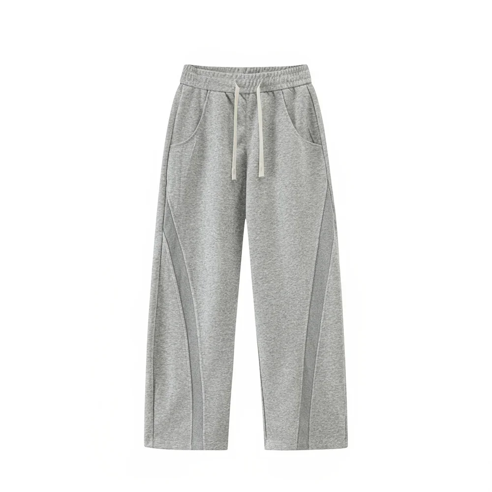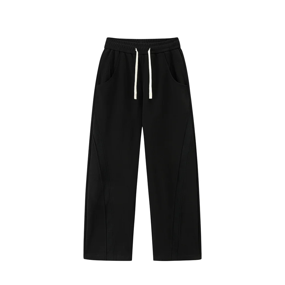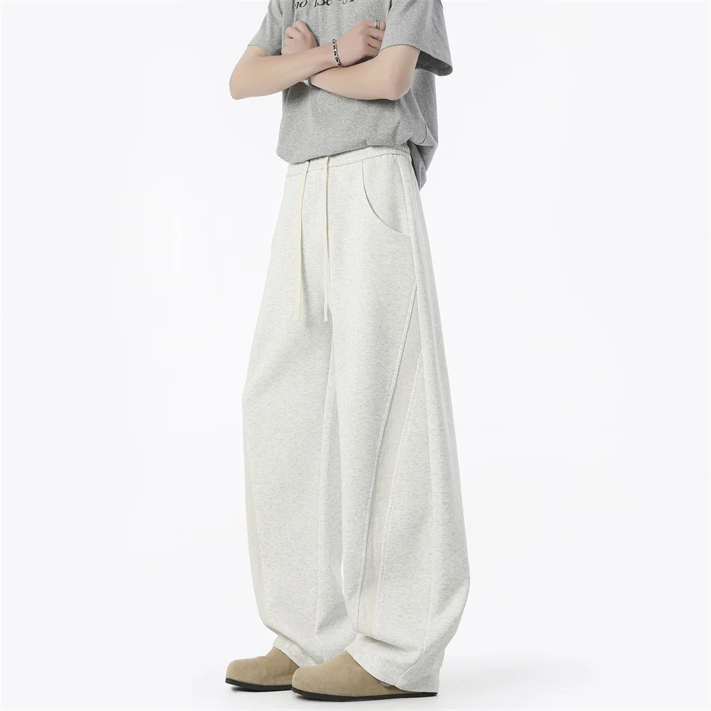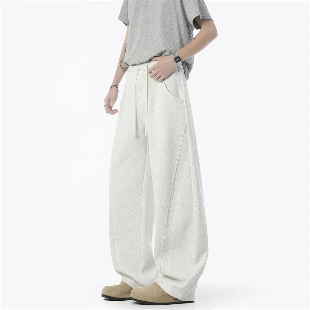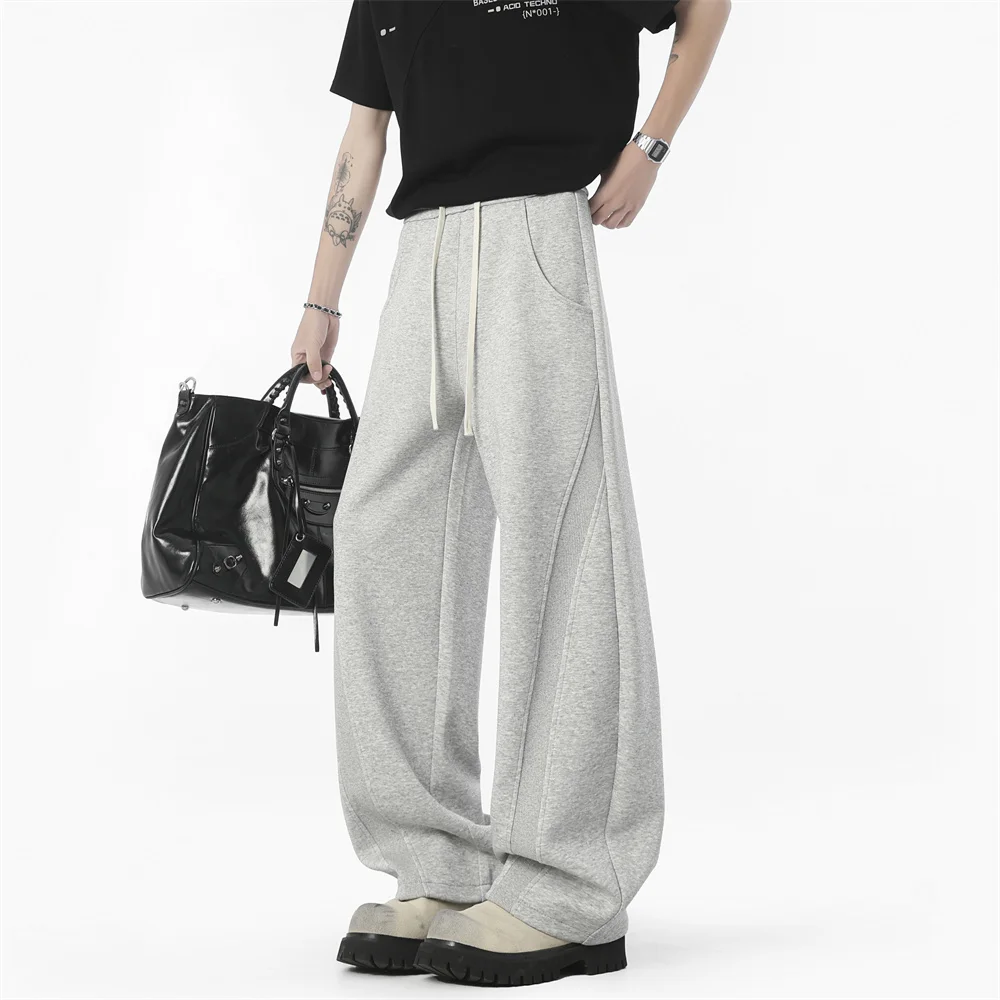 WIAOFELLAS - Autumn Men's Clean Fit Sweatpants Korean Bending Knife Pants Men Minimalist Straight-Leg Mid-Rise Wide-Leg Casual Long Trousers