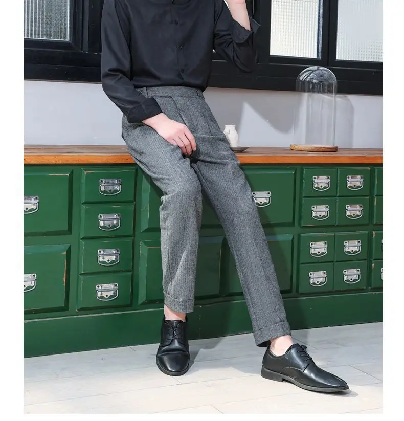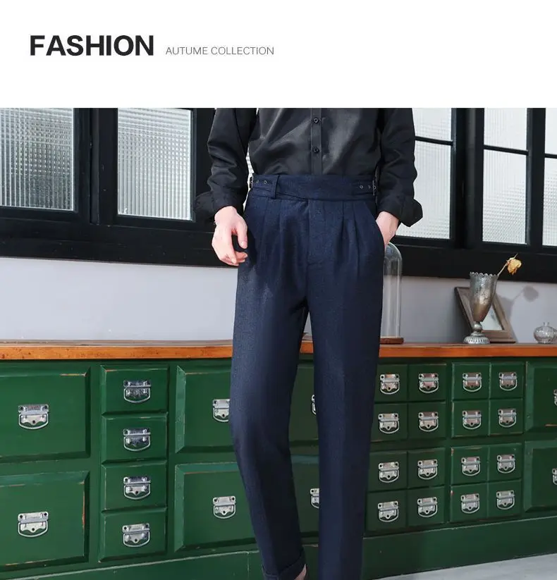WIAOFELLAS Autumn Winter Men New Business Casual Suit Pants Men Formal Slim Fit Warm Pants Male Office Woolen Straight Trousers W118